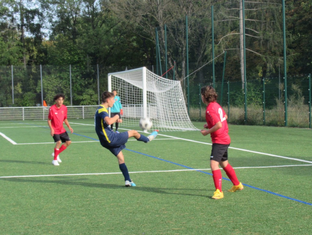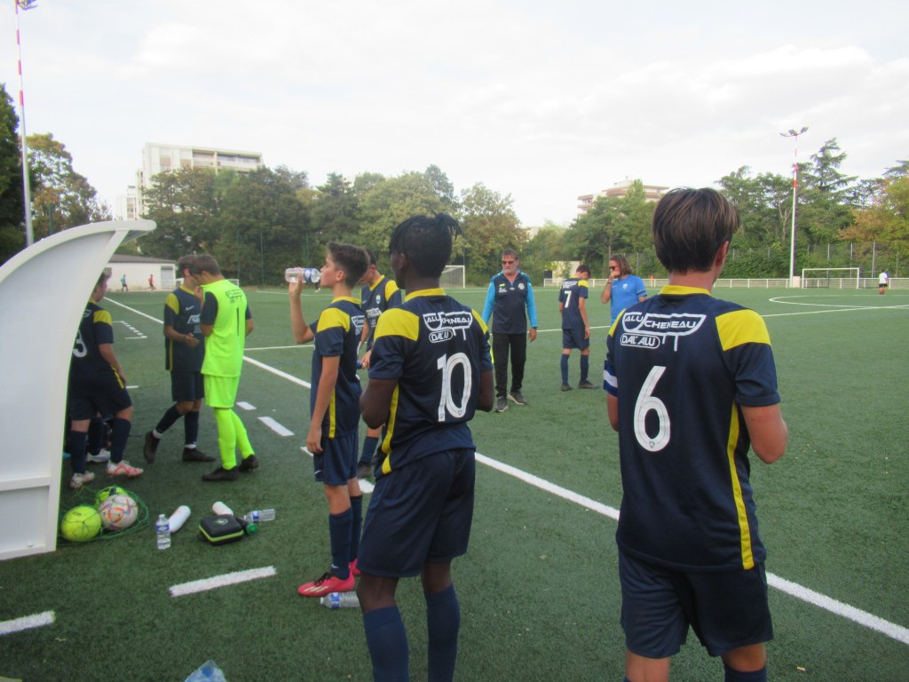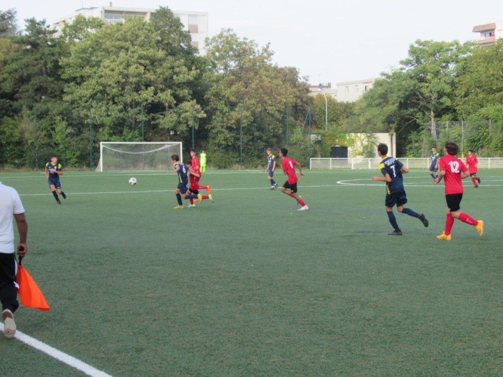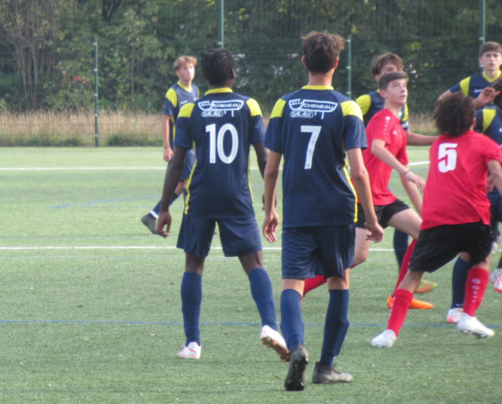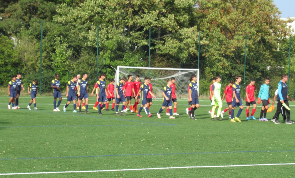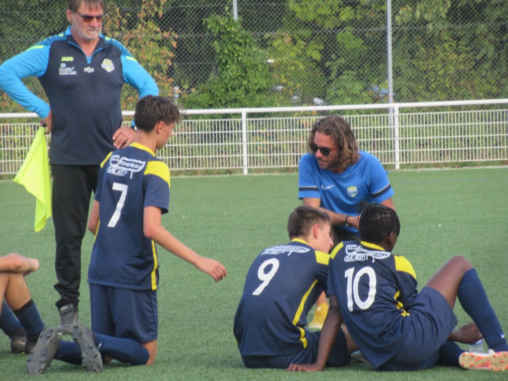 Victoire tranquille des U15 même s’ils se sont mis en difficultés tous seuls en laissant les locaux revenir à 2-1. D’entrée de jeu les partenaires d’Andréa imposent leur jeu et font la différence dès le premier quart d’heure avec des réalisations de Maxime qui, bien servi par Louis A, mystifie deux défenseurs dans la surface et vient battre le gardien d’un plat du pied sobre et efficace. Jephthé l’imite deux minutes plus tard en profitant d’une belle déviation de Mattéo. Les occasions se multiplient. Une tête astucieuse de Maxime trouve la transversale. Puis inexplicablement l’ailier droit adverse pénètre dans la surface sans que personne ne vienne l’attaquer. Il a tout e temps d’ajuster Gabin d’une belle frappe. Dijon ULFE revient à 2 – 1 sur sa seule occasion ! En seconde période, l’Entente se donne de l’air par Louis C qui marque de prêt. Les occasions se succèdent. Jephthé ajoute un quatrième but après un bel enchaînement à l’entrée de la surface, 4 à 1. Gabin nous gratifie de deux belles sorties qui soulagent la défense. La malchance poursuit Maxime qui, cette fois, trouve la base du poteau. Avec un peu plus de lucidité, l’addition aurait pu être beaucoup plus lourde.