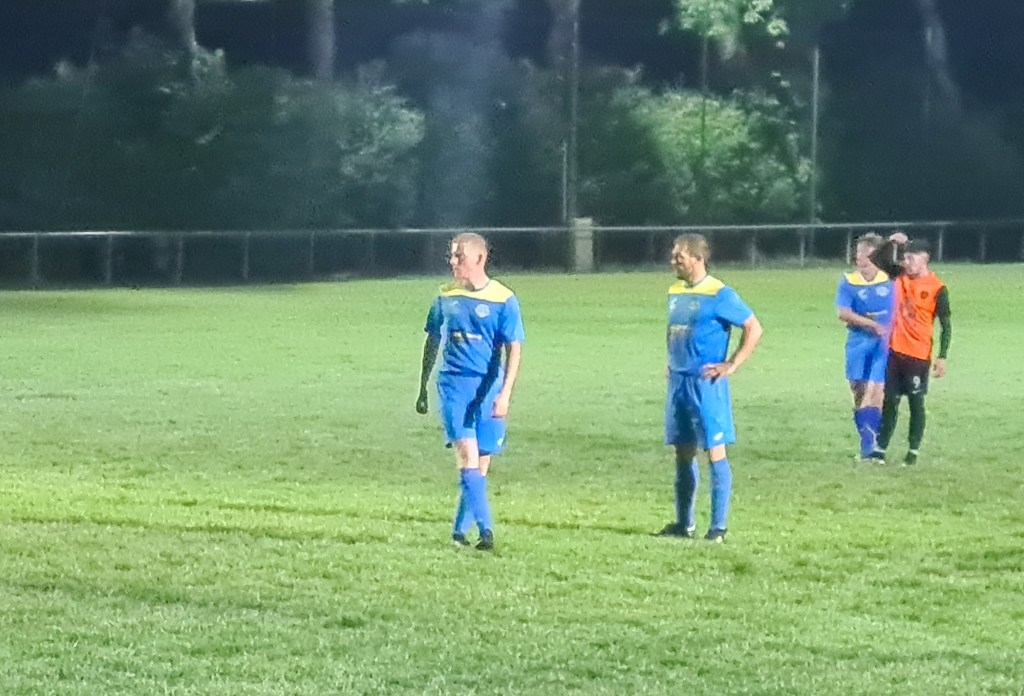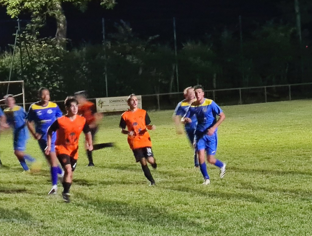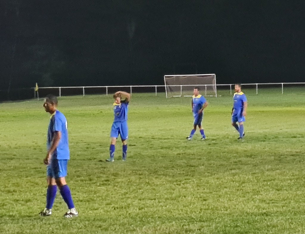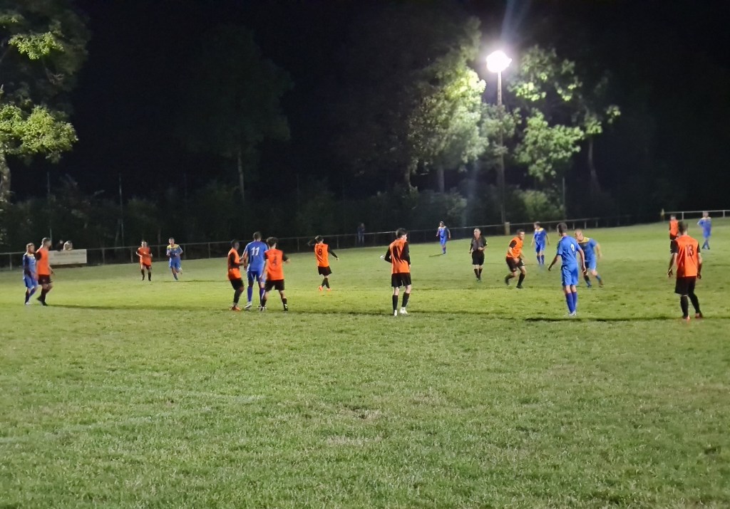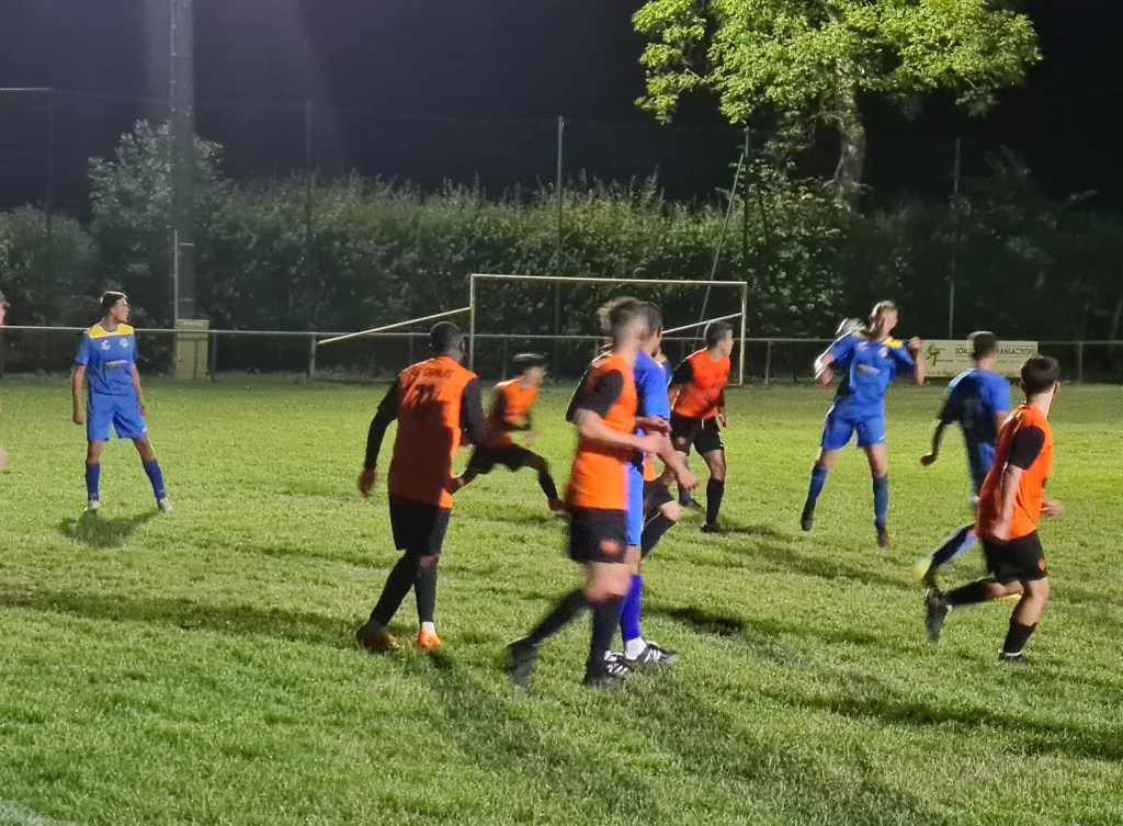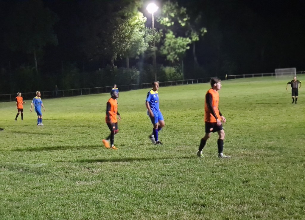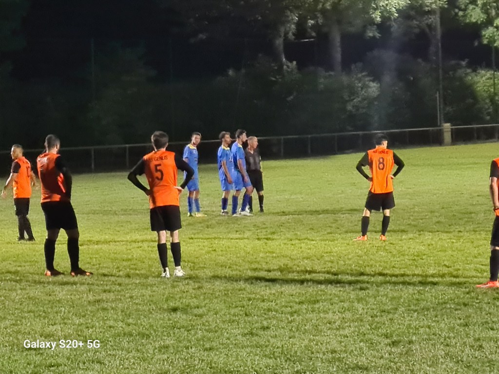 On peut résumer ce match de deux manières opposées. C’est un match nul frustrant, car, quand on a l’opportunité de mener au score à la 90ème on se doit de l’emporter. Mais si on regarde le match dans son ensemble, c’est un bon point face à une solide équipe de Genlis, rugueuse à souhait mais qui fait une bonne utilisation du ballon. Les buts de la soirée sont toujours allés par deux. A l’ouverture du score par Clément D, Genlis a immédiatement répondu par une reprise à bout portant au deuxième poteau. 1 à 1 à la pause. C’est au tour des visiteurs de prendre l’avantage sur une frappe inattendue de vingt mètres, 1-2. Mais les partenaires de cap’tain Cyril égalisent dans la foulée, toujours par Clément, 2 à 2. Les bleus poussent, poussent mais Genlis, très solide défensivement, plie sans rompre comme en témoigne un sauvetage miraculeux du latéral droit à son poteau. On croit tenir le graal quand Baptiste marque d’une belle volée à la 90ème, 3-2. Mais tout s’effondre dans la minute suivante.. Sur un coup franc lointain, le haut du crâne d’Alexis dévie le ballon dans ses propres buts… 3 à 3.