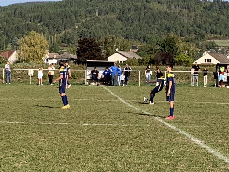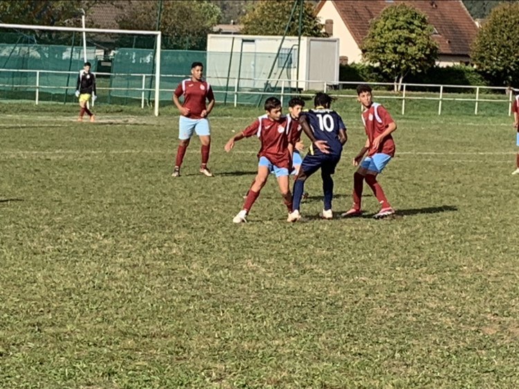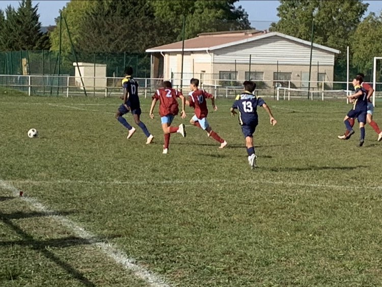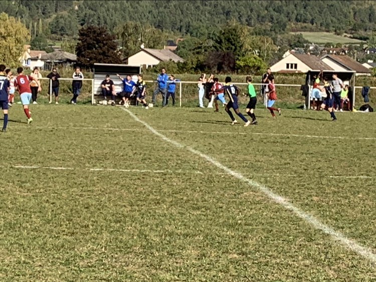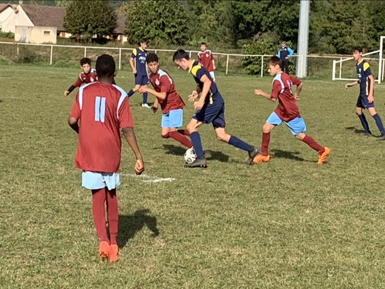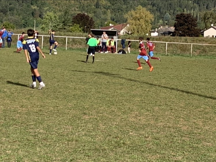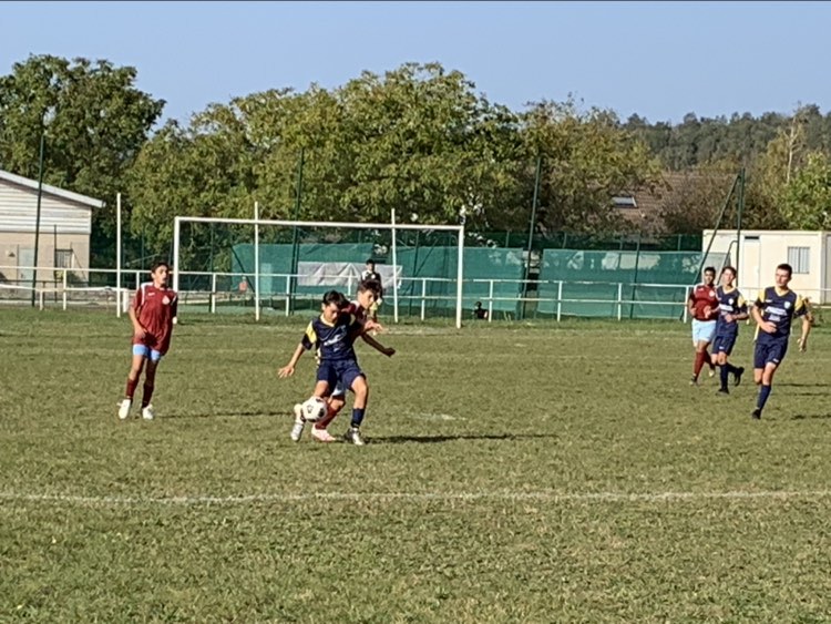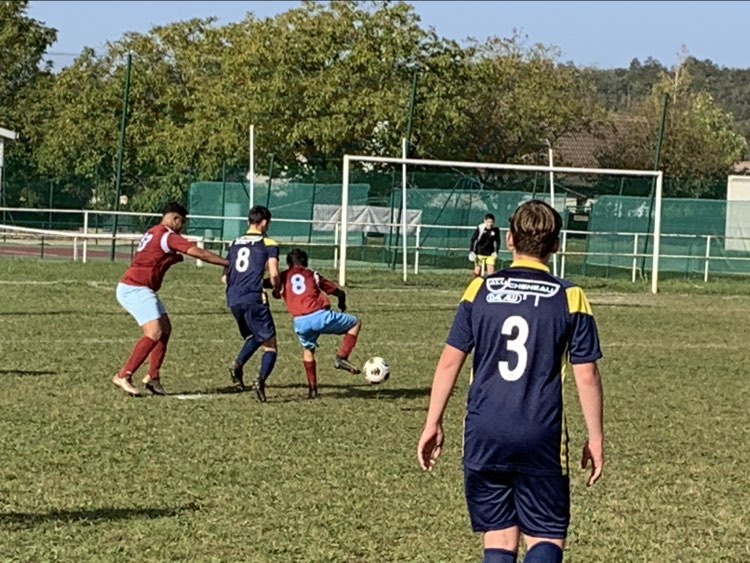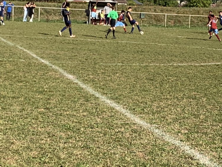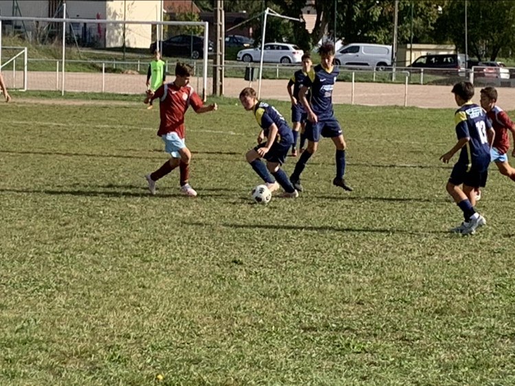 Un match bien frustrant. Certes il y avait une belle équipe en face, mais la passivité affichée en première mi-temps permet aux visiteurs de mener 4 à 0 à la pause… Après le repos, Maxime mène la révolte. Et on est beaucoup plus agressif avec un pressing plus haut. Les milieux récupèrent de bons ballons dont profitent les attaquants. D’une frappe de 20m Maxime trouve les filets, et ce but remonte le moral des troupes. Ca pousse, ça pousse. On récupère des ballons plus haut. La défense adverse n’est ps sereine quand on la presse. Louis C en profite pour ramener le score à 2-4. Mais l’entente se remet dans la mouise en encaissant un coup franc que tout le monde regarde passer sans essayer d’intervenir..2-5. On repart de l’avant, et c’est Mattéo qui met le but de l’espoir, 3-5. Un joli vent de folie souffle sur le stade qui sent que l’exploit pourrait avoir lieu… Mais c’est un jour sans… Les bleus se font cueillir sur deux contres, 3-7. Joli sursaut d’orgueil qui permet de ne pas perdre la seconde mi-temps.