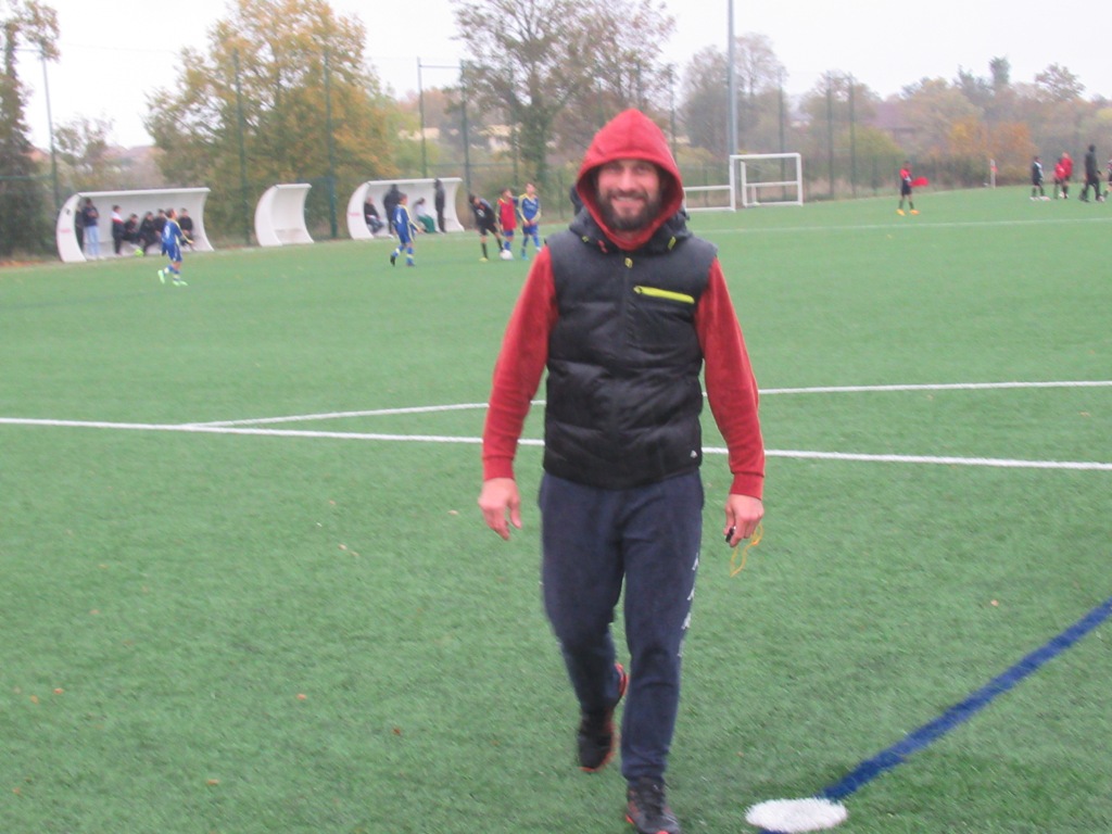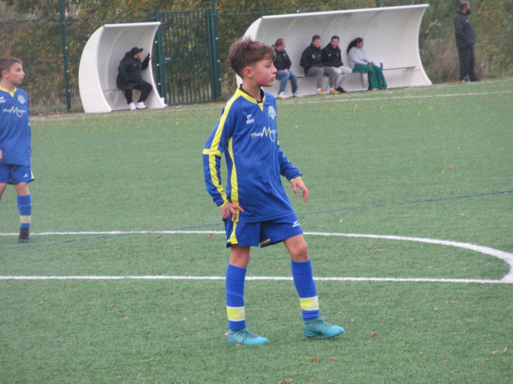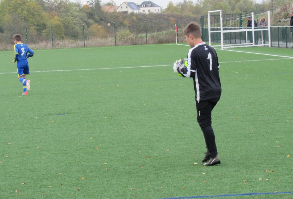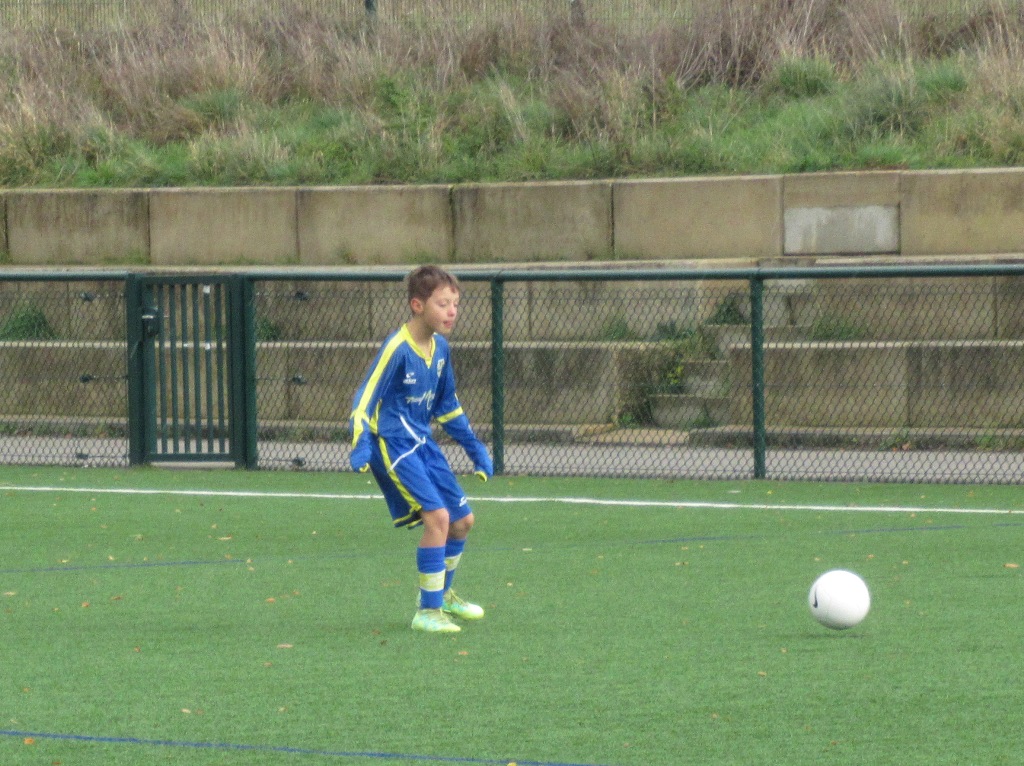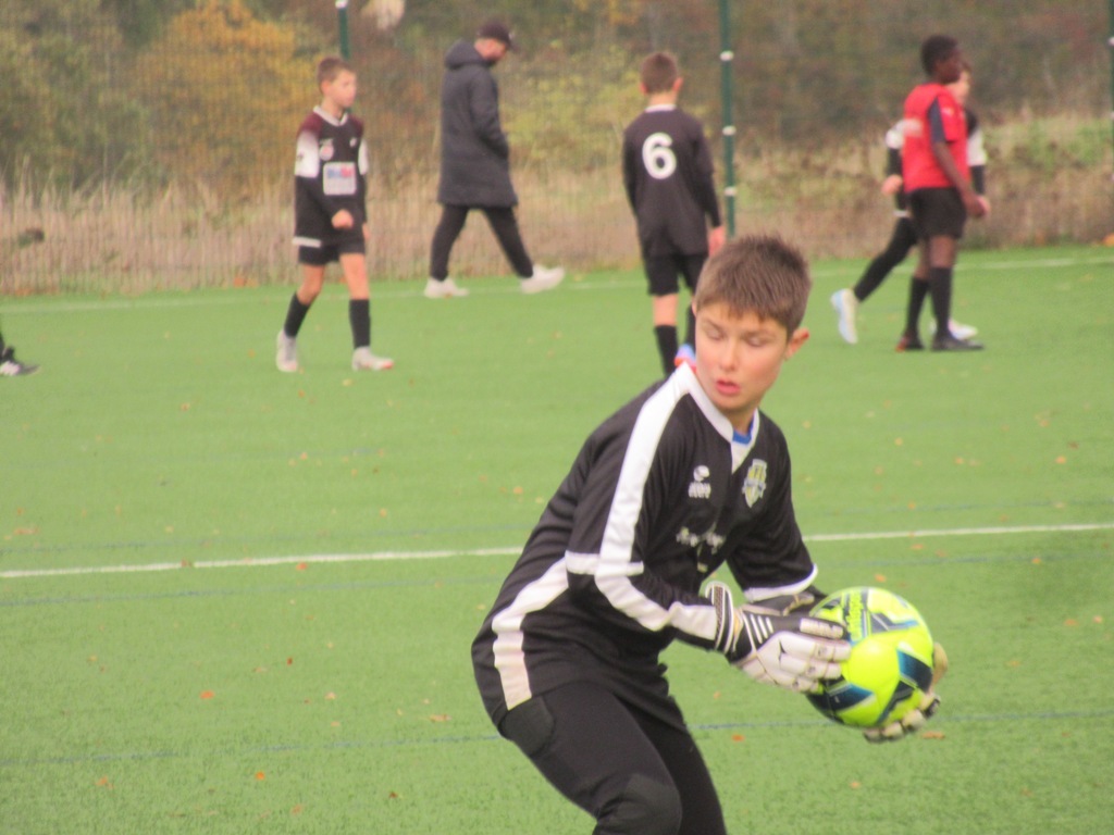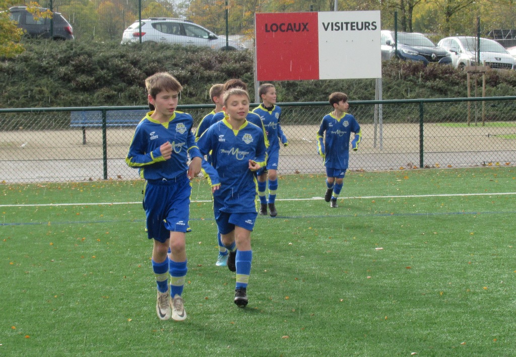 Face à un sérieux prétendant à la montée, nos jeunes pousses ont souffert dans l’enfer glacial du nord (pluie et vent). Malmenés pendant les 3/4 de la rencontre, les partenaires de Martin ont sorti le grand jeu dans le dernier quart temps pour ramener un nul inespéré. Les bleus sont littéralement privés de ballon pendant la première période, et c’est un petit miracle d’atteindre la pause avec un seul but de retard. Et ça recommence après le repos. Il faut que Samuel reste concentré et sorte quelques parades mais il devra s’incliner une seconde fois, 0-2. Et arrive le dernier quart temps. Et nos petits bleus sortent du diable vauvert pour terminer gonflés à bloc. Il faut d’abord une double parade du gardien pour empêcher Arthur de marquer. Sur le contre UCCF est à deux doigts de faire le break. Se ne sera que partie remise. Quelques minutes plus tard. Arthur sert Noé seul au deuxième poteau. Notre petit lutin a le temps de contrôler et d’ajuster une mine sous la transversale, 1-2. Ca pousse, ça pousse… Liova a une occasion que l’on qualifie habituellement d’immanquable…et pourtant… Dernière minute, une ultime percée d’Enzo dans la surface…et il se fait découper par derrière… Pénalty que transforme avec sang froid Liova, 2-2. Nos petits bleus reviennent indemnes de l’enfer du Nord. BRAVO !