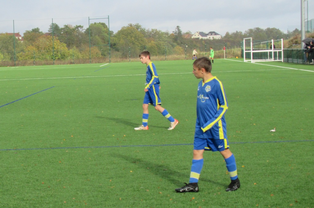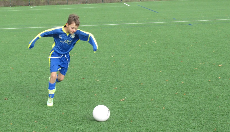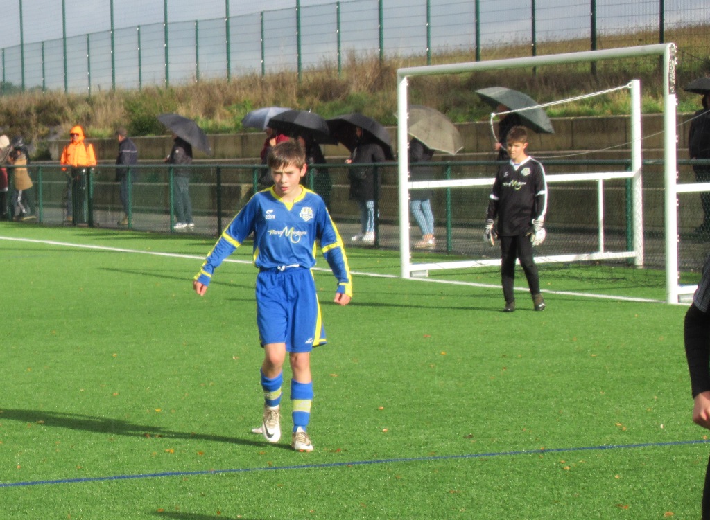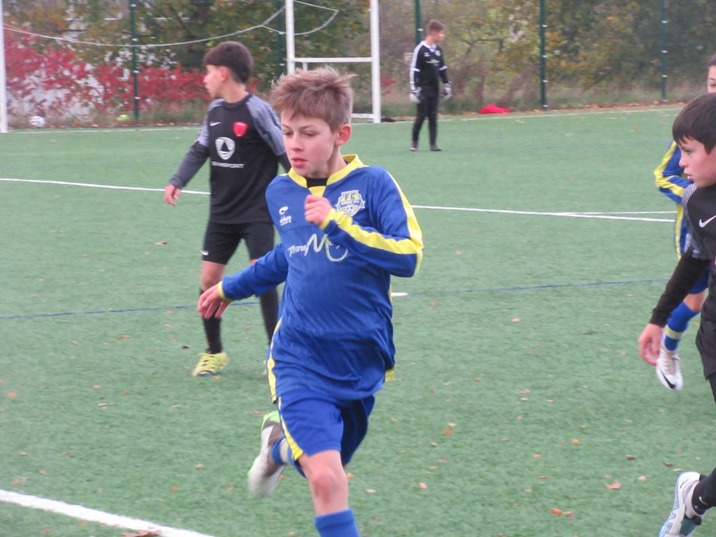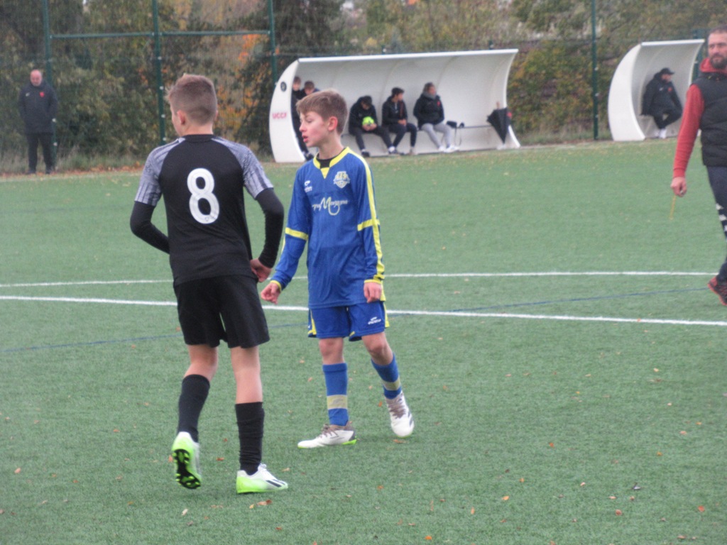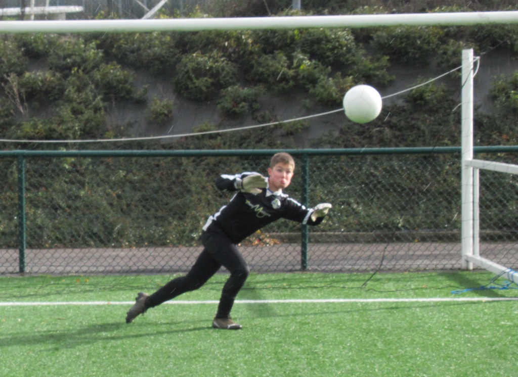 Face à un sérieux prétendant à la montée, nos jeunes pousses ont souffert dans l’enfer glacial du nord (pluie et vent). Malmenés pendant les 3/4 de la rencontre, les partenaires de Martin ont sorti le grand jeu dans le dernier quart temps pour ramener un nul inespéré. Les bleus sont littéralement privés de ballon pendant la première période, et c’est un petit miracle d’atteindre la pause avec un seul but de retard. Et ça recommence après le repos. Il faut que Samuel reste concentré et sorte quelques parades mais il devra s’incliner une seconde fois, 0-2. Et arrive le dernier quart temps. Et nos petits bleus sortent du diable vauvert pour terminer gonflés à bloc. Il faut d’abord une double parade du gardien pour empêcher Arthur de marquer. Sur le contre UCCF est à deux doigts de faire le break. Se ne sera que partie remise. Quelques minutes plus tard. Arthur sert Noé seul au deuxième poteau. Notre petit lutin a le temps de contrôler et d’ajuster une mine sous la transversale, 1-2. Ca pousse, ça pousse… Liova a une occasion que l’on qualifie habituellement d’immanquable…et pourtant… Dernière minute, une ultime percée d’Enzo dans la surface…et il se fait découper par derrière… Pénalty que transforme avec sang froid Liova, 2-2. Nos petits bleus reviennent indemnes de l’enfer du Nord. BRAVO !