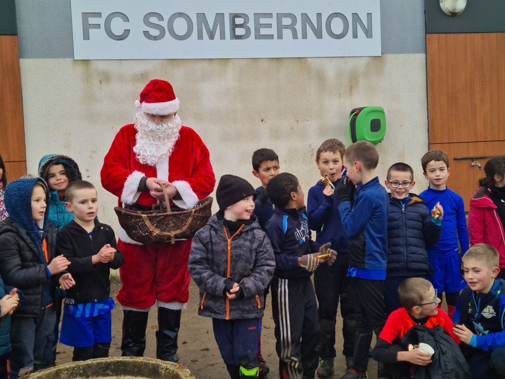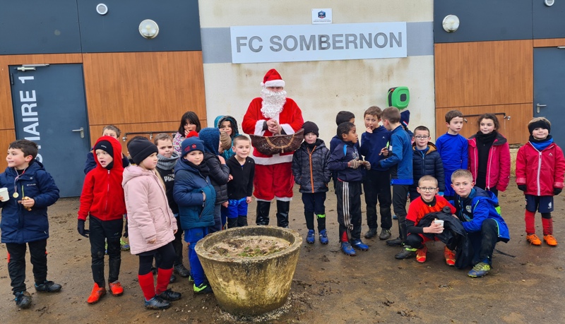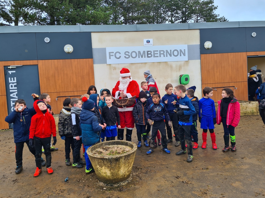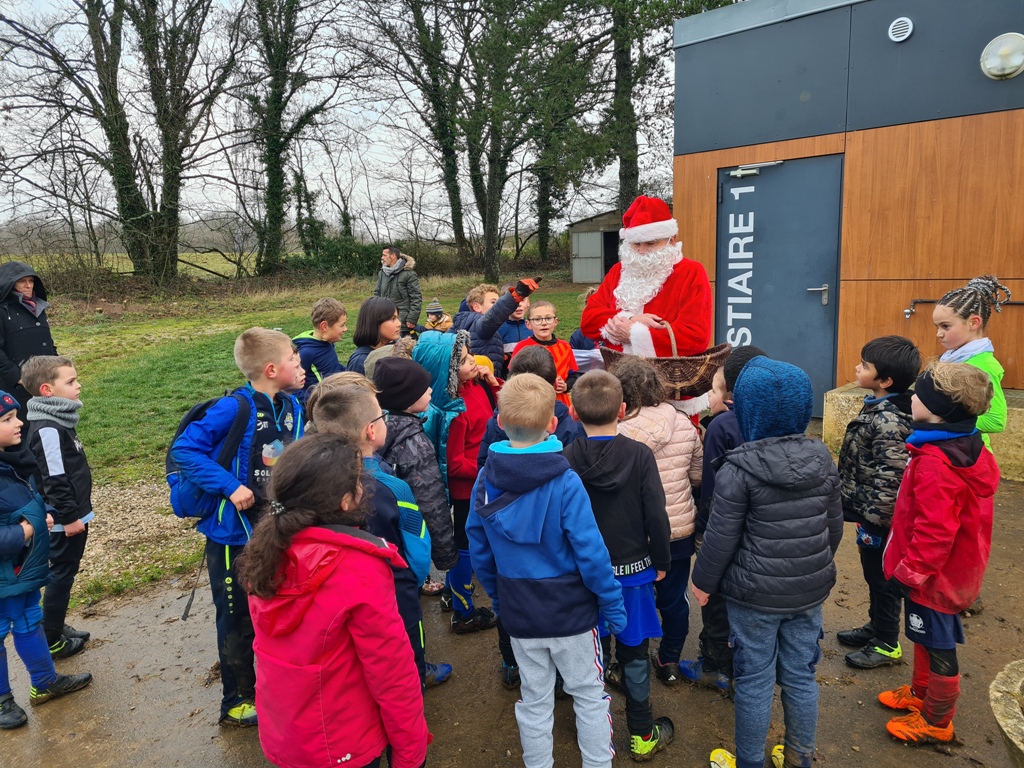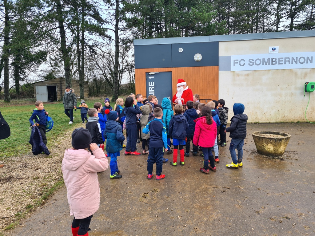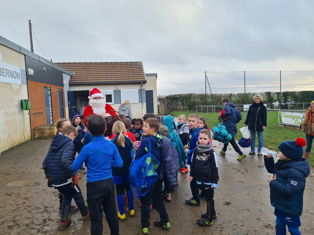L’entraînement des U7 et U9 touchait à sa fin lorsqu’une figure emblématique a franchi la porte du stade de l’Epine – Marcel David ! Le Père Noël en personne est venu rendre visite à nos petits footballeurs en herbe. Et il s’est montré très généreux, distribuant bonbons et papillotes à nos jeunes bambins. Après avoir pris la pose pour la photo souvenir, le héros du jour s’est éclipsé discrètement pour poursuivre sa tournée. Une bien belle journée pour nos jeunes footeux !