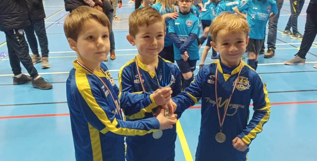 Un malade de dernière minute et nos petits U7 n’étaient plus que 3 pour ce tournoi en salle à Saulieu. La Morvandelle, club organisateur, a eu la gentillesse de nous prêter un joueur. Et notre petite bande s’est faite plaisir même s’il se sont inclinés aux pénaltys pour la qualification en Champion’s League. Déçus, ils se battent comme des lions et remportent la ligue Europa et finissent 9èmes avec 3 victoires, 1 nul et 2 défaites.