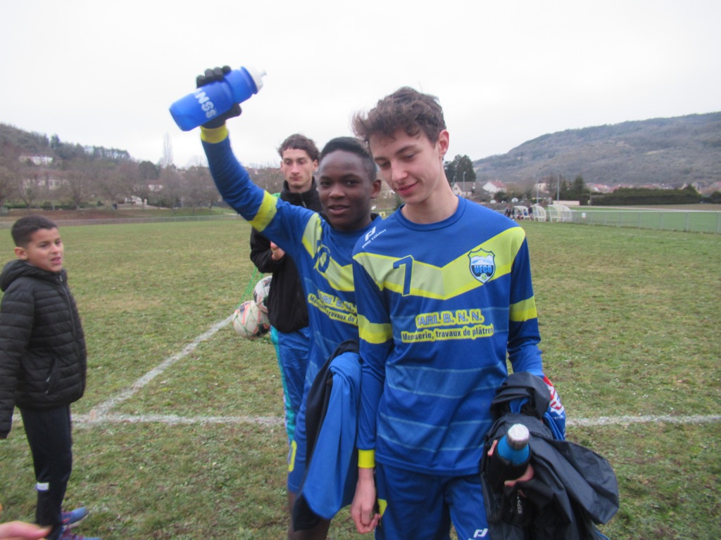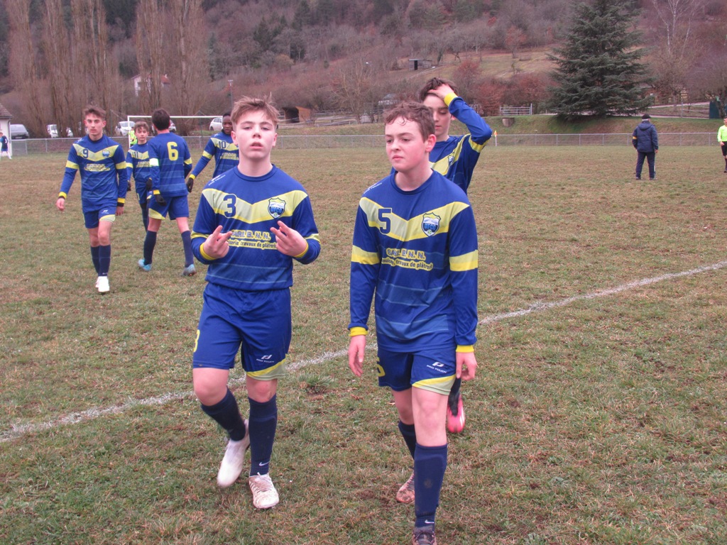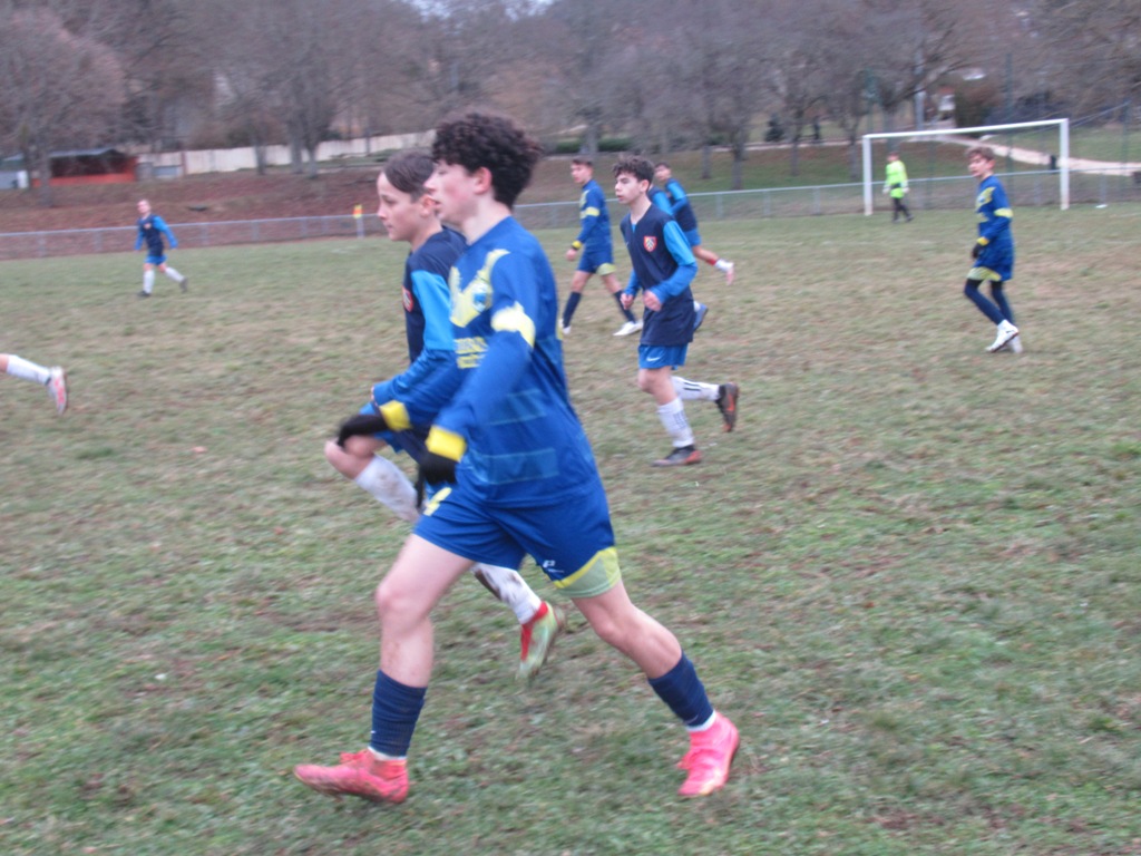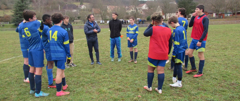Les U15 ont assuré une qualification tranquille face à une très jeune équipe de Pouilly, 4 à 1. La différence était faite à la pause grâce à un but de Jephthé (merci le gardien…) et un doublé de Mattéo d’une belle pichenette au premier poteau d’abord puis sur une frappe en force à l’entrée de la surface. Les polliens ont eu le mérite de ne jamais fermer le jeu. Leurs efforts sont récompensés à la conclusion d’une très belle action collective. Les occasions d’alourdir le score sont nombreuses mais manquées par maladresse dans le dernier geste ou par excès d’individualisme. Jephthé y ira aussi de son doublé en convertissant un pénalty. Les visiteurs bénéficieront aussi d’un coup de pied de réparation, mais la frappe du tireur ne trouvera pas le cadre. 4 à 1 le job est fait.