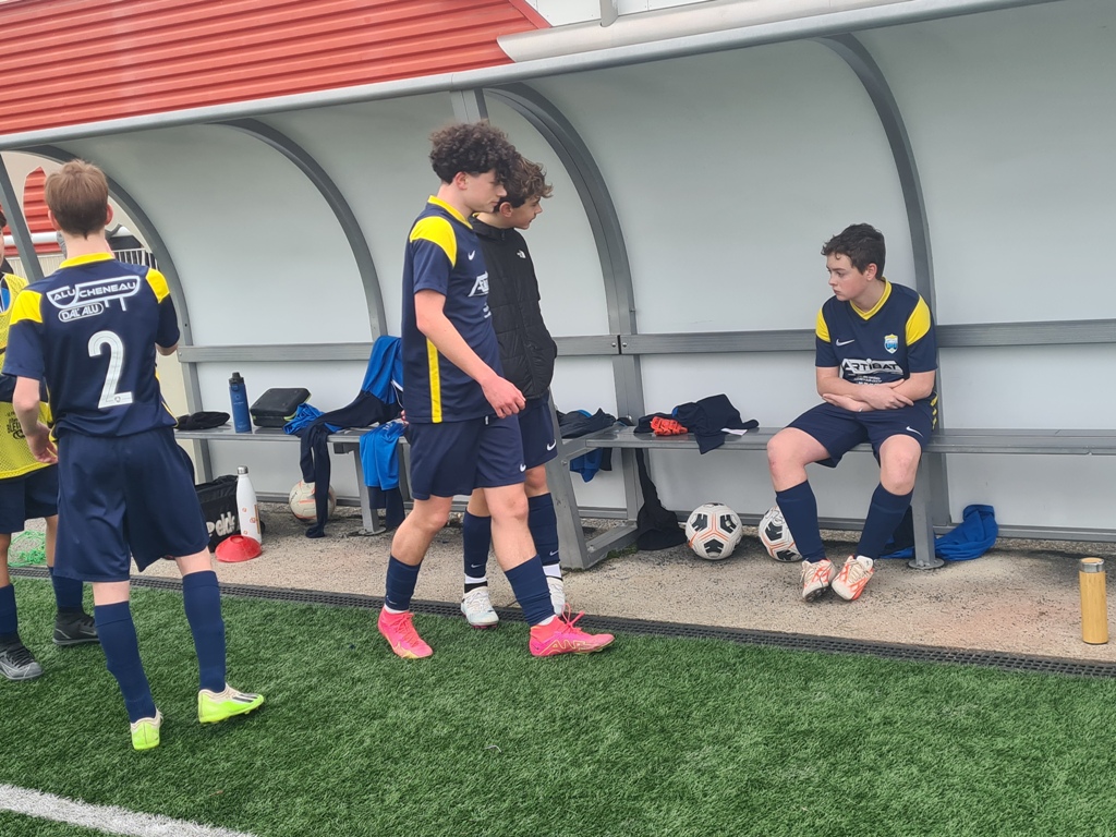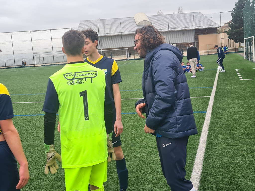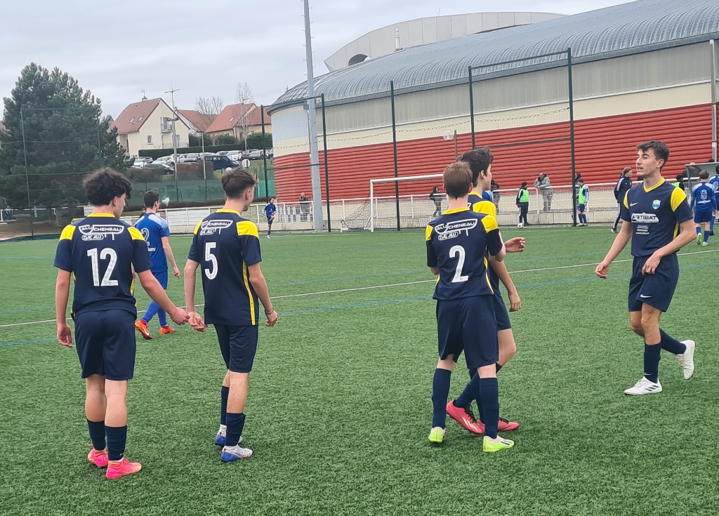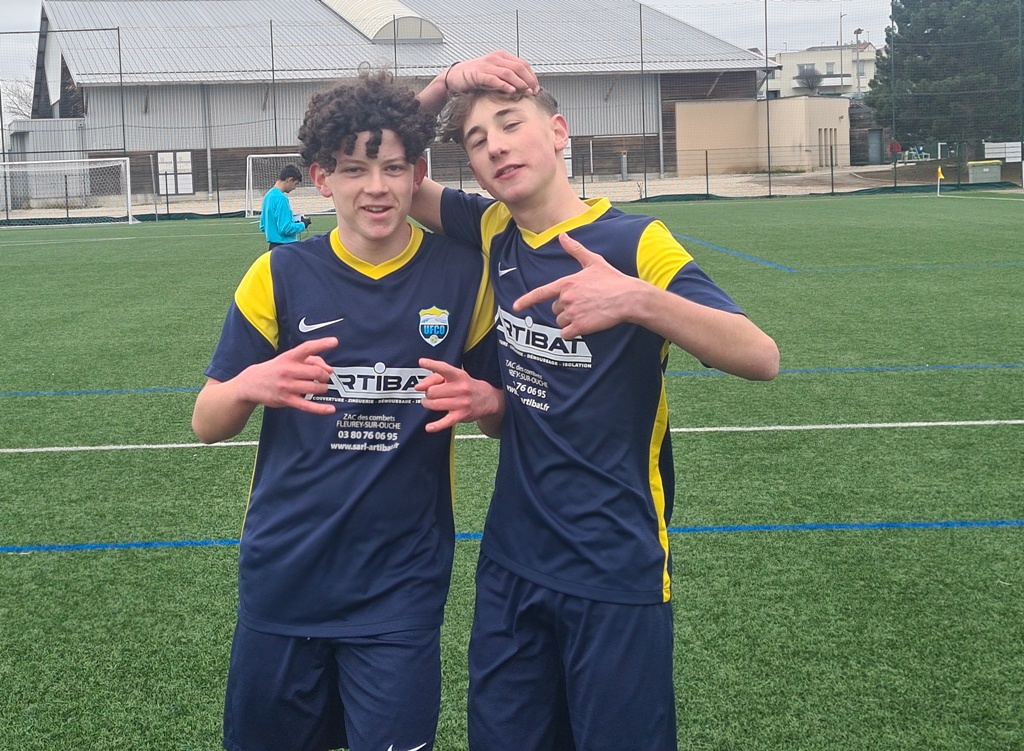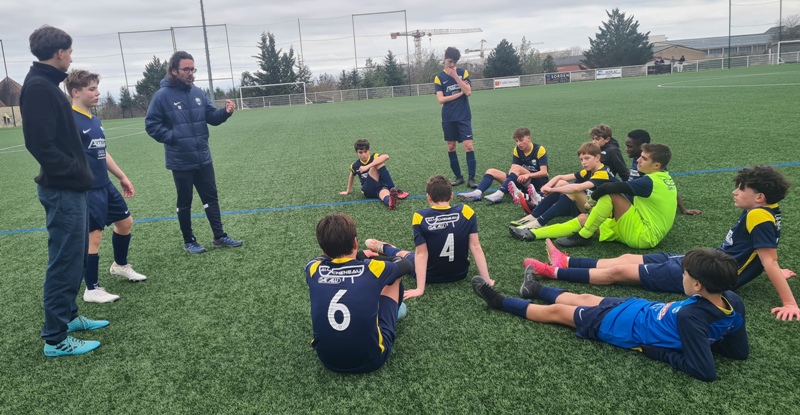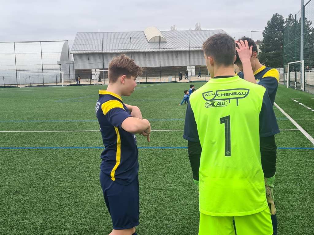 Les U15 avaient pour ambition de faire partie du top 8 Côte d’Orien. Mais Fontaine les Dijon les en a privé à l’issue d’un match serré. L’Entente tarde à rentrer dans son match. Fontaine met son jeu en place et ouvre très vite le score sur corner en profitant de la passivité de la défense, 0-1. Les partenaires d’Andréa se remobilisent et ont quelques belles balles de contre par Jephthé, Mattéo ou Grand Louis qui sont hélas mal exploitées. Les locaux ont une balle de break mais il faut une intervention très énergique d’Arthur pour éviter la casse. Juste avant la pause, un numéro spécial de Jephthé à l’entrée de la surface lui permet d’ajuster le gardien pour égaliser, 1 à 1. Coach Matthias insiste auprès de ses troupes sur les points à appuyer pour aller faire mal à l’adversaire. Les percées de Gabin ou Jephthé usent la défense adverse. Les défenseurs de Fontaine sortent les grands moyens pour stopper les assauts de l’Entente, plus ou moins régulièrement. Mattéo qui partait seul au but est stoppé sèchement dans son élan. Jephthé est déséquilibré dans la surface mais manque de vice pour obtenir le pénalty qui s’imposait. Et Fontaine prendra les devants sur un corner direct en profitant encore une fois de la passivité du dernier rempart, 1-2. Vraiment dommage !