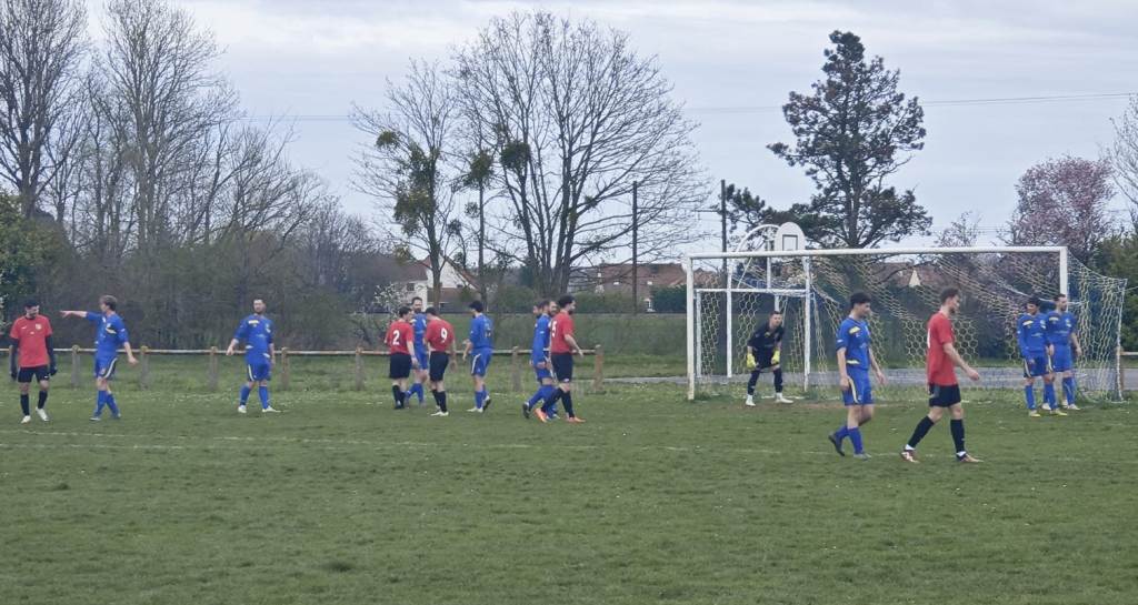 Après avoir ouvert le score sur une tête d’Alexis sur coup franc, les bleus pensaient avoir fait le plus dur. Mais les locaux égalisent sur corner, 1 à 1 à la pause. En seconde période, Champdôtre/Longeault score deux fois coup sur coup à l’heure de jeu et anéantit définitivement les espoirs de la bande à Manu.