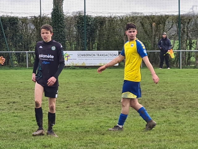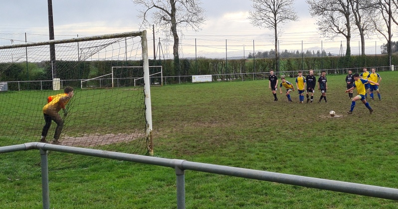 La bande à Seb a fait carton plein contre Daix, avec une victoire 9 à 0. Les offensifs se sont fait plaisir en faisant feu de toutes parts. Après l’ouverture du score de Dorian bien décalé côté gauche, Simon trouve les filets d’une belle frappe de loin, 2 à 0. Benoit en embuscade porte le score à 3 à 0. Les jaunes auront cinq buts d’avance à la pause. Se sera attaque-défense en deuxième période sur une terrain rendu difficile par la pluie. En faisant davantage d’efforts pour écarter le jeu, le score aurait pu être encore plus sévère.