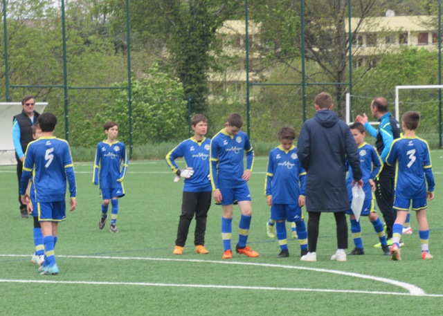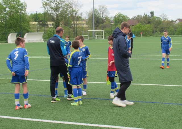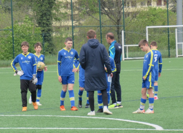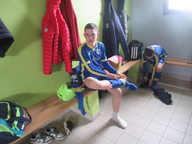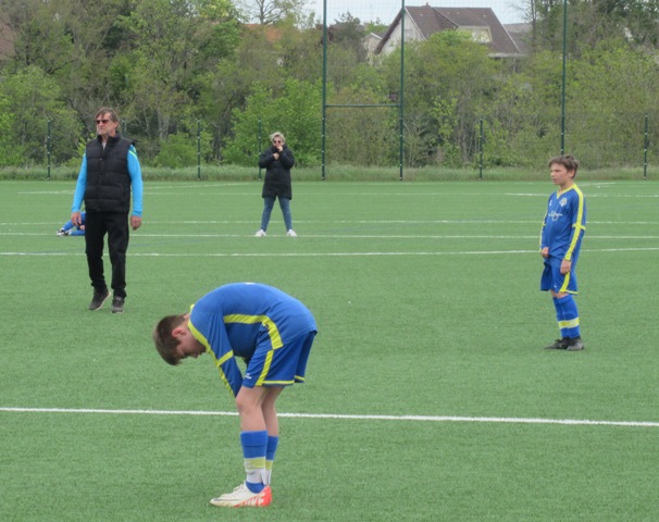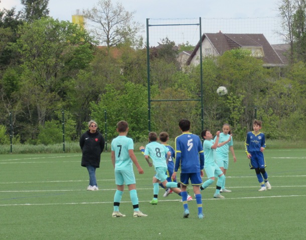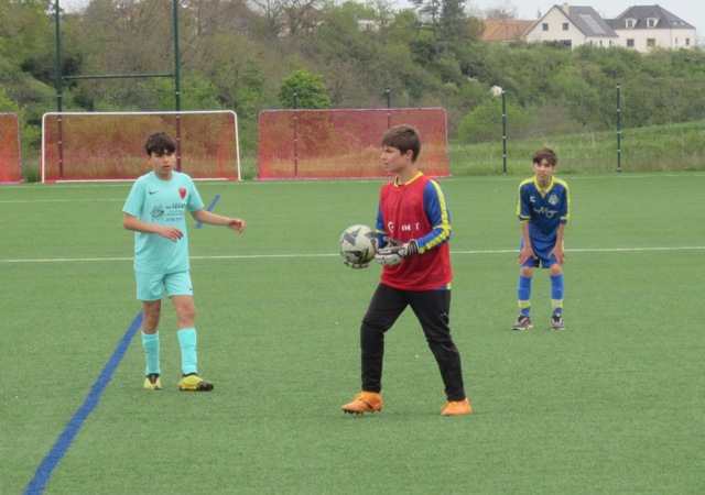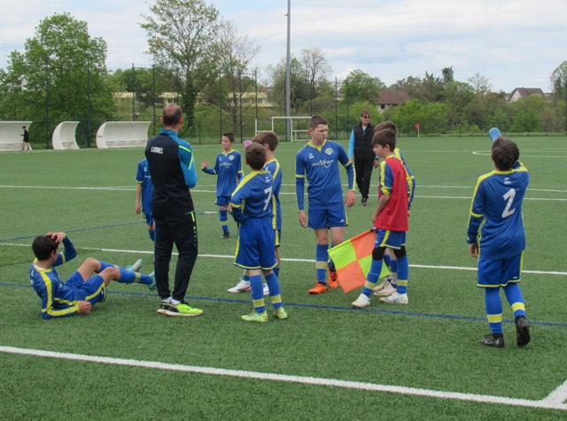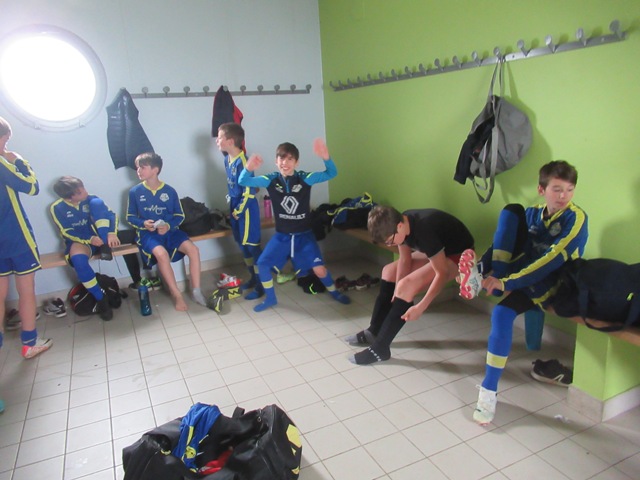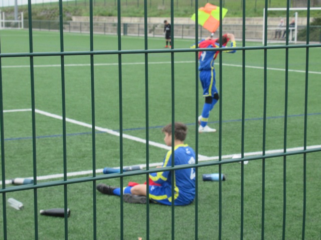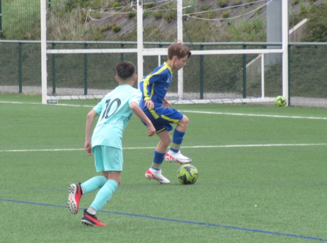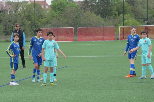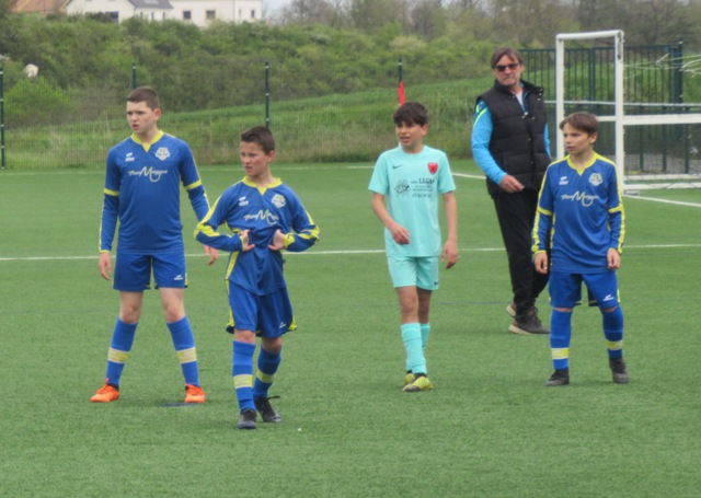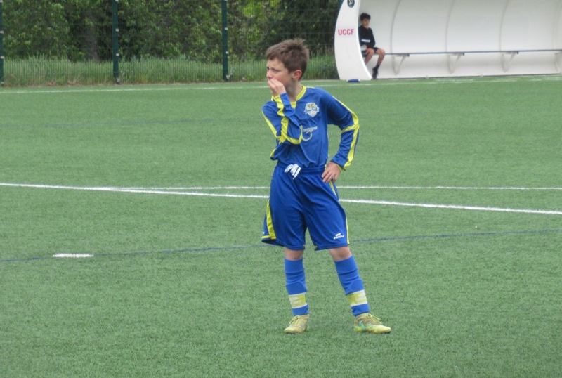 On s’attendait à un match difficile, il l’a été. Le regret est le manque de constance durant l’heure de jeu. S’il y a eu des moments de doute (logiques au regard de la qualité de l’adversaire), il y a eu aussi des moments forts. Les locaux impriment leur rythme au match et les bleus courbent le dos mais tiennent bon. Néanmoins ils parviennent à ouvrir le score. Mais Arthur mystifie toute la défense adverse pour arracher une égalisation qui met du baume au coeur, 1-1. Le buteur maison va même s’offrir une balle de 2-1 mais son lob passe de peu à côté. UCCF est plus efficace et marque juste avant la pause, 1-2. Et les locaux remettent le couvert dès la reprise, 1-3. But qui assomme un peu le moral des troupes. Les locaux font très bien tourner le ballon, se créent des espaces pour se mettre en situation de tir. Ils assoient leur supériorité en inscrivant quatre nouveaux buts. Les bleus ont le mérite de ne pas baisser les bras. Mahé, Louis et Arthur ont de belles opportunités mais en vain. Samuel fait le job pour éviter que le score ne s’alourdisse, bien aidé par Martin et Nataël au four et au moulin. Le coach d’UCCF a reconnu avoir du faire face à la plus belle opposition depuis le début de saison. Preuve que notre jeune troupe est sur la bonne voie.