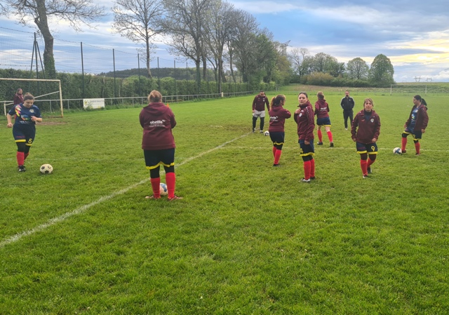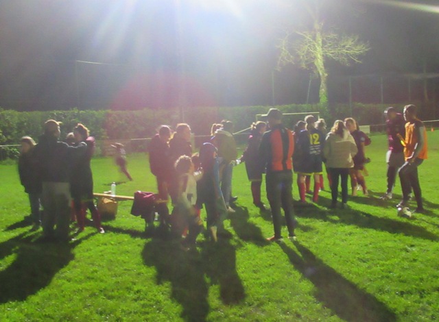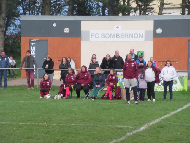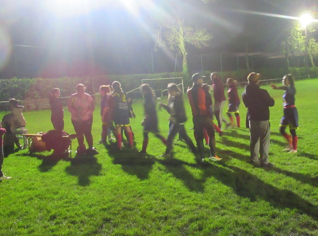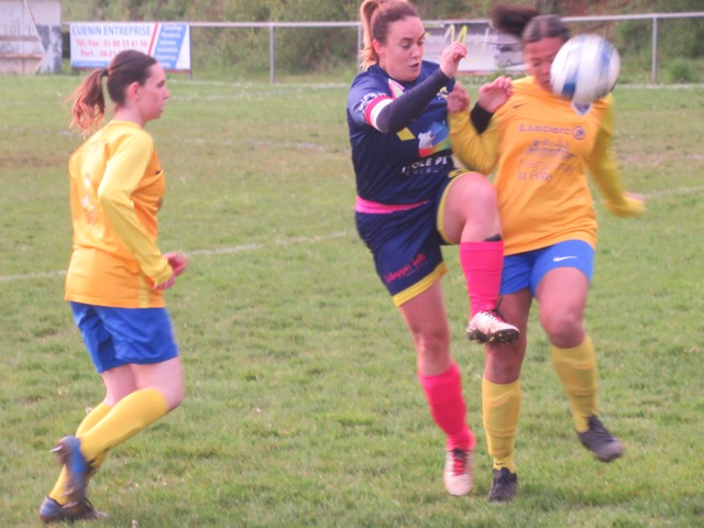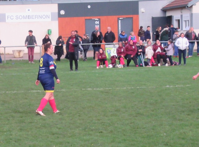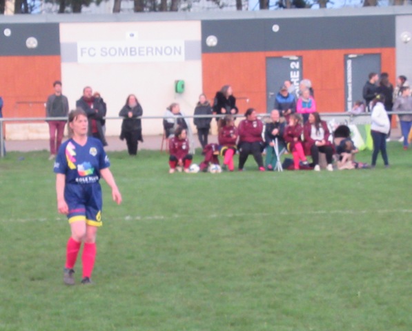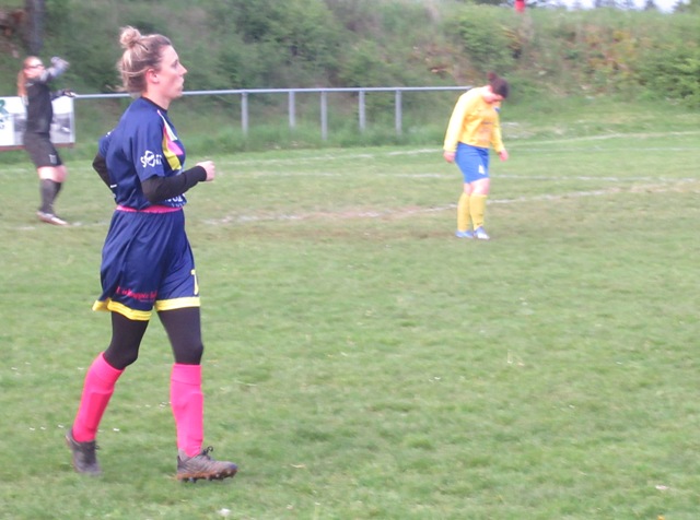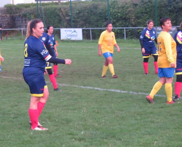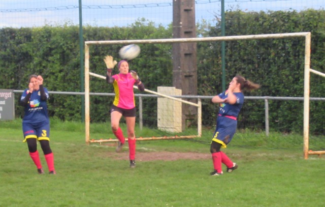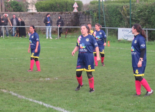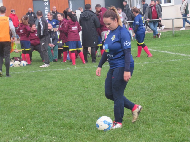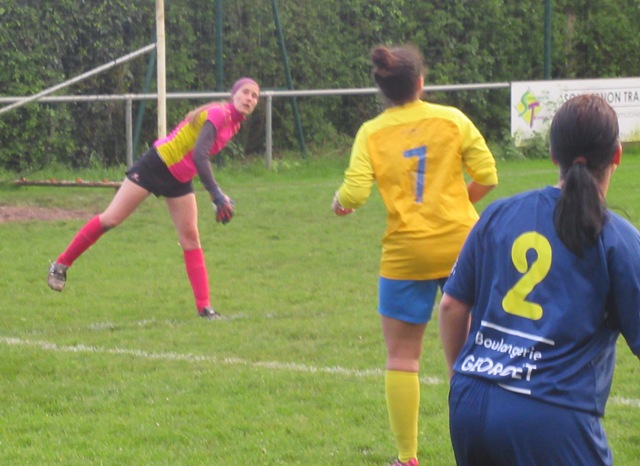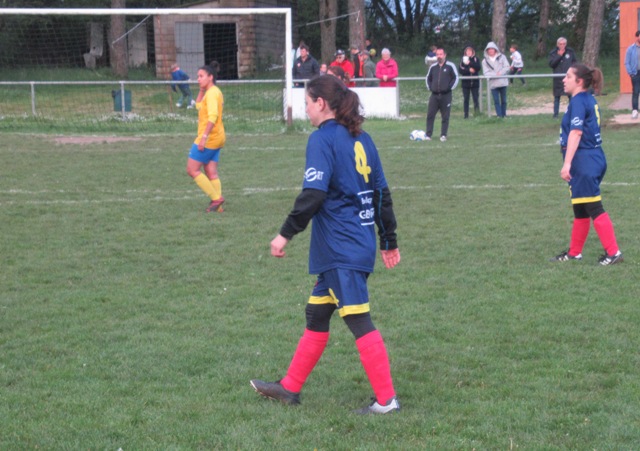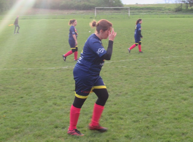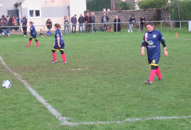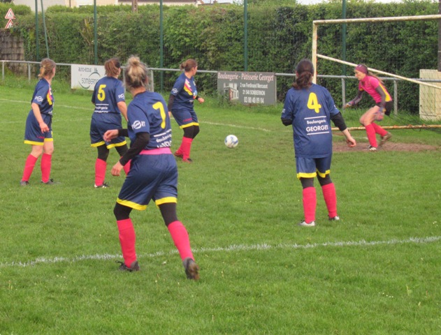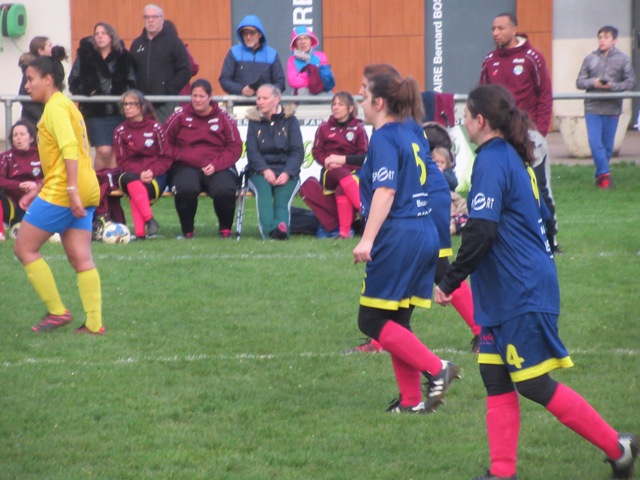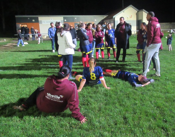 Il n’a pas manqué grand chose aux protégées de Jérôme et Saïd pour réussir l’exploit de se qualifier pour la finale de la coupe de Côte d’Or. Le début de match est équilibré, mais Marsannay mène 2 à 0 après vingt minutes sur deux coups de billard… Les bleues ne baissent pas les bras, se montrent plus offensives. L’espoir renait avec un pénalty transformé par Julia. Amélie sème la zizanie dans la défense jaune, tandis que Colette tacle à tout va pour protéger son but. Gaëlle a deux belles occasions mais tarde à frapper. Le FCSG égalise sur un contre de Julia. La joie est de courte durée. Les visiteuses reprennent l’avantage sur un pénalty juste avant la pause, 2-3. Les raids d’Aline usent la défense jaune qui concède un nouveau pénalty que Julia ne se fait pas prier de convertir pour une égalisation bienvenue. Chacune des deux équipes veut la victoire. C’est un peu débridé. Les visiteuses parviennent à faire la différence en fin de match. D’abord à la suite d’un cafouillage dans la surface, puis d’une superbe frappe qui finit dans le petit filet. 3-5, comme en championnat. Même s’il y a beaucoup de déception dans les têtes bleues, elles peuvent être très fières de ce beau parcours pour une première saison. Maintenant, on ne s’arrête pas en si bon chemin !