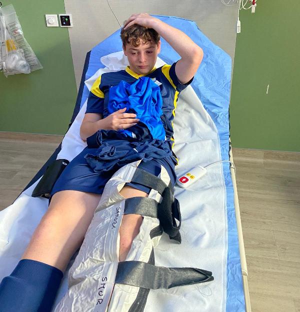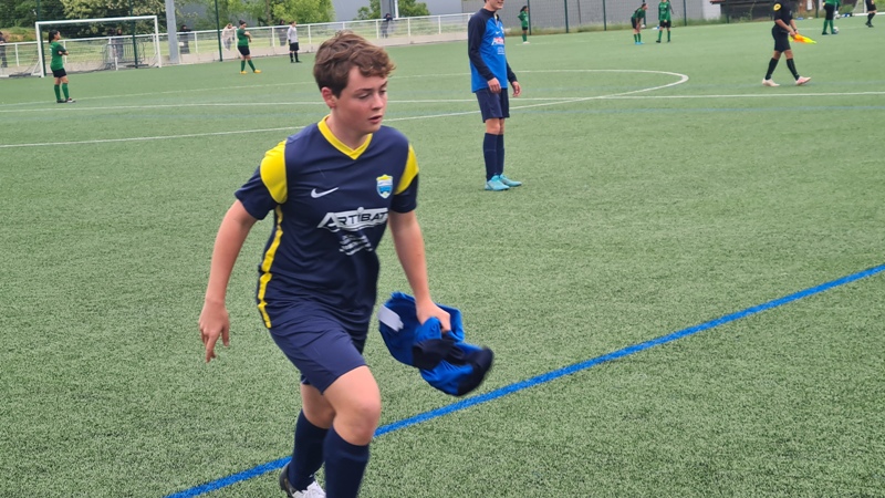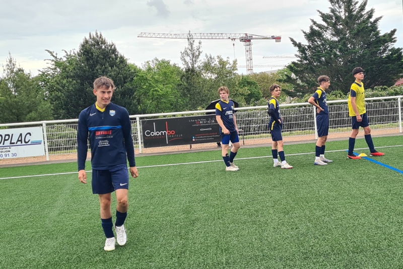 Face à la réserve de Fontaine les Dijon le match n’a malheureusement duré que cinq petites minutes… Dominés d’entrée de jeu, la bande à Matthias avait pourtant réussi à ouvrir le score suite à un gros pressing sur la défense adverse. Andréa pouvait alors récupérer le ballon pour marquer dans le but vide, 1 à 0. Malheureusement sur une action anodine, Léo retombe mal et se blesse sérieusement. Rotule du genou déboitée. Il doit alors rester immobilisé au sol pour ne pas aggraver la situation en attendant les secours. Les pompiers dans un premier temps, puis le SAMU ensuite pour lui remettre la rotule en place avant de l’évacuer au CHU pour des examens complémentaires. Nouvelles rassurantes pour Léo the Roc qui devra, par précaution, garder une attèle pendant deux semaines. Tout le monde lui souhaite un prompt rétablissement ! L’arbitre ayant interrompu la rencontre, cette dernière devrait être rejouée.