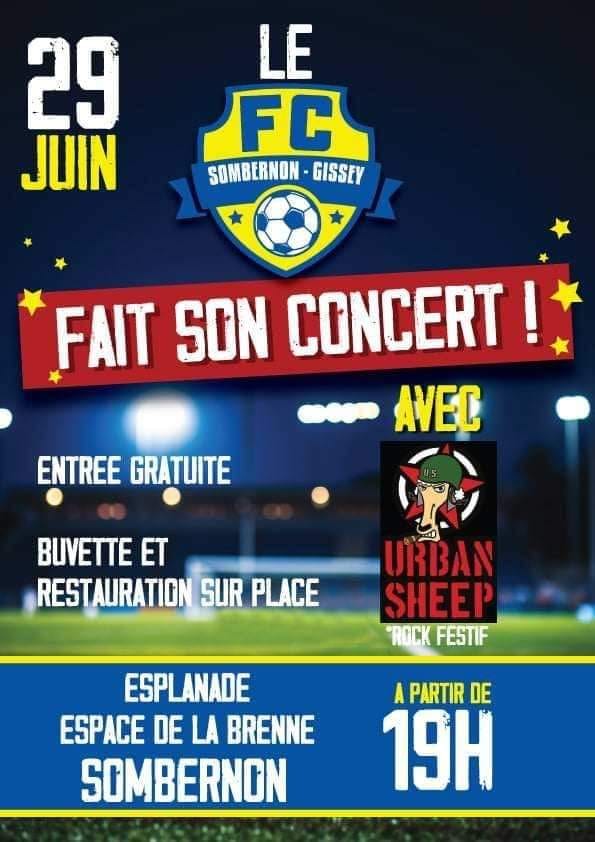 Les féminines du Football Club de Sombernon-Gissey organise un concert ce samedi 29 juin à l’espace de la Brenne. Et qui d’autre que le groupe Urban Sheep pour mettre le feu. En effet, Jérôme Charton le chanteur, et Vivian Rondel-Thierry guitariste sont licenciés au FCSG.