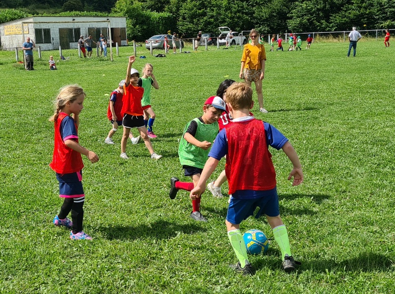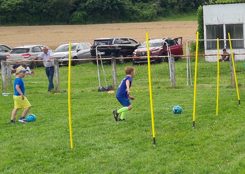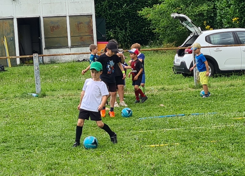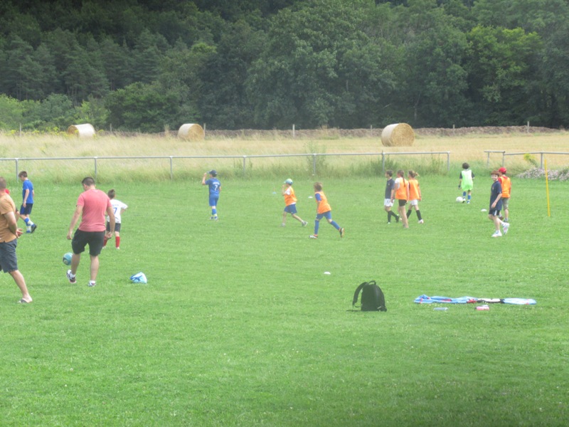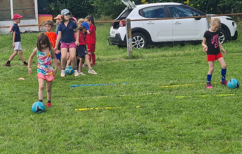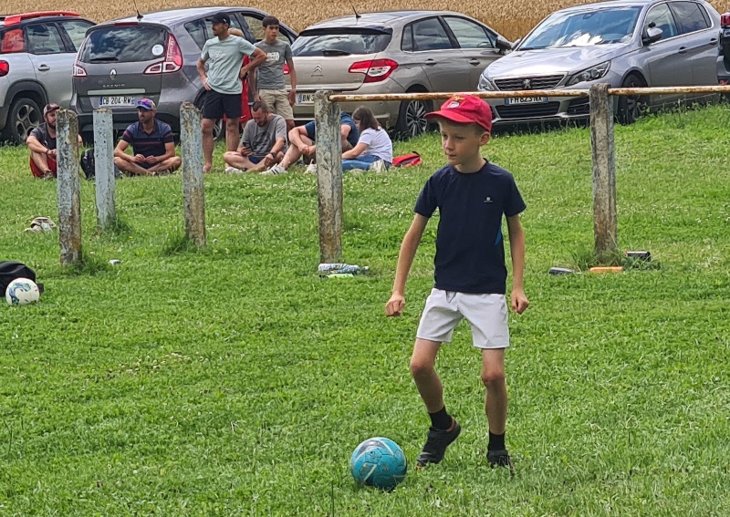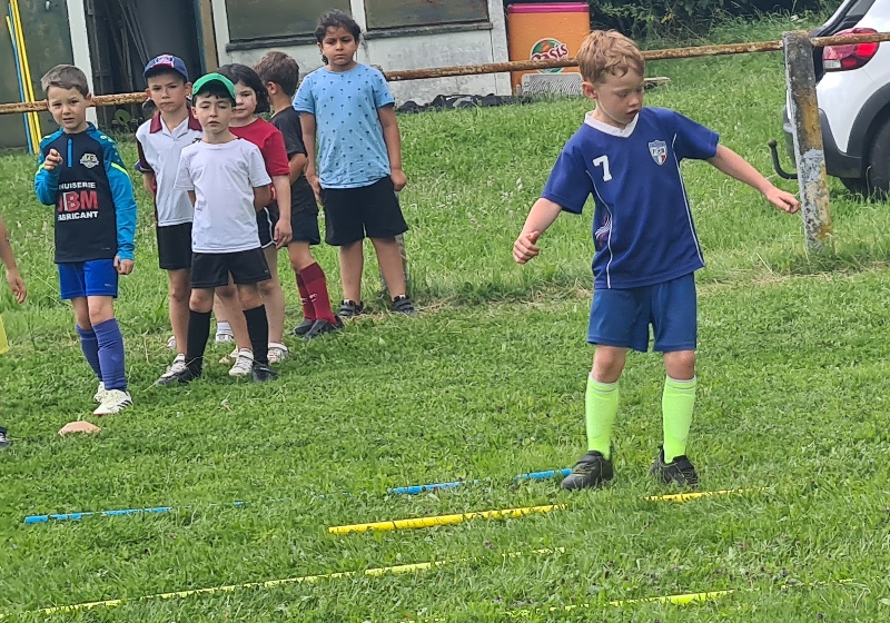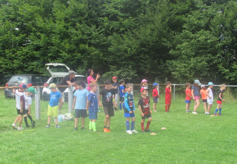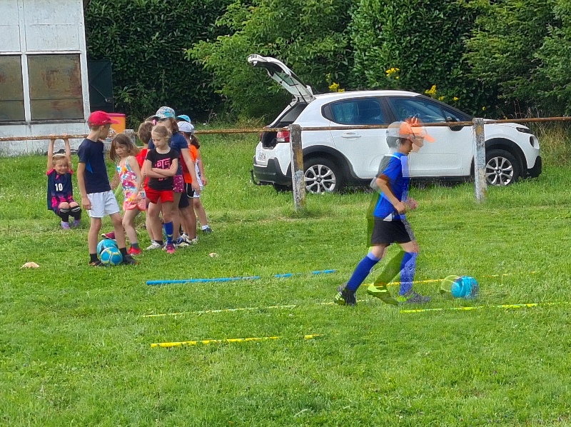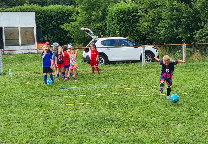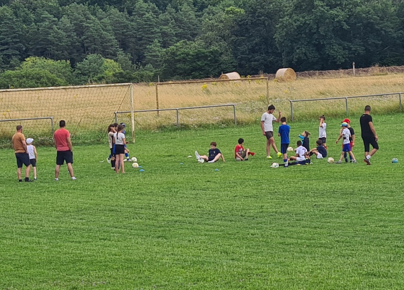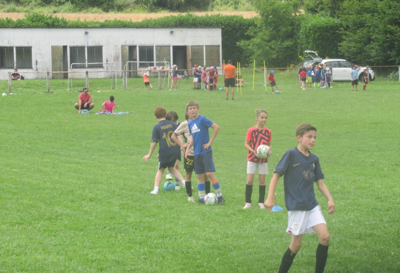 Du jamais vu au stade de la Vallée à Gissey ! Une quarantaine de jeunes garçons et filles sont venu assister à cette première des vacanes-foot version 2024, pulvérisant ainsi le précédent record qui était à 28. Beaucoup de jeunes ont ainsi fait leurs premiers pas découvrant ainsi avec bonheur les plaisirs du ballon rond. Après quelques exercices ludiques pour se familiariser avec cette petite balle magique, l’après midi c’est logiquement terminé par de petits matchs très attendus et très disputés. Sylvain et Rémi avec les « petits« , Clément et Jérôme avec les « grands » ont été heureux d’encadrer cette jeunesse débordante d’énergie. Il fallait bien un petit goûter pour apaiser tout ce petit monde après l’effort. Le rendez-vous est déjà pris pour samedi prochain !