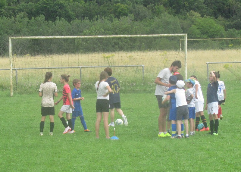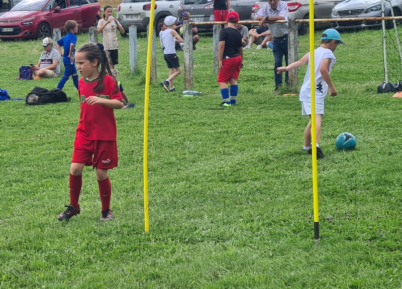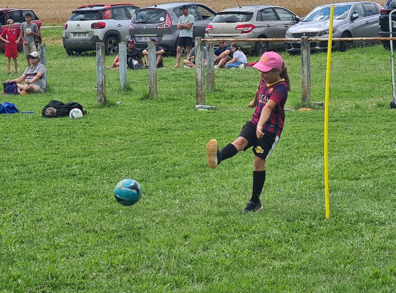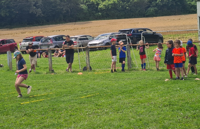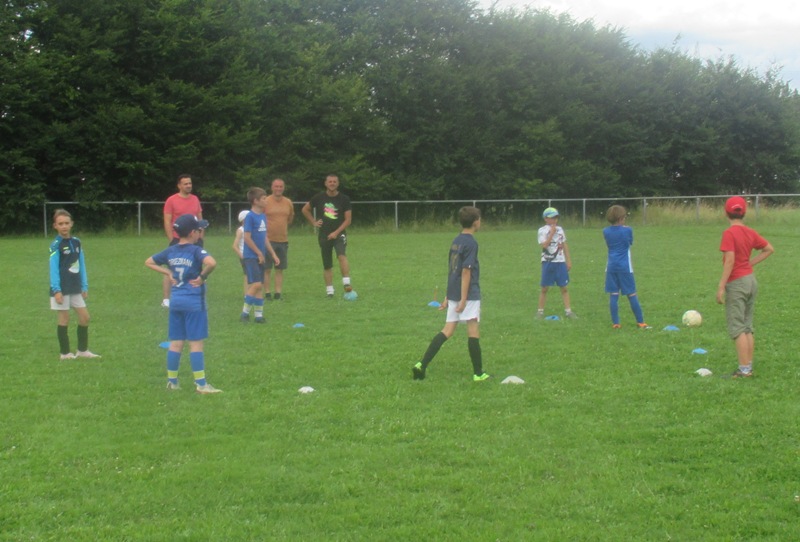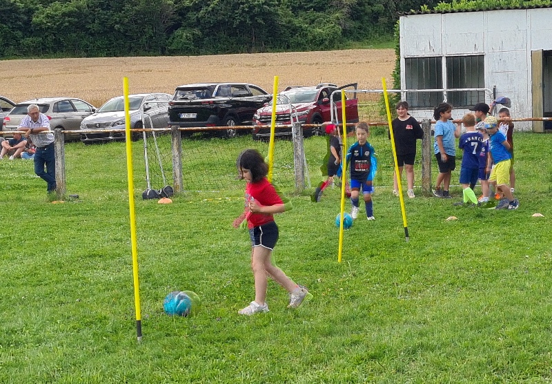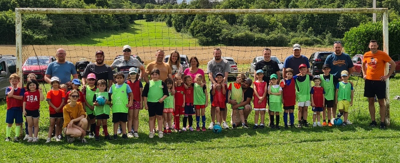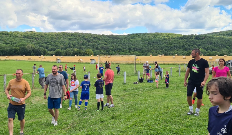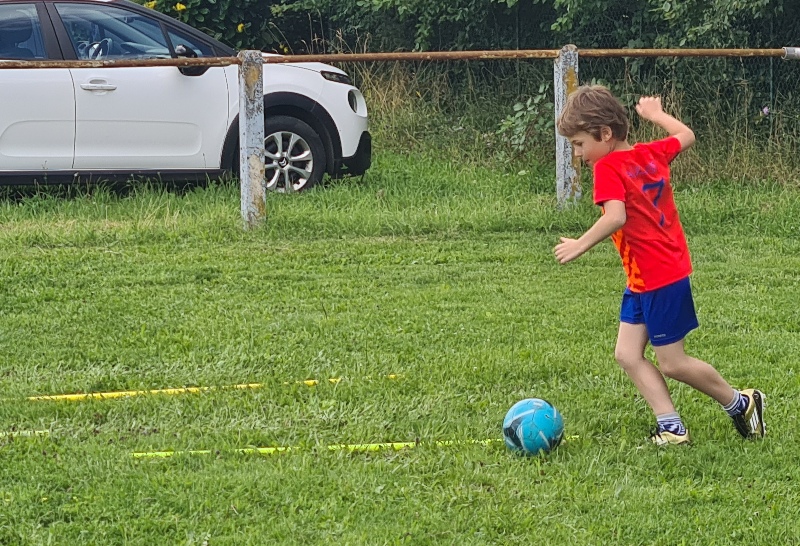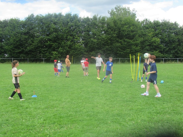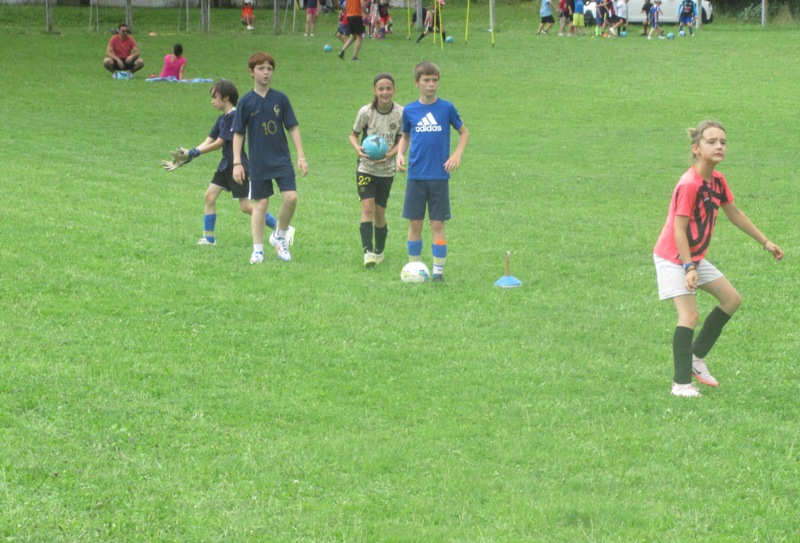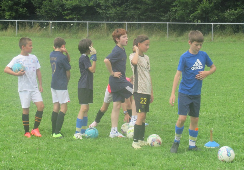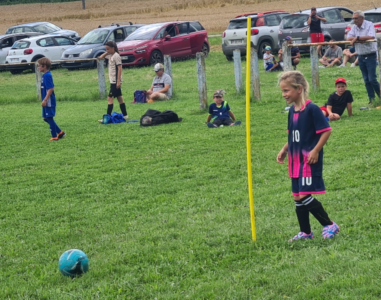 Du jamais vu au stade de la Vallée à Gissey ! Une quarantaine de jeunes garçons et filles sont venu assister à cette première des vacanes-foot version 2024, pulvérisant ainsi le précédent record qui était à 28. Beaucoup de jeunes ont ainsi fait leurs premiers pas découvrant ainsi avec bonheur les plaisirs du ballon rond. Après quelques exercices ludiques pour se familiariser avec cette petite balle magique, l’après midi c’est logiquement terminé par de petits matchs très attendus et très disputés. Sylvain et Rémi avec les « petits« , Clément et Jérôme avec les « grands » ont été heureux d’encadrer cette jeunesse débordante d’énergie. Il fallait bien un petit goûter pour apaiser tout ce petit monde après l’effort. Le rendez-vous est déjà pris pour samedi prochain !