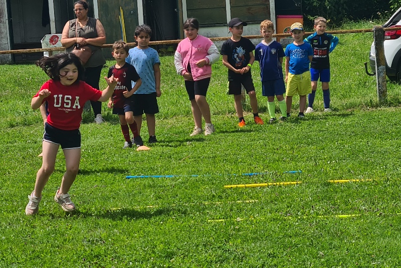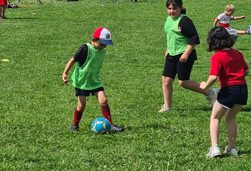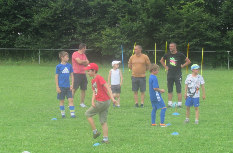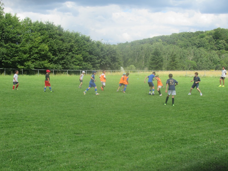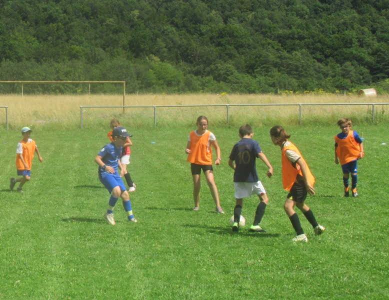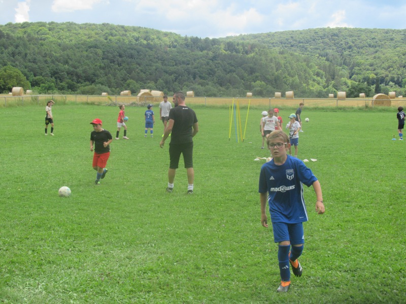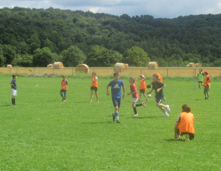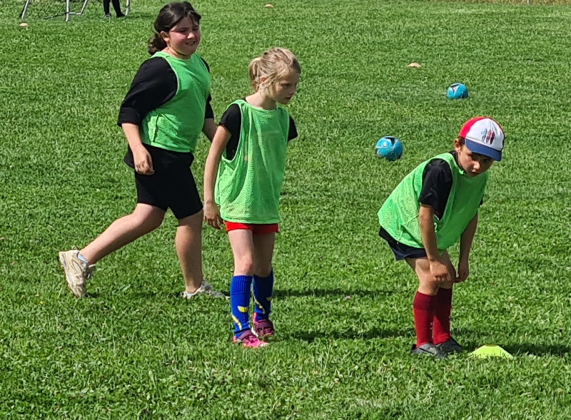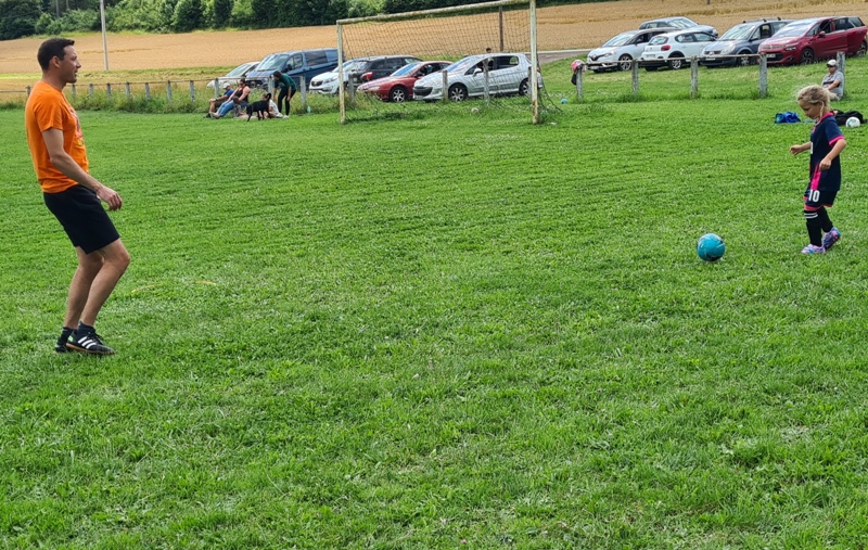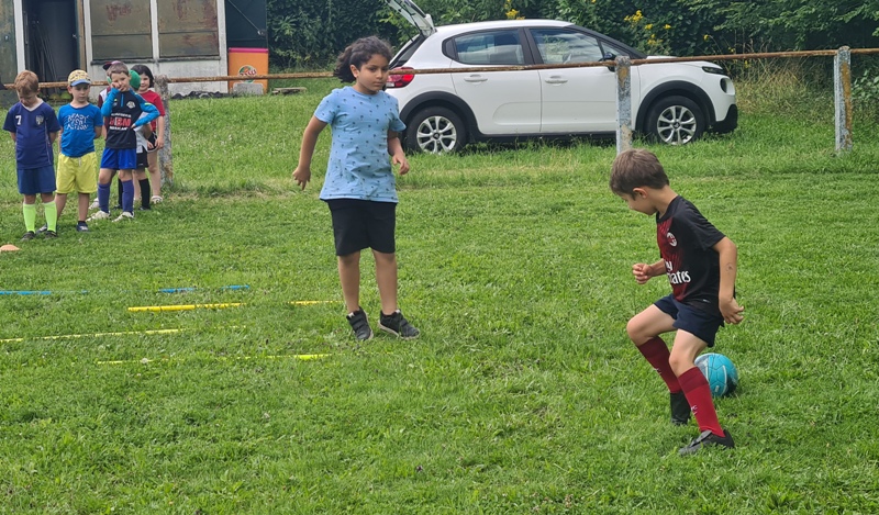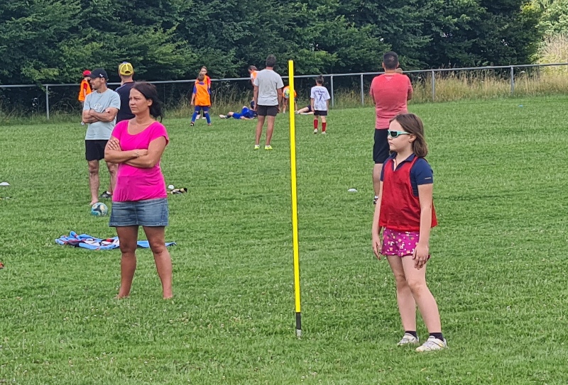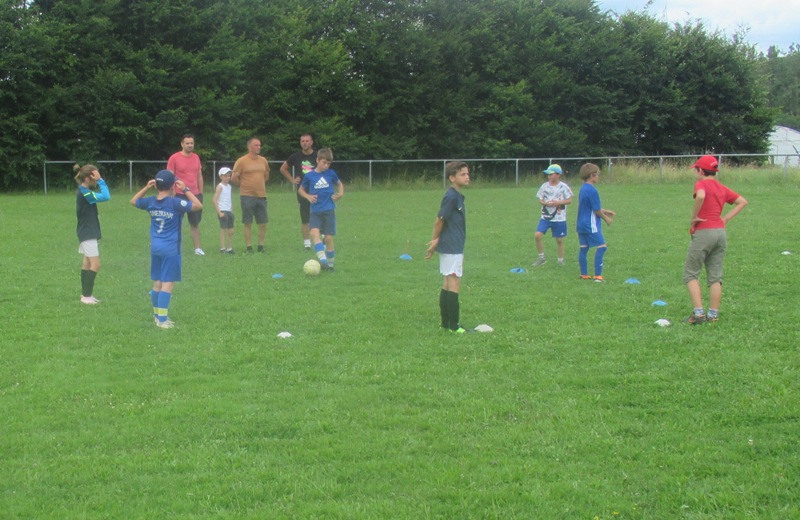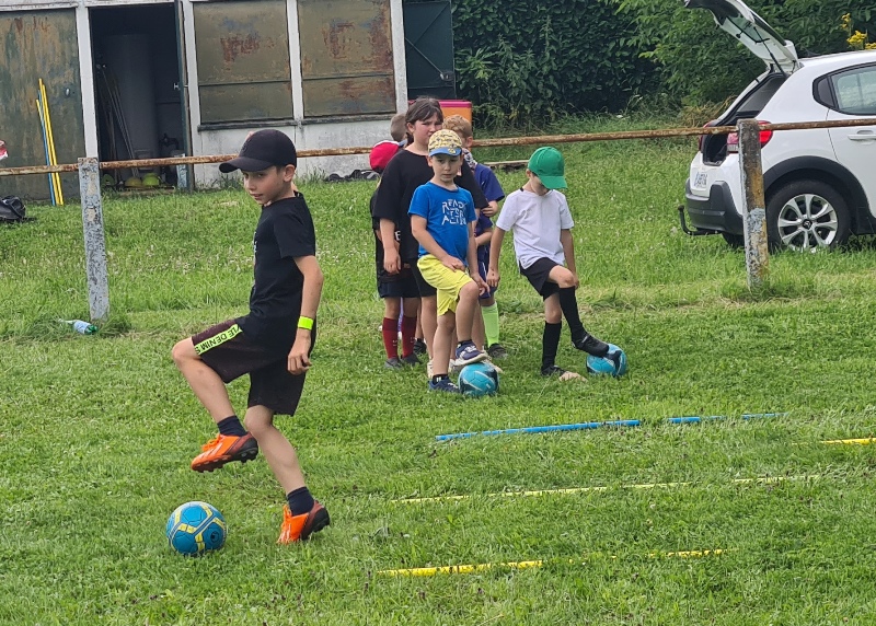Du jamais vu au stade de la Vallée à Gissey ! Une quarantaine de jeunes garçons et filles sont venu assister à cette première des vacanes-foot version 2024, pulvérisant ainsi le précédent record qui était à 28. Beaucoup de jeunes ont ainsi fait leurs premiers pas découvrant ainsi avec bonheur les plaisirs du ballon rond. Après quelques exercices ludiques pour se familiariser avec cette petite balle magique, l’après midi c’est logiquement terminé par de petits matchs très attendus et très disputés. Sylvain et Rémi avec les « petits« , Clément et Jérôme avec les « grands » ont été heureux d’encadrer cette jeunesse débordante d’énergie. Il fallait bien un petit goûter pour apaiser tout ce petit monde après l’effort. Le rendez-vous est déjà pris pour samedi prochain !
