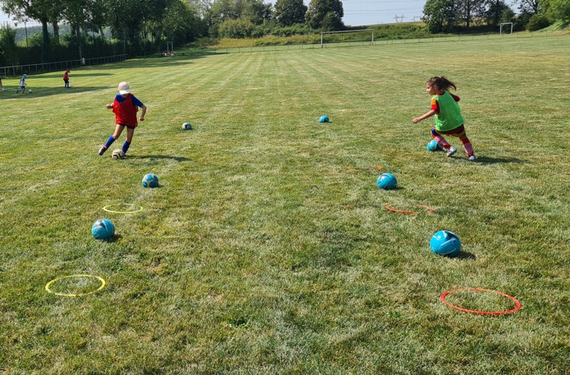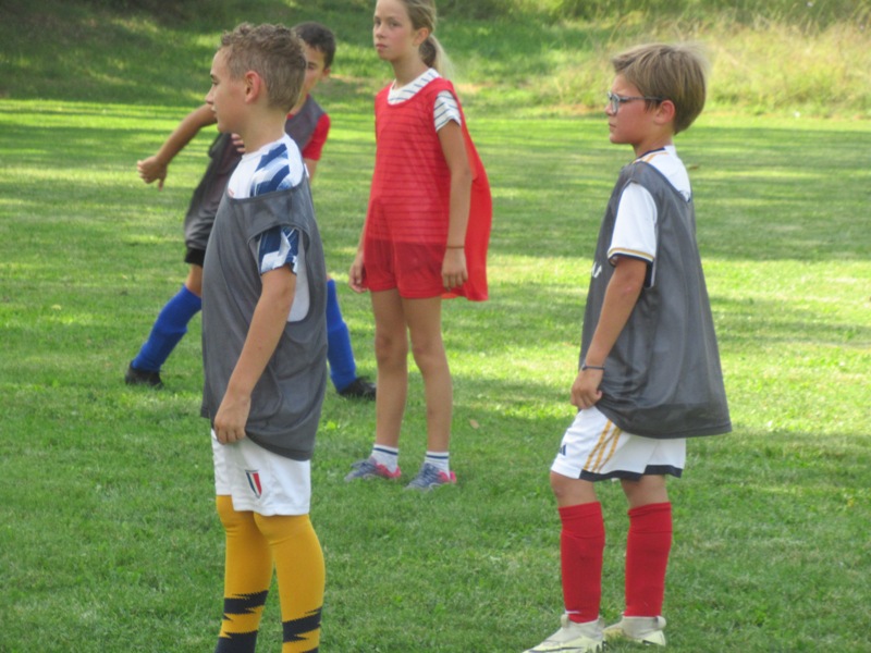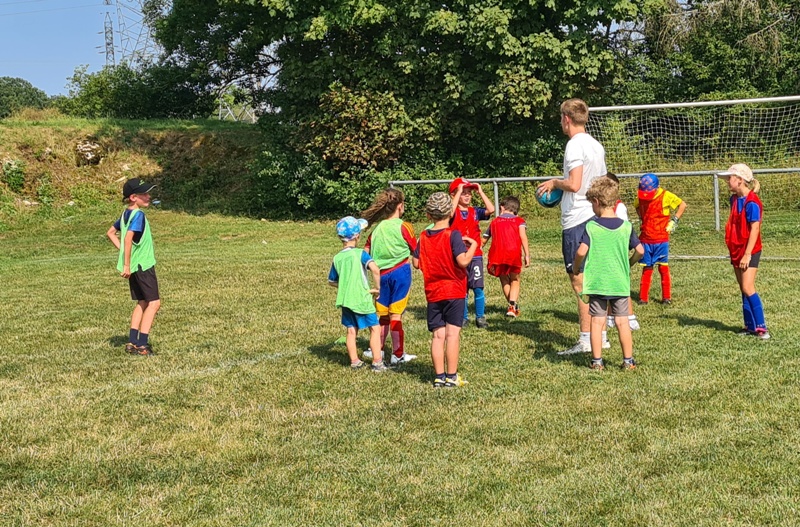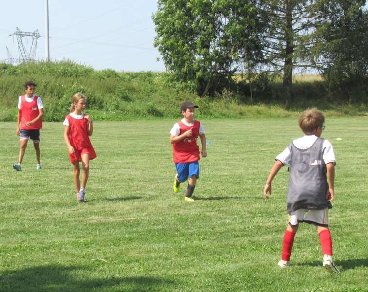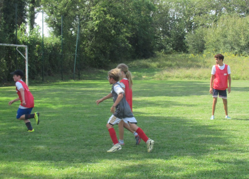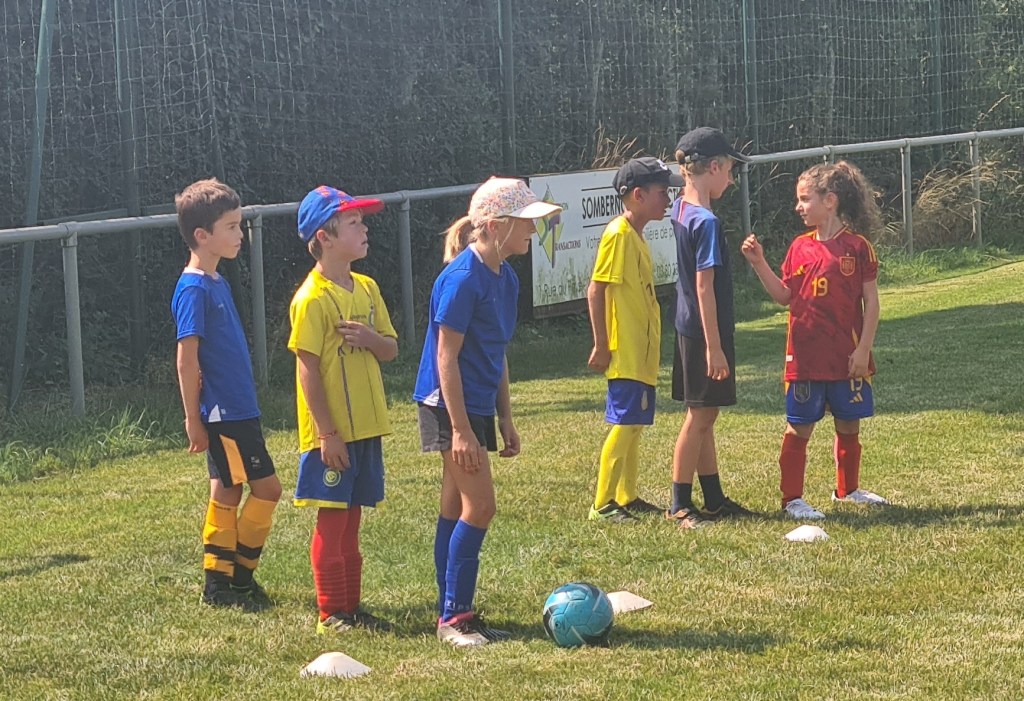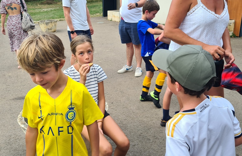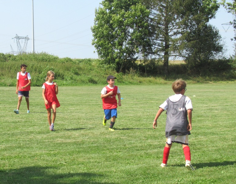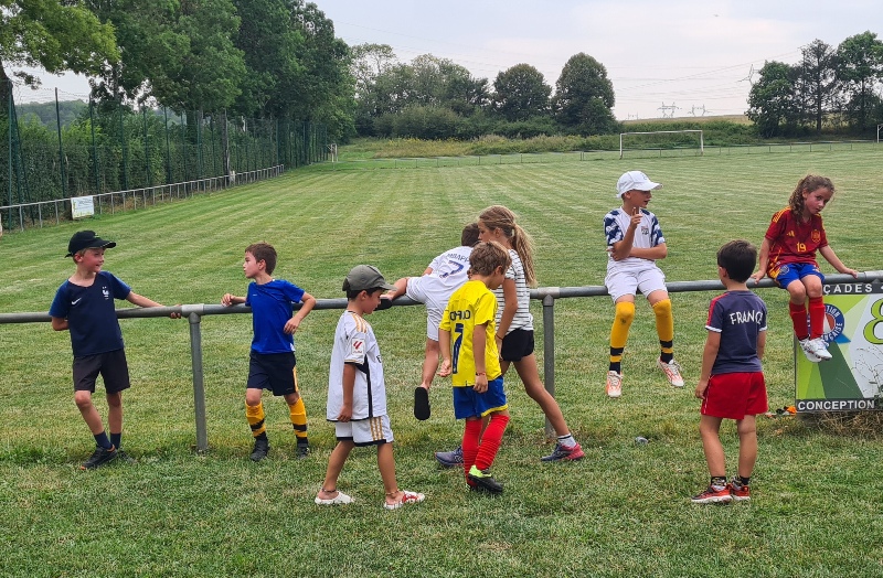 La rentrée scolaire approchant à grands pas, nos petits jeunes en profitent encore autant qu’ils le peuvent pour jouer au foot avec leurs copains. Avec les vacances, l’effectif change constamment mais il y a toujours au moins une vingtaine d’enfants présents. Des petits jeux ludiques sont au programme pour mobiliser les troupes pour le « big match » !
