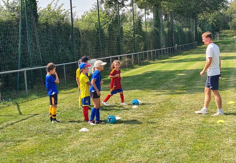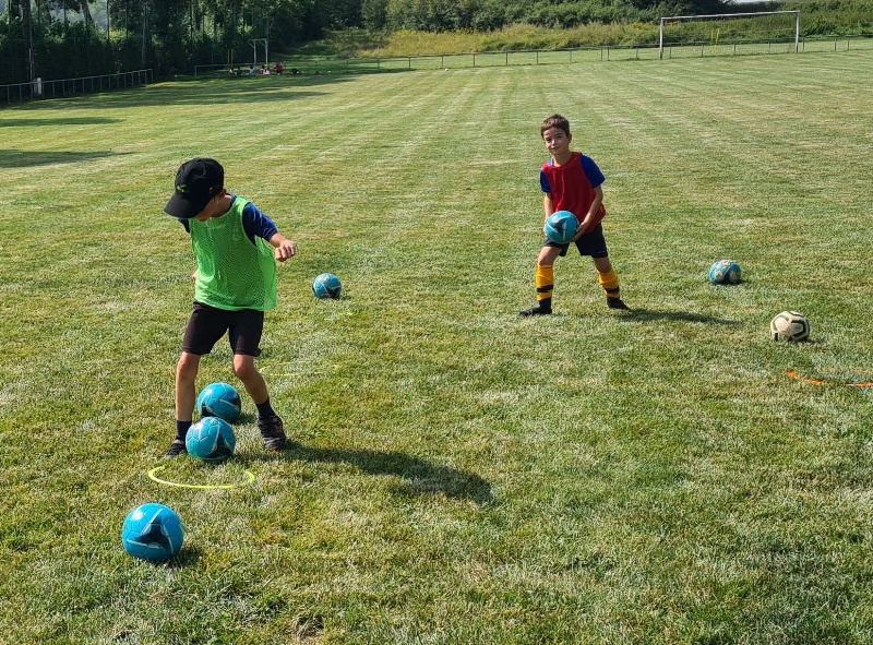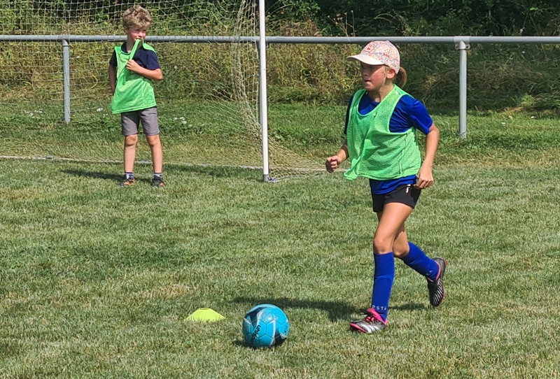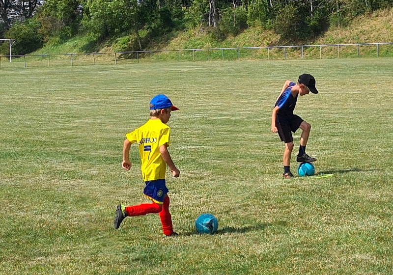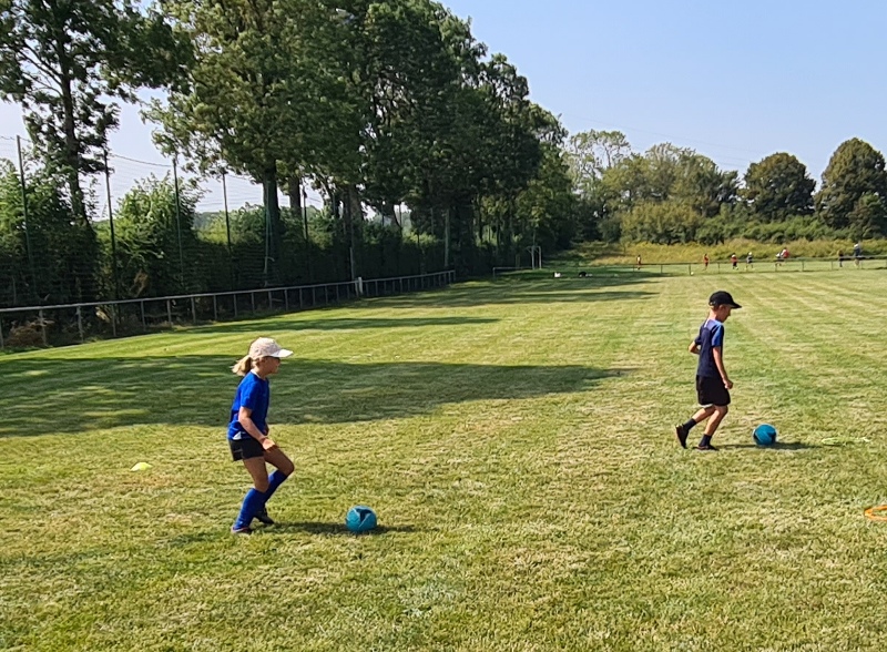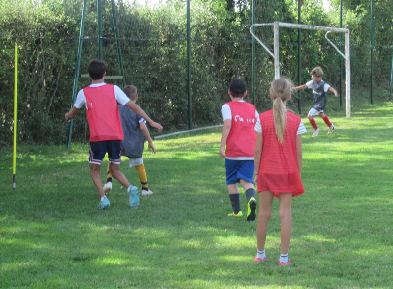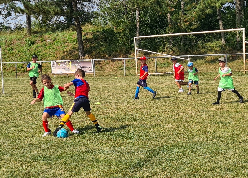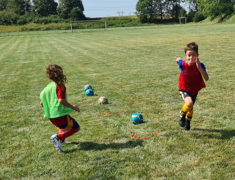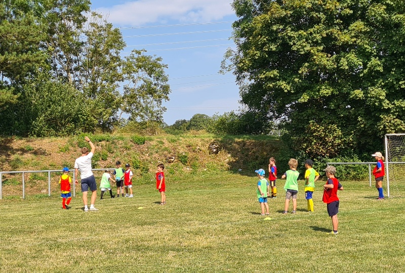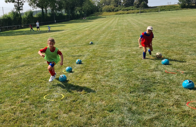 La rentrée scolaire approchant à grands pas, nos petits jeunes en profitent encore autant qu’ils le peuvent pour jouer au foot avec leurs copains. Avec les vacances, l’effectif change constamment mais il y a toujours au moins une vingtaine d’enfants présents. Des petits jeux ludiques sont au programme pour mobiliser les troupes pour le « big match » !
