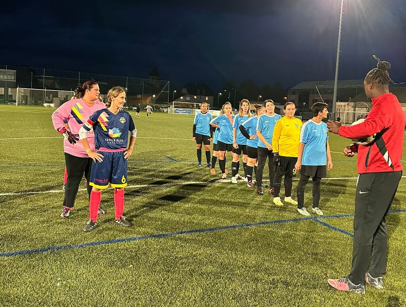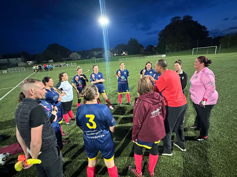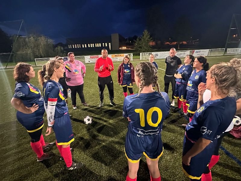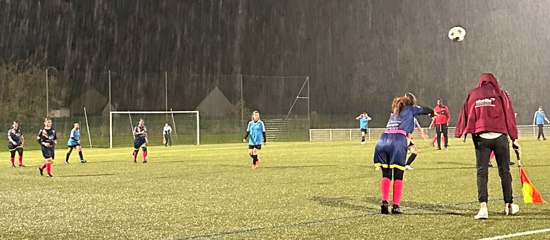 Les filles entament bien leur match et arrivent à produire un peu de jeu pendant les vingt premières minutes. Mais pas à déclencher les attaques qu’il faudrait. Les locales, elles, vont profiter d’un gros moment de flottement pour inscrire trois buts avant la mi-temps. Après une pause et un essai de recadrage tactique, l’équipe continue à trépigner. Le cœur du jeu est trop souvent libre pour les adversaires qui vont encore marquer deux buts, avant que les filles n’arrivent à trouver des solutions dans l’entre jeu et enfin s’offrir un but qui sauvera l’honneur. But inscrit par Aline. L’adversaire du jour n’était pourtant pas si fort mais de la concentration dans l’entre jeu est nécessaire pour arriver à sortir un match entier. Le travail à l’entraînement finira de toute façon par payer et il faut continuer à ne rien lâcher.