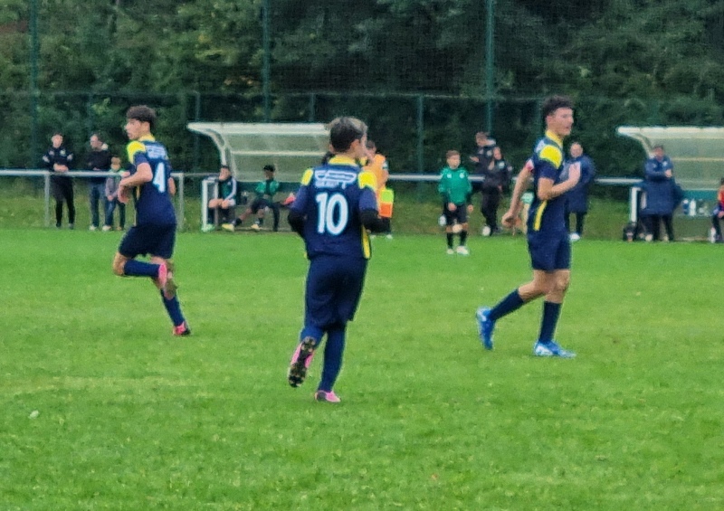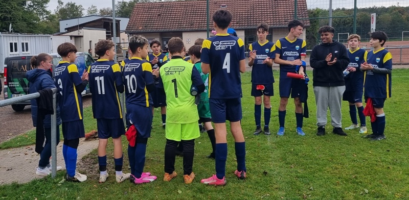 Les partenaires de Maxime nous ont gratifié d’une très belle première période qui s’est achevée sur le score de 7 à 1 avec trois buts dans les dix premières minutes. Le ballon a très bien circulé, les côtés bien utilisés. Jephthée a été un très précieux point d’appui pour orienter les attaques. Ce dont a bien profité son entourage. Sept buts avec six buteurs différents, c’est la preuve que le jeu a été très collectif ! La deuxième mi-temps a logiquement été un peu moins emballante. Mais les occasions ont encore été très nombreuses même si seulement deux nouveaux buts seront inscrits. Une première victoire qui vient récompenser tous les efforts fait jusque là. BRAVO !