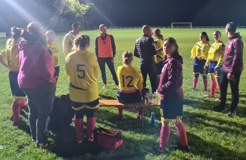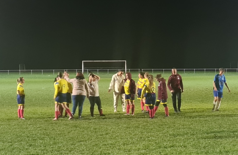 Les filles du FCSG ont subi la loi de leurs voisines polliennes. Même si les visiteuses ont rapidement ouvert le score, les jaunes, très actives, ont eu du répondant. Aline, très entreprenante sur son côté, égalise dans un premier temps puis donne l’avantage au FCSG. Pouilly joue les contres à fond et inverse la tendance pour mener 5 à 2. Juste avant la pause, les jaunes se relancent avec un but consécutif à un cafouillage suite à un corner. Auteures d’une première période très aboutie, ce score défavorable ne reflète pas leur bonne prestation. Pouilly a été d’une efficacité chirurgicale face au but et leur gardienne a bien tenu la baraque. Malheureusement, en seconde période, Pouilly prend les choses en main et le FCSG subit des attaques tranchantes qui leur permettent de marquer trois nouveaux buts. Mais les jaunes ne baisseront jamais les bras et Alice est à la conclusion d’une belle attaque pour inscrire le dernier but du match. Dommage que leurs efforts n’aient pas été récompensés en première mi-temps.