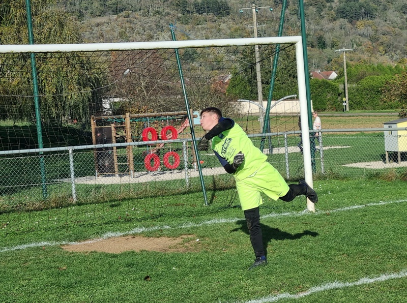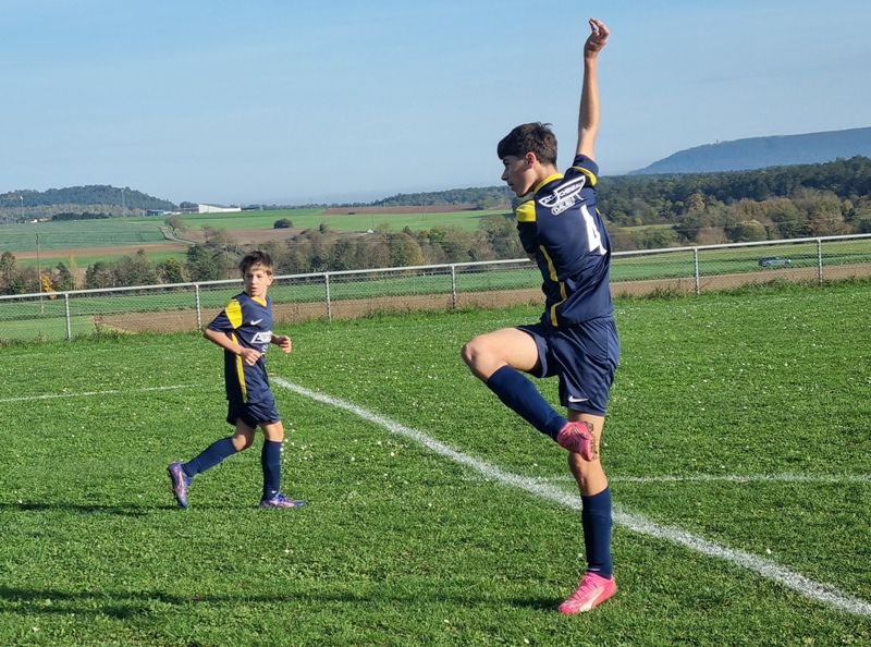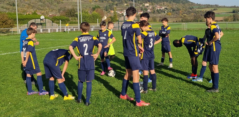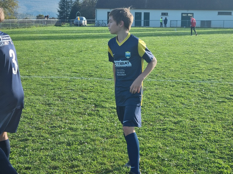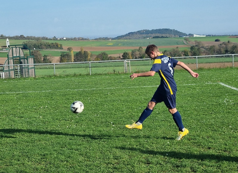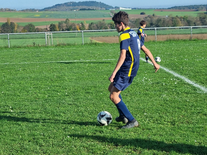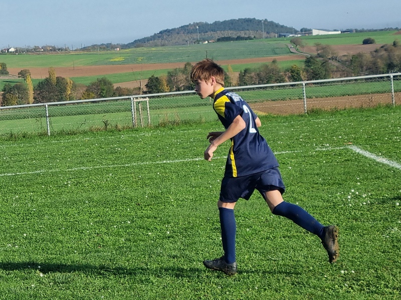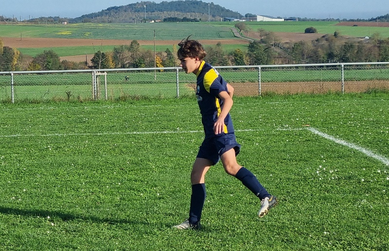 L’Entente se fait cueillir à froid et a deux buts de retard après dix minutes de jeu. C’est d’abord le 10 adverse qui transperce toute la défense sans être inquiété et vient battre Samuel de près, 0-1. Ensuite sur un corner mal dégagé, un attaquant d’UCCF a tout le temps de contrôler et armer une volée imparable, 0-2. L’Entente est aux abonnés absents dans les duels… On se remet progressivement dans le bon sens, et Léandre est tout près de conclure. Maxime perce et vient buter sur le dernier rideau adverse. Clément multiplie des solutions sur son côté. Juste avant la pause, Jephthé déboule sur la droite et adresse un centre parfait pour Léandre qui réduit l’écart, 1-2. On retrouve des couleurs. Dix minutes après la reprise, Loris égalise de la tête sur corner, 2-2. Lucas s’emploie sur son côté gauche. La délivrance vient de Jephthé en fin de match en devançant tout le monde sur une balle en profondeur, 3-2. Marius et Noé verrouillent et l’Entente l’emporte, malgré son début de match manqué.
