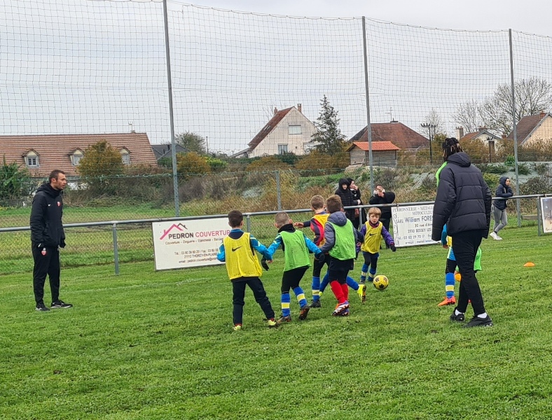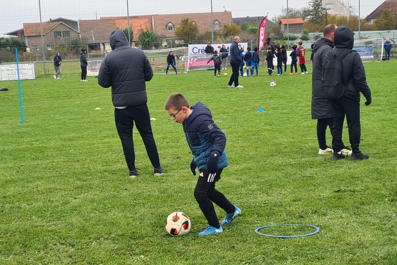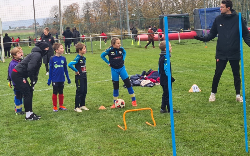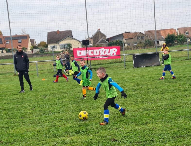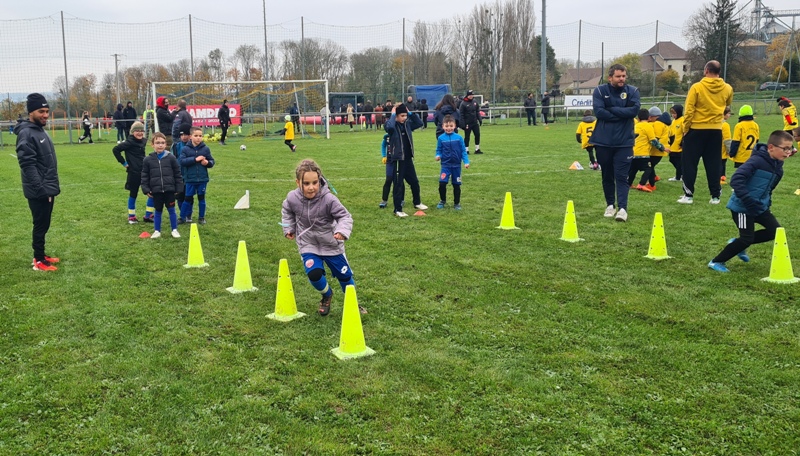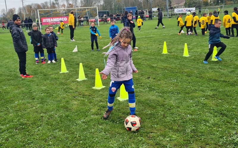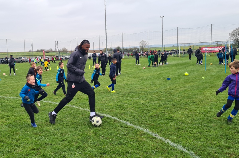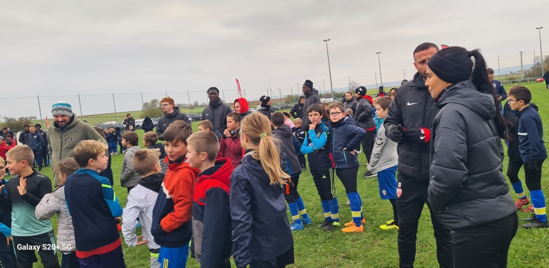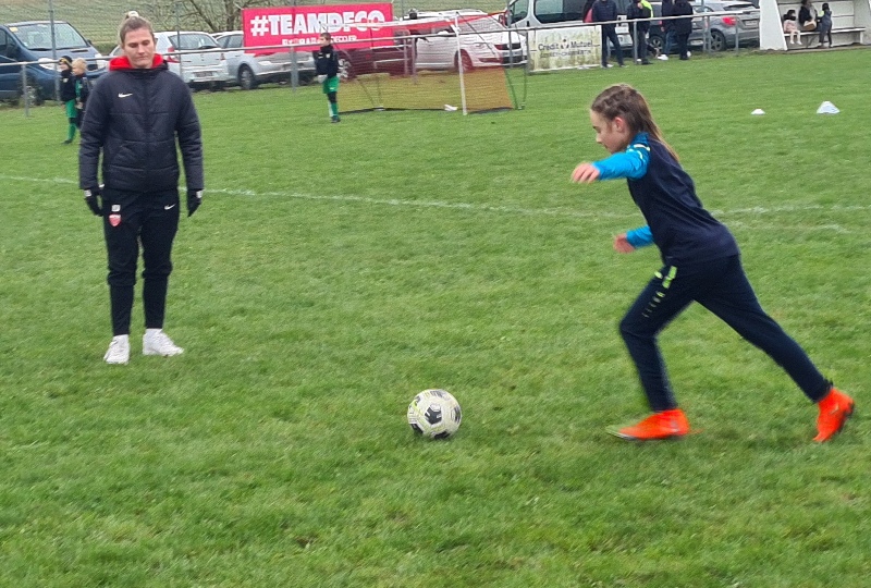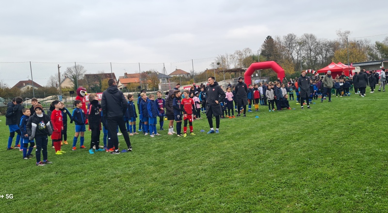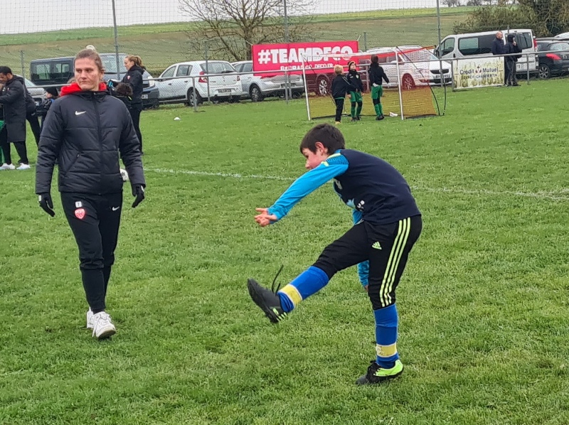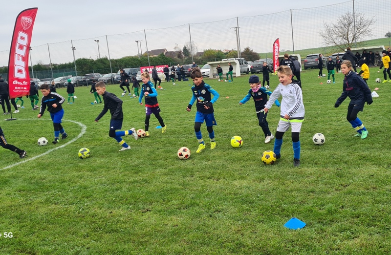 Sur invitation du club de Saulon la Chapelle (merci Victoire), les jeunes U9 (21 joueurs) et U11 (25 joueurs) du Football Club de Sombernon-Gissey ont participé à cette nouvelle édition du DFCO Tour. Plus de 250 jeunes étaient présents à ce rendez-vous. Le principe : le DFCO déplace éducateurs, joueurs de National et joueuses de D1 Arkema pour encadrer une séance d’entraînement ludique. Conduite de balle, séance de frappes, tir avec un radar (bravo à Nolhan et son missile à 66km/h !), des oppositions. La séance s’est terminée par un concours de jonglages. Un grand bravo à Eloïse, Hugo et Sloan qui en ont été finalistes. A l’issue de l’entraînement, tout l’effectif du DFCO s’est prêté à une agréable une séance de dédicaces et photos pour les enfants. Un superbe moment qui va rester dans les mémoires !