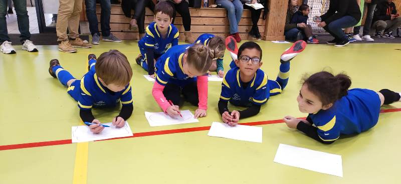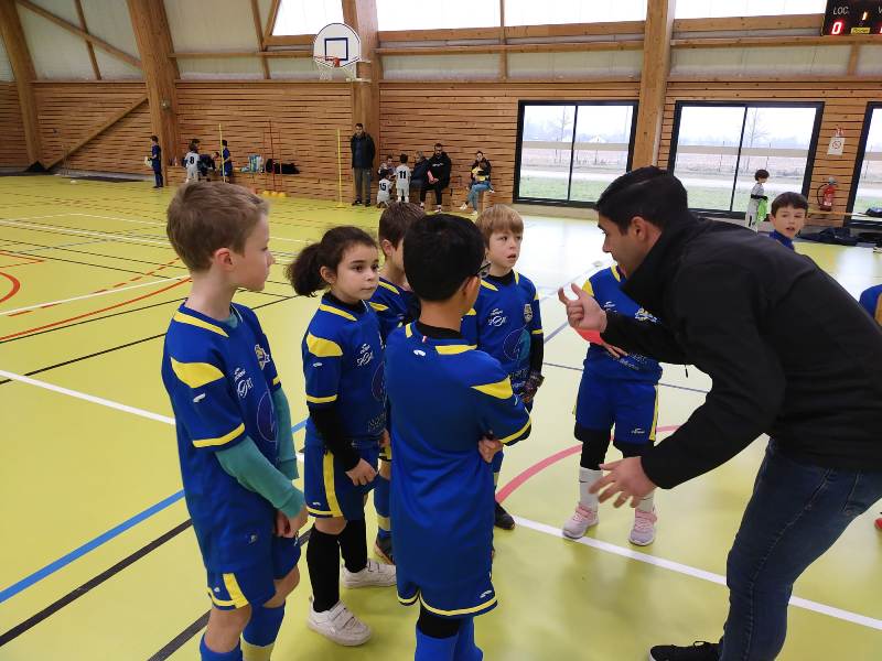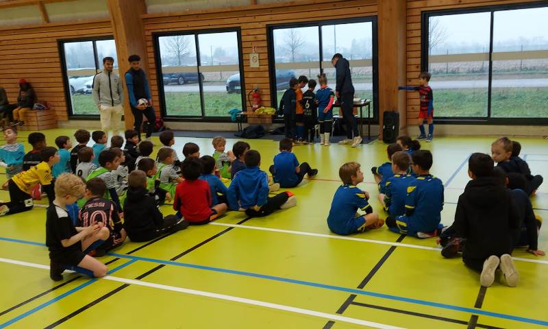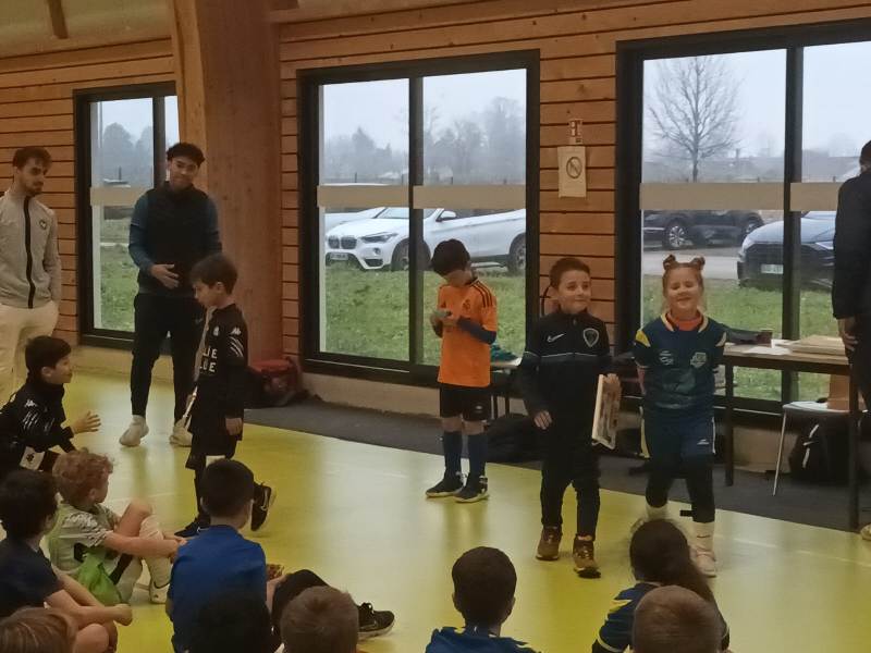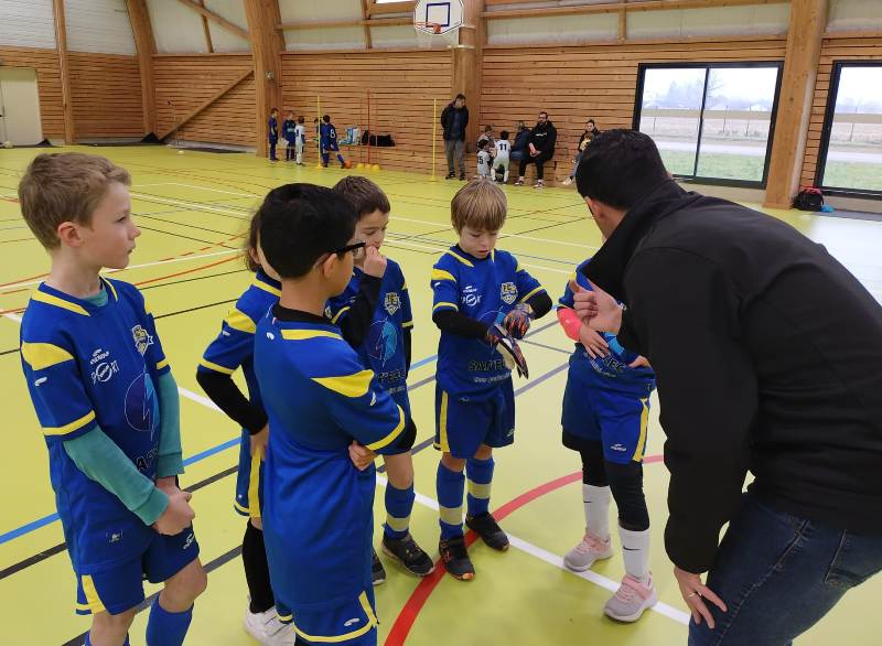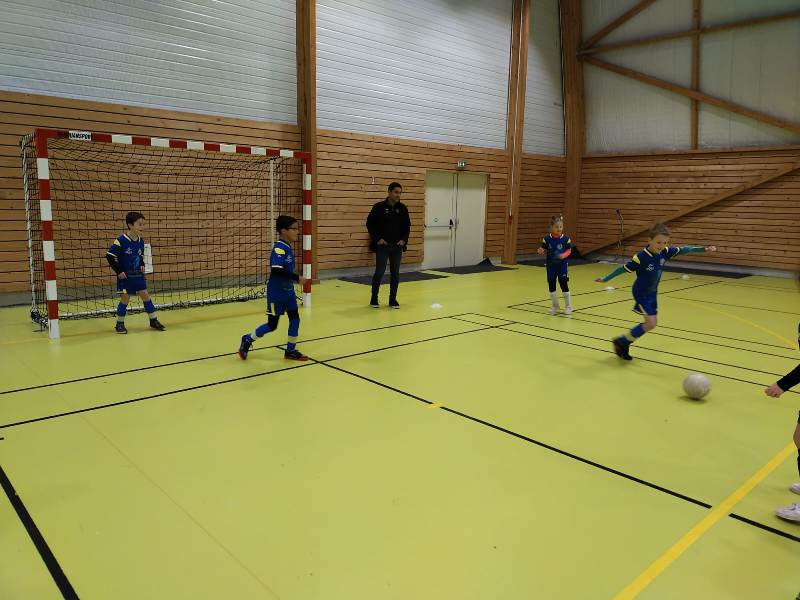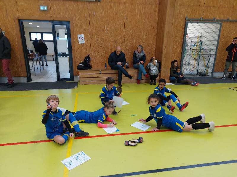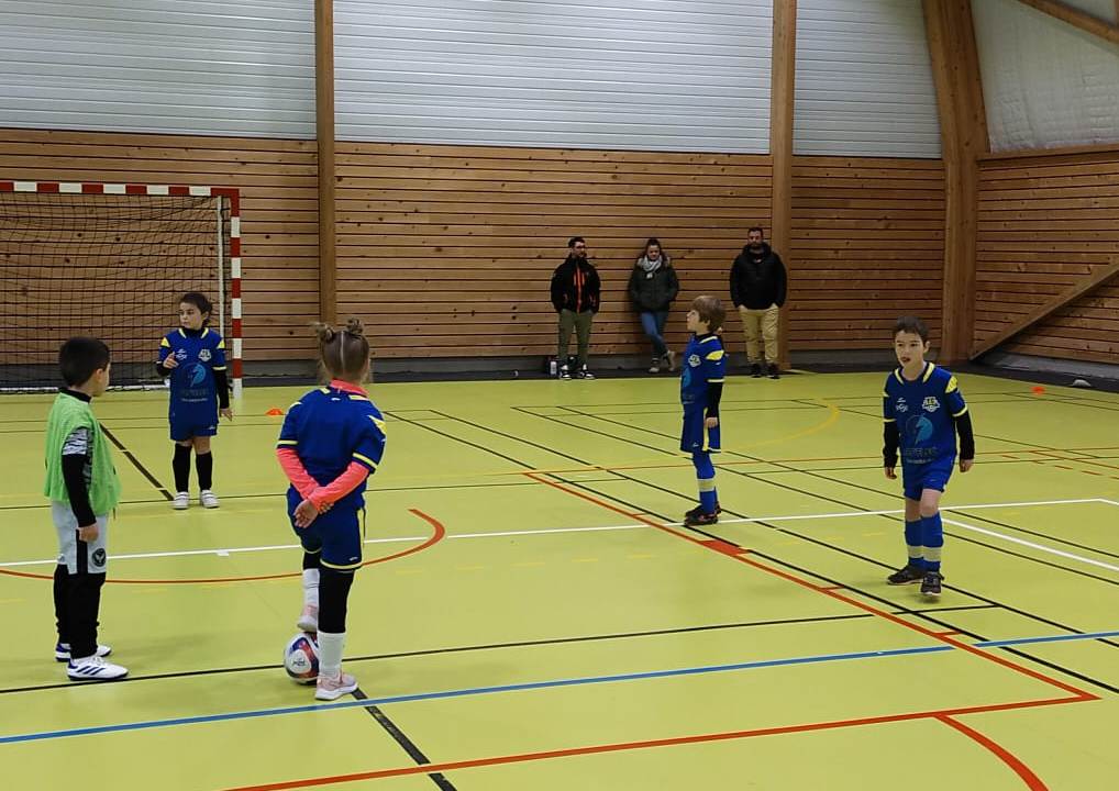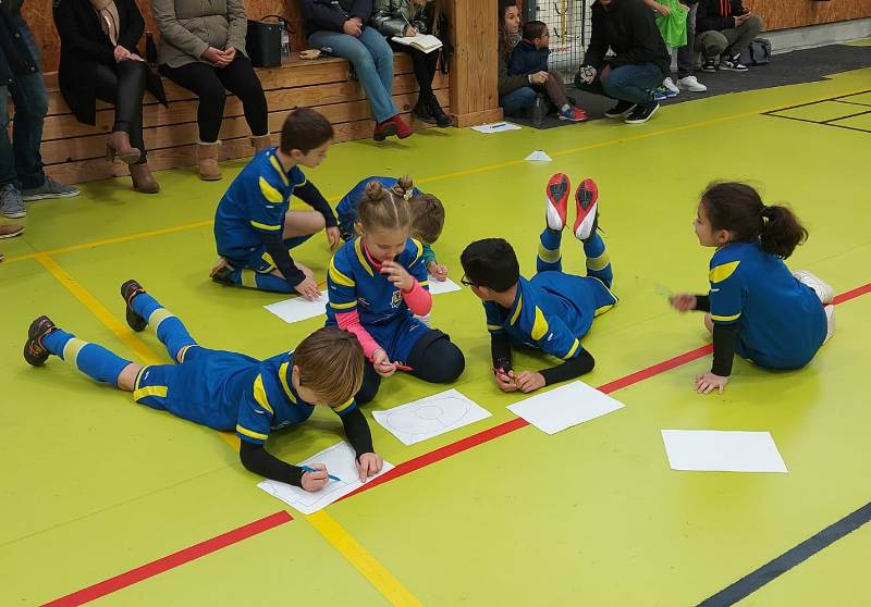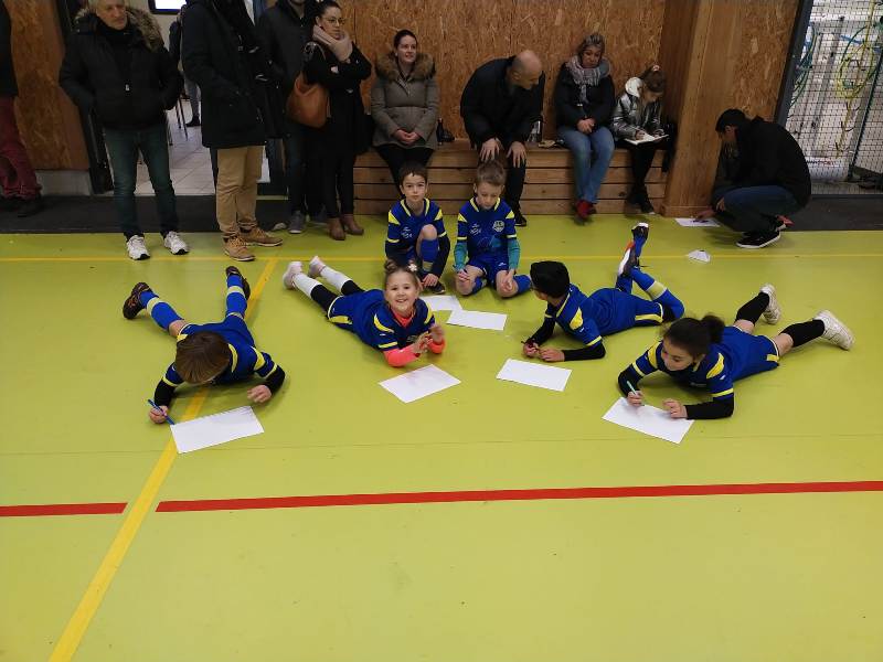 Dernier plateau avant une trêve de Noël bien méritée. Le FSCG s’est déplacé avec une équipe de 6 joueurs pour aller défier nos adversaires du jour au gymnase de Saint-Julien. Un format inconnu de nos jeunes pousses puisque 3 joueurs seulement sur le terrain + un gardien. On a senti nos joueurs décontenancés et bien perdus. Oui en salle le ballon va très vite. Malgré les résultats un peu décevants, la bonne humeur et le plaisir de jouer étaient de la partie. Pour couronner cette belle après-midi, Iryna a remporté le concours dessin du jour sur le thème le Père Noël et les lutins jouent au foot.