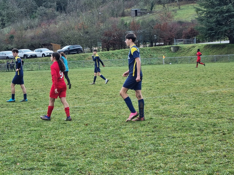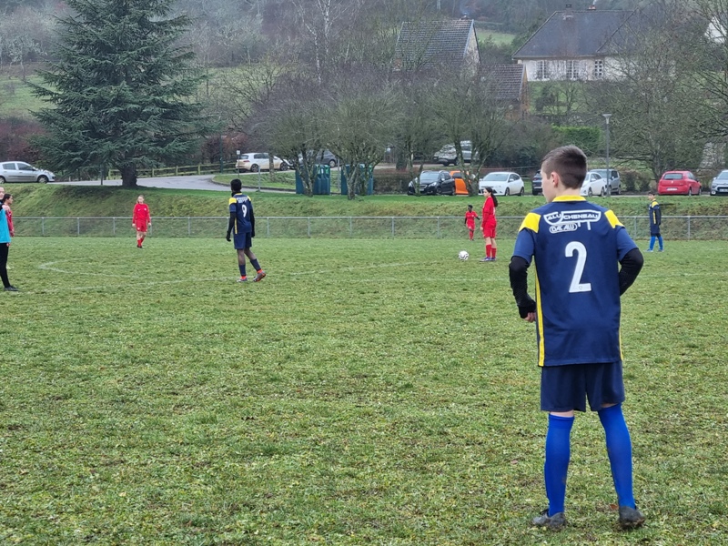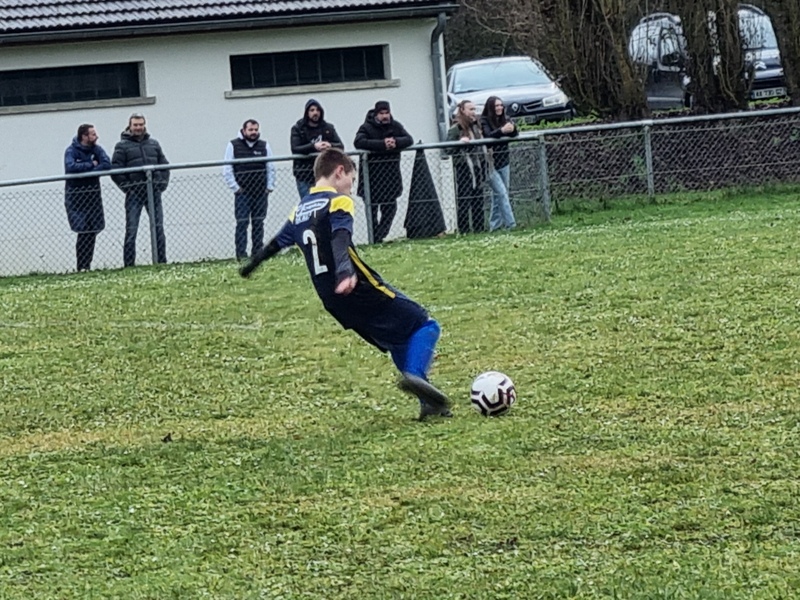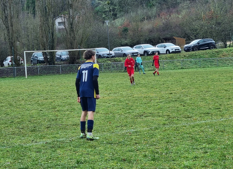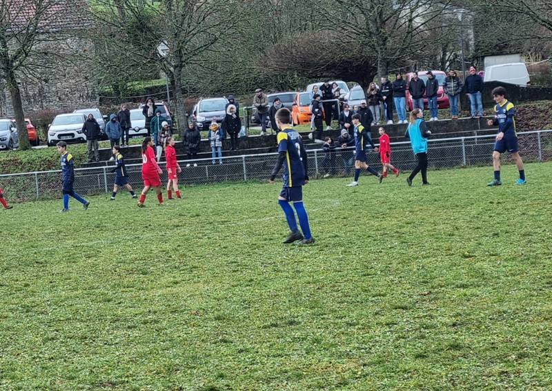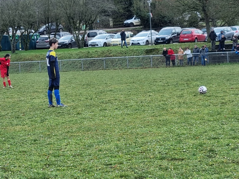 Les U15 ont validé leur ticket pour la D1 en battant les féminines du DFCO 3 à 0. L’Entente nous gratifie d’une première période très bien maîtrisée, avec de l’envie, du pressing et de l’efficacité. C’est d’abord Léandre, à l’affût dans la surface, qui ouvre le score, 1-0. L’Entente impose progressivement son rythme et cap’tain Max double la mise après une belle incursion dans la surface, 2-0. Les rouges tentent de réagir mais la défense maîtrise bien son sujet. Juste avant la pause, Marius inscrit un troisième but qui assomme définitivement les espoirs adverses, 3-0. On assiste à une deuxième période bien différente. Les visiteuses prennent alors le match en main. On est efficace en défense, Samuel n’est pas mis à contribution, mais le ballon ne quitte pas les pieds adverses. Les filles ne profiteront pas de leurs temps forts. L’Entente a bien quelques belles balles de contre mais elles sont mal gérées. Le DFCO aurait même pu trouver le chemin des filets, mais en voulant assurer le coup sur une balle qui allait rentrer, la frappe finit sur la transversale. Et c’est dans une superbe ambiance (MERCI les jeunes) que l’Entente remporte cette ultime rencontre qui la mène en D1 !