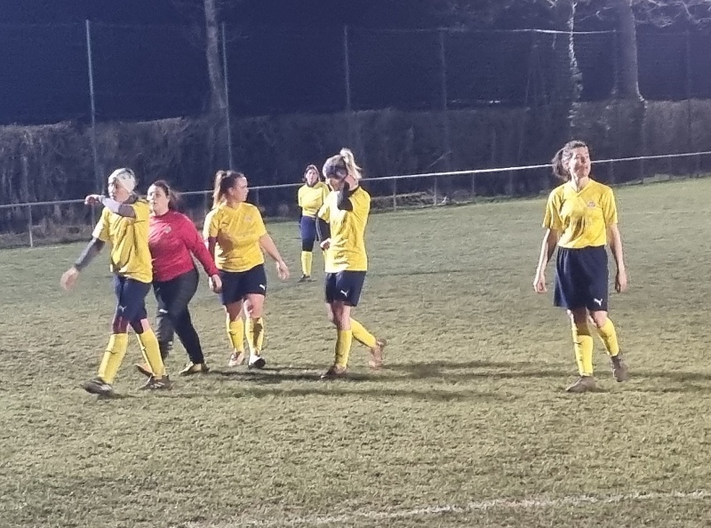 Deuxième succès de la saison pour les féminines, mais qu’il a été dur à aller chercher. Très bonne entame de match avec Aline qui met le feu dans la défense adverse mais bute à chaque fois sur la gardienne adverse. Sur leur première attaque, les visiteuses ouvrent le score, 0-1. Les filles égalisent rapidement grâce à un corner direct de Julia, 1-1. Peu de temps après, elles prennent même l’avantage par Julia d’une frappe lointaine, 2-1. Mais il y a un peu de fébrilité dans les rangs. Et elles concèdent l’égalisation, 2-2. Mais juste avant la pause, une frappe sèche de Virginie leur permet de repasser devant, 3-2. C’est un peu du houra football. Tout peut arriver. Les visiteuses profitent d’une baisse de concentration défensive pour égaliser à nouveau, 3-3. Tout est à refaire. Ca peut basculer d’un côté comme de l’autre. Julian sur coup franc, fait pencher la balance du bon côté, 4-3. En toute fin de match, Anne-Lise seule au deuxième poteau n’a plus qu’à pousser au fond du but un corner de sa capitaine, 5-3. En toute fin de match, une frappe d’Aline repoussée par la gardienne est reprise à bout portant par Alice pour asseoir définitivement un succès qui fait du bien au moral des troupes, notamment pour Natalia de retour après une absence d’un an suite à une longue blessure. ! Succès dédié aussi à Colette, qui vient de se faire opérer. Le club souhaite aussi un prompt rétablissement à une joueuse de MPL victime d’un malaise en fin de rencontre.