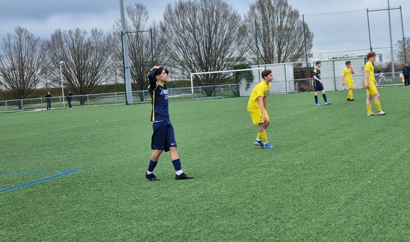 L’apprentissage de la D1 se poursuit, mais Dieu que c’est frustrant. On fait jeu égal avec l’adversaire mais cette fois, le petit détail fait basculer la rencontre du mauvais côté. Une longue ouverture de Maxime par dessus la défense permet à Jephthé de la prendre de vitesse et de lober le gardien venu à sa rencontre, 1-0. Deux superbes arrêts de Samuel nous permettent de garder une longueur d’avance. Elle aurait pu être doublée par Loris qui se retrouve seul face à gardien mais n’assure pas sa frappe. Peu après le repos, Marsannay marque coup sur coup suite à des corners, 1-2. Léandro s’offre une superbe occaz, mais sa frappe échoue sur le poteau. Marsannay inscrit un troisième but d’une frappe puissante, 1-3. Dans les dernières minutes, Lucas claque le plus beau but du match d’une frappe enroulée des vingt mètres qui termine sa course pleine lucarne, 2-3. Des regrets, une fois de plus.