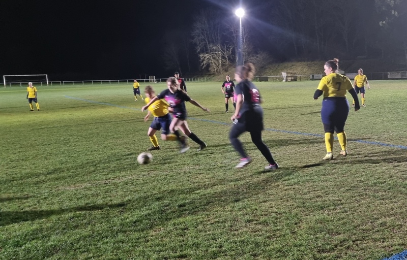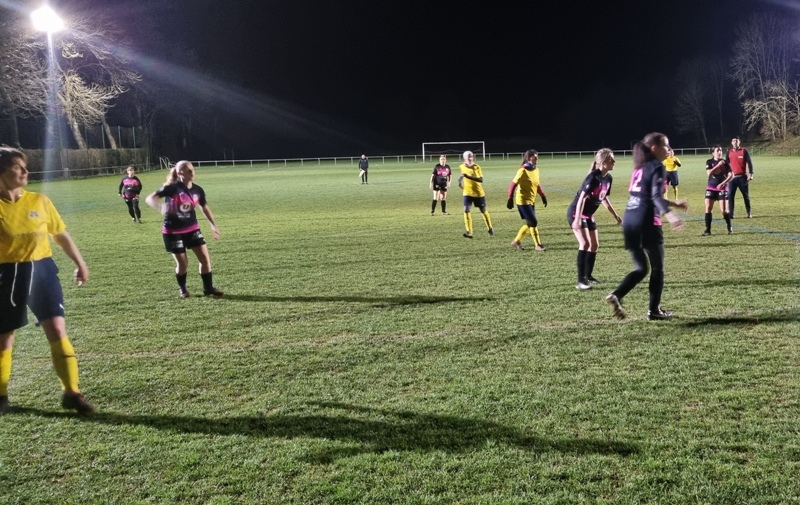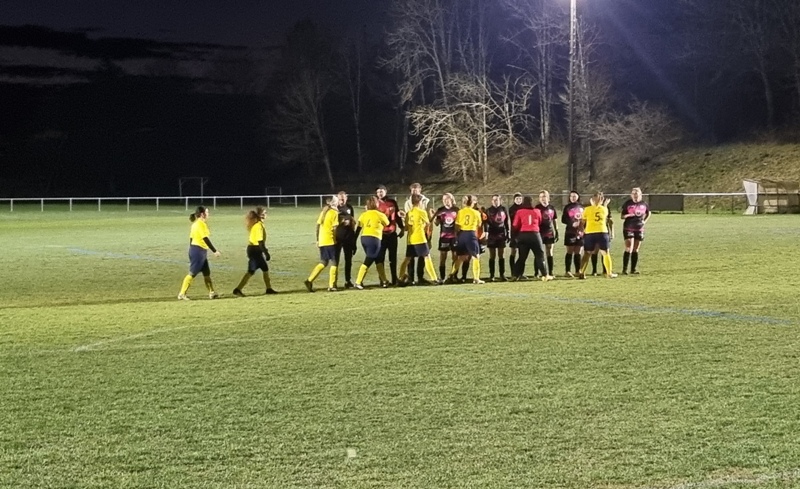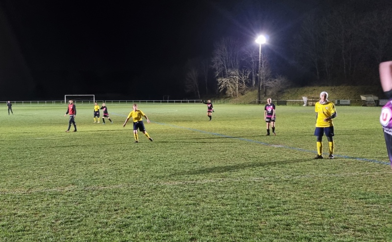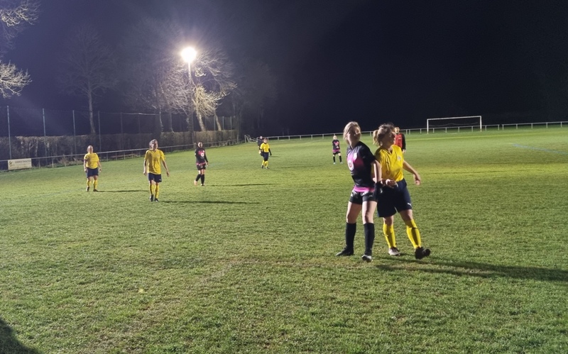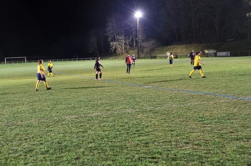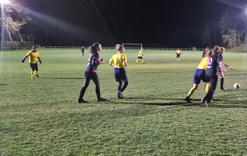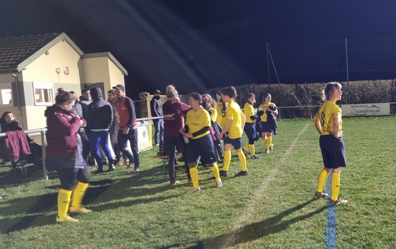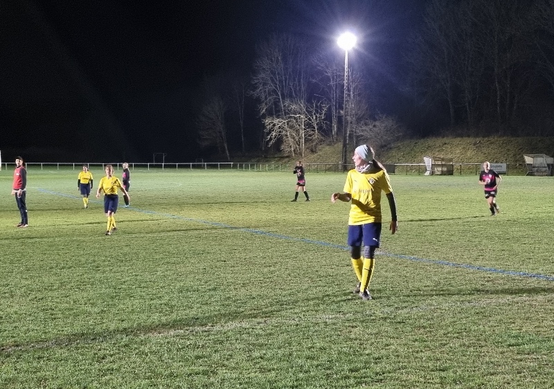 Face à une jeune équipe de St Rémy, les jaunes n’ont pas été récompensées de tous leurs efforts. En tout début de match, les visiteuses profitent d’un mauvais renvoi de la défense pour ouvrir le score d’un lob parfait, 0-1. Le jeu se met en place pour revenir. Amélie et Aline se créent des occasions, en vain. 0-1 à la pause. Bis répétita en seconde période. St Rémy double la marque d’entrée, 0-2. On court alors après le score. Gaëlle met le feu sur son côté. Ca pousse, ça pousse. Une frappe puissante d’Aline est détournée in extremis par la gardienne. Puis il y a toujours un pied pour contrer ou un petit manque de justesse technique pour convertir les occasions. En dehors des deux buts encaissés, Julie n’a eu aucun arrêt à faire. Les filles avaient à coeur d’offrir un succès à Colette venue les supporter depuis son fauteuil… Frustrant dira t-on !
