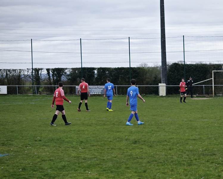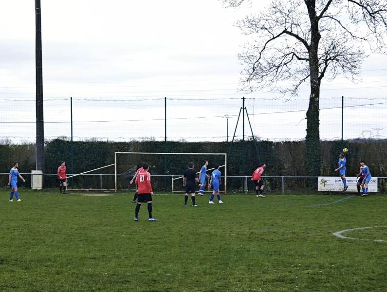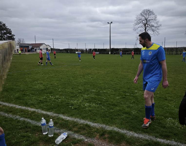 Première mi-temps équilibrée mais se sont les visiteurs qui ouvrent le score sur pénalty, 0-1. Les bleus ne baissent pas les bras et sur deux actions successives Jordan et Thomas se blessent assez sérieusement, et doivent quitter le terrain. Simon puis Clément les remplacent. La mi-temps arrive sur ce score. Retour de mi-temps avec une grosse envie de ne pas laisser ce match. Clément marque pour les bleus sur une passe de Hugo, 1-1. Les bleus en veulent encore et parviennent à doubler la mise par Clément sur un joli contrôle orienté qui élimine son adversaire direct avant d être précis, idéalement servi par Clément bis. Belle victoire sur ce match en retard qui permet de revenir à la 4ème place. Dimanche prochain on se doit d’ aller chercher les 3 points à domicile contre Lacanche. Bonne semaine à tous. Et bonne convalescence aux blessés , Jordan et Thomas.