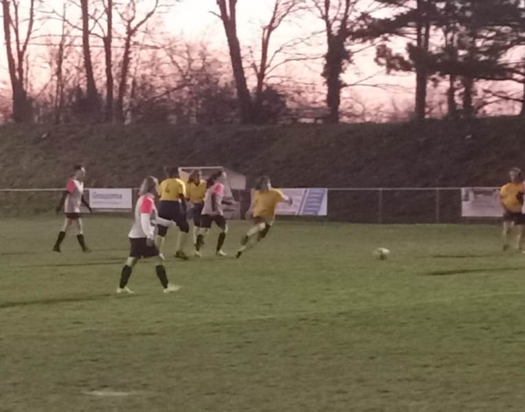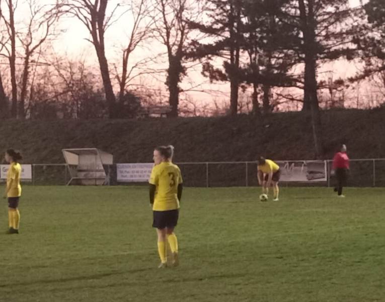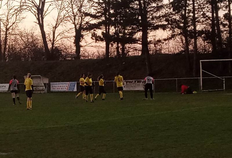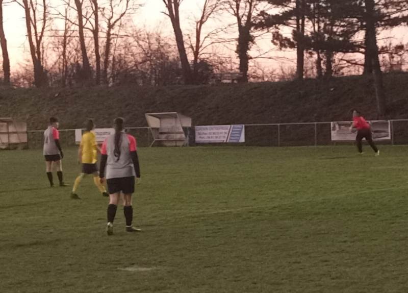 Les filles démarrent leur match de la plus belle des façons. Alice récupère le ballon très haut dans la moitié de terrain adverse et fixe la gardienne pour ouvrir le score à la 7ème, 1-0. S’en suivra une première mi-temps de haute voltée puisque nos adversaires du jour qui sont, rappelons-nous, les leaders du groupe en championnat et de loin ne sont pas là pour la figuration. Égalisation puis prise d’avantage par les adversaires, 1-2. Mais les filles ne baissent pas les bras et vont égaliser par Amélie en très grande forme, 2-2. Mais sur l’engagement Grésilles reprend l’avantage, 2 à 3 à la mi-temps. On se dit que c’est possible. Cependant, les adversaires prennent le jeu pour elles et sur des passes en une, deux touches nous dépassent et inscrivent trois autres buts, 2-6. Julia réduit le score sur pénalty. Fin 3-6.