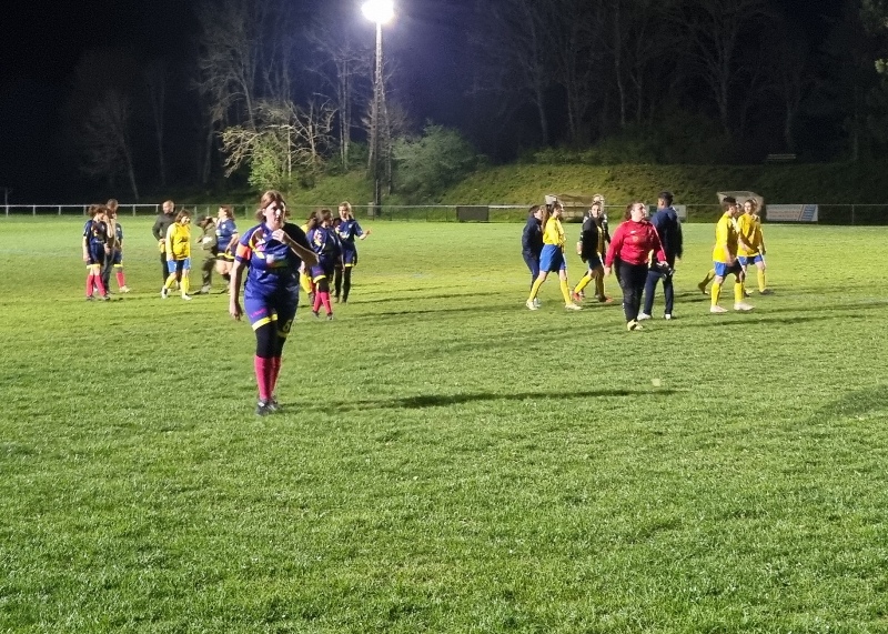 Les féminines concèdent une lourde défaite face à Marsannay, 0-6. Dès l’entame du match, les visiteuses imposent leur jeu et trouvent l’ouverture dans les premières minutes. Elles vont même récidiver quelques minutes plus tard. Les bleues souffrent et peinent à se montrer dangereuses. Marsannay déroule et enchaîne les buts pour arriver à la pause à 5-0. Le coach procède à un remaniement tactique à la pause. L’effet est immédiat. Elles arrivent à tenir le ballon plus haut grâce au passage d’Alice en milieu de terrain. Cette dernière parvient à bien servir Gaëlle qui manquera de réussite en plusieurs occasions. Autour de Lorane, la défense tient. Dans le cas contraire c’est Julie qui nous gratifie de beaux arrêts. On pense pouvoir tenir le nul en seconde période, mais Marsannay trouvera une nouvelle fois le chemin des filets sur pénalty pour une main dans la surface. 0-6 score final. C’était l’occasion pour Marlène d’effectuer son baptême du feu avec le maillot bleu.