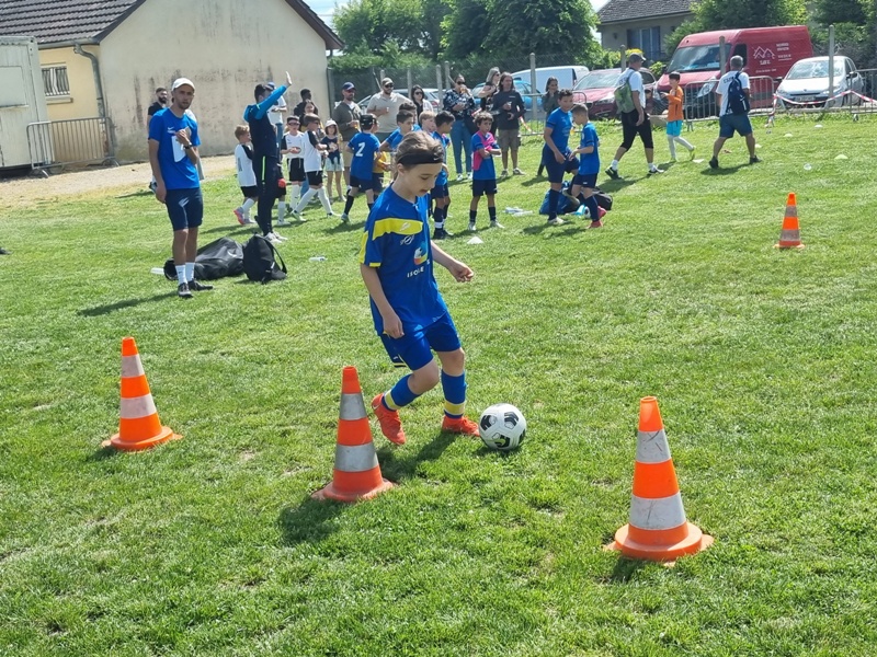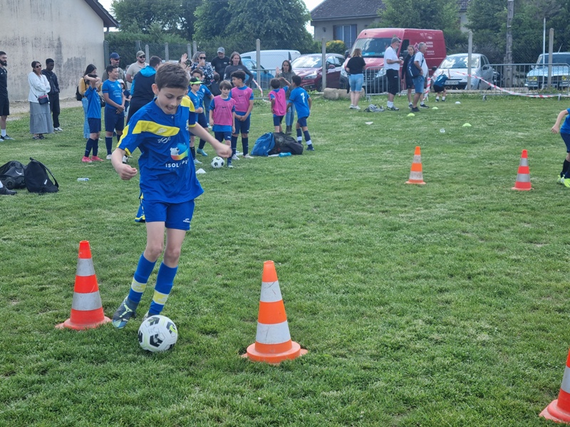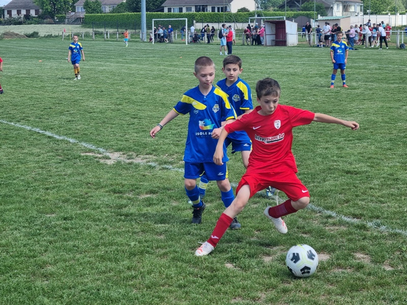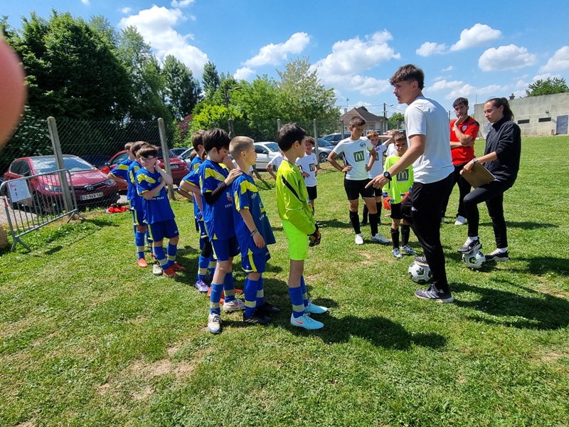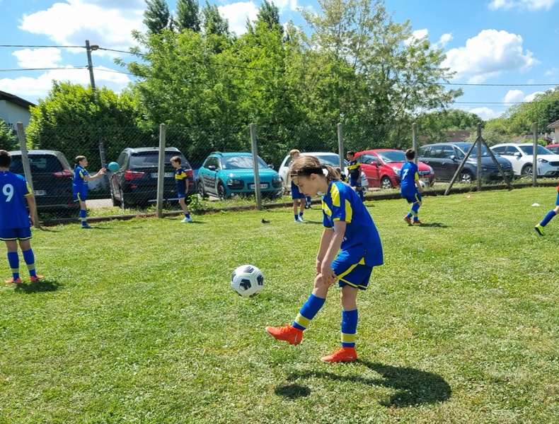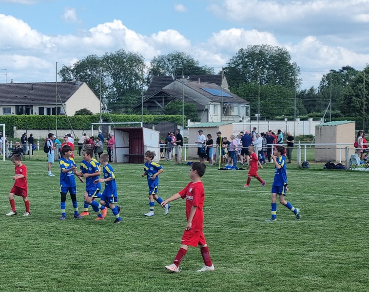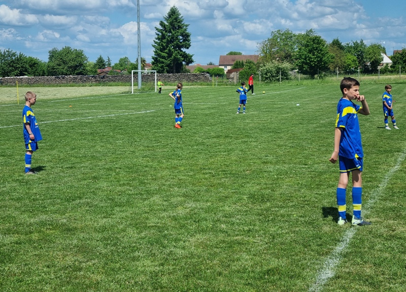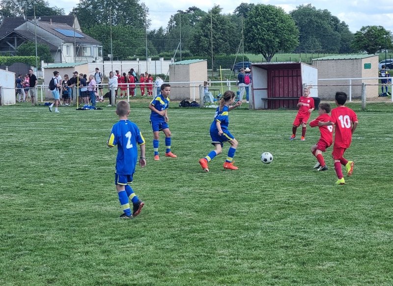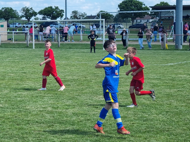 Pour leur première participation à la finale des défis organisée à St Jean de Losne par le district de Côte d’Or, nos petits bleus ont régalé……pendant les matchs. Plutôt discrets lors des défis (1 victoire sur 4 défis), ils ont pratiqué un beau jeu collectif pour lequel ils ont été récompensés par 3 victoires et 1 match nul. 1 seul but encaissé. Quand ils sont tous décidés (en même temps….), on peut voir de quoi ils sont capables.