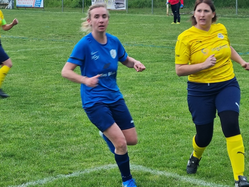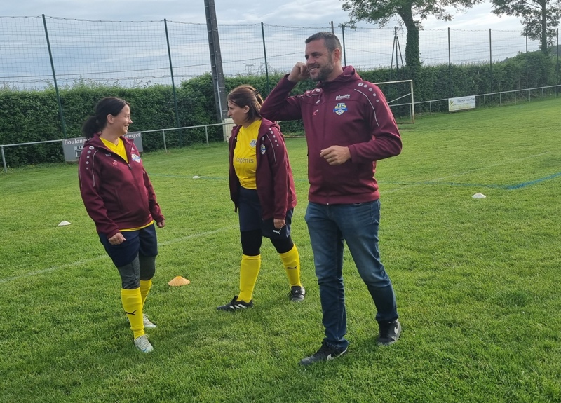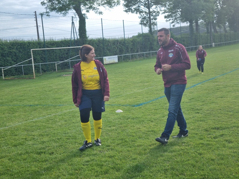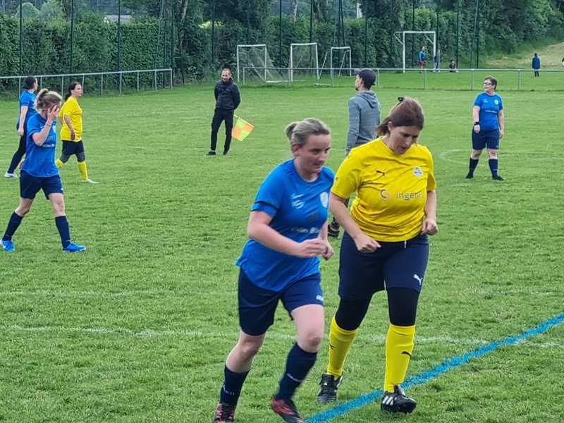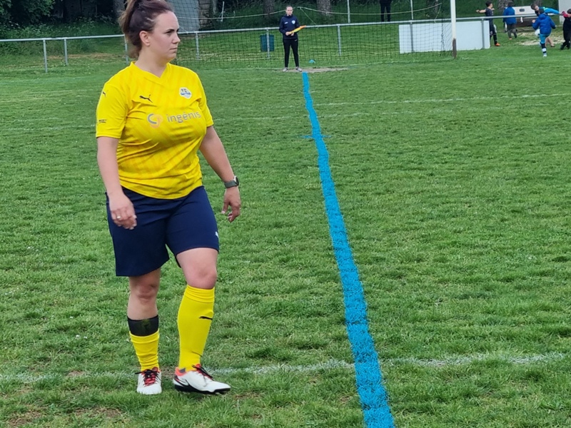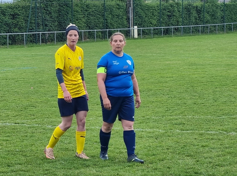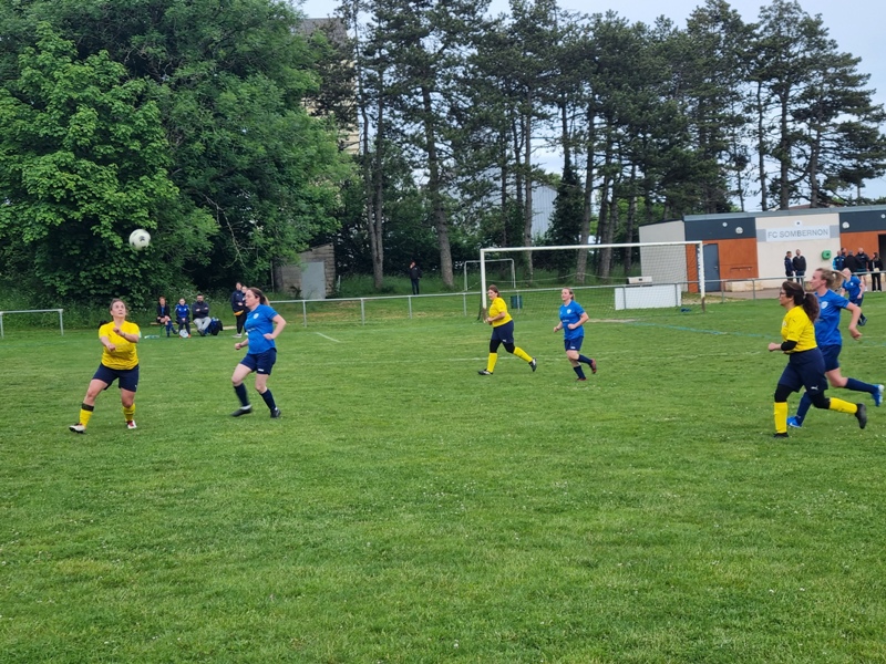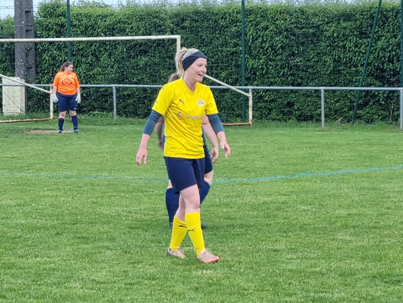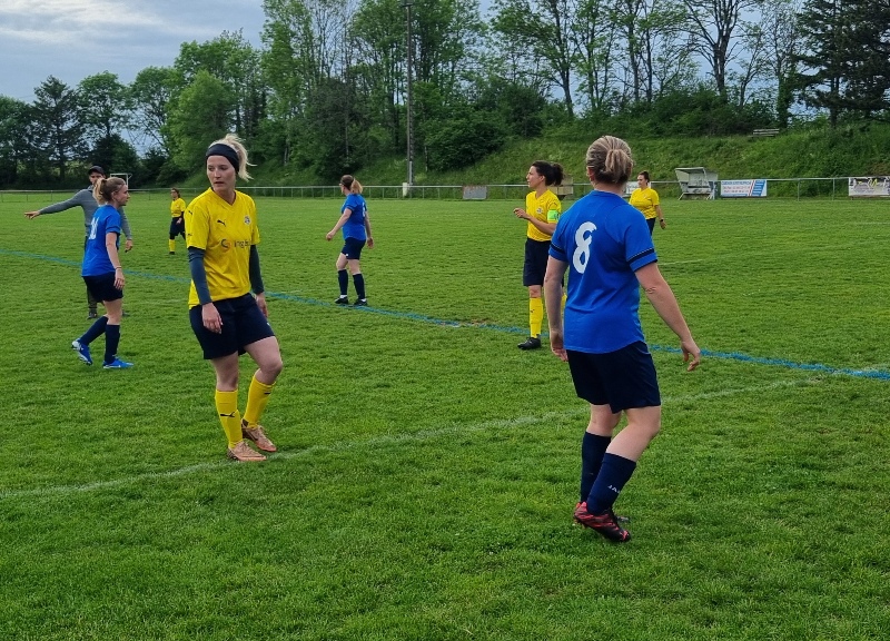 Victoire plus nette que ne l’indique le score pour nos tigresses face à Beaune. Bien organisées autour de Alice qui donne le tempo dans l’entre jeu, les jaunes ouvrent rapidement le score par Aline. Les attaques se succèdent, et Aline s’offre un doublé pour son anniversaire d’une superbe aile de pigeon, 2 à 0. Les visiteuses profitent d’un cafouillage devant le but pour revenir à 2-1. Amandine pèse sur la défense adverse. Juste avant la pause, Alice à l’affut pousse le cuir, relâché par la gardienne adverse, dans le but vide, 3-1. En seconde période, le jeu est plus laborieux. On assiste à une rude bataille au milieu de terrain. Marlène s’offre une balle de but, mais la gardienne beaunoise réussit un bel arrêt. A quelque minutes de la fin une visiteuse reprend victorieusement une frappe repoussée par Julie, 3-2. Mais nos tigresses tiennent sereinement les quelques minutes qui restent pour s’offrir un succès largement mérité !