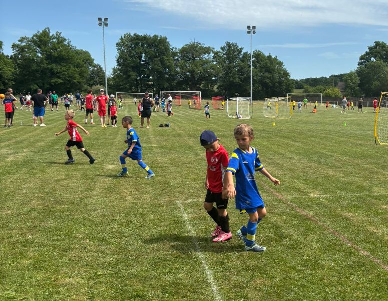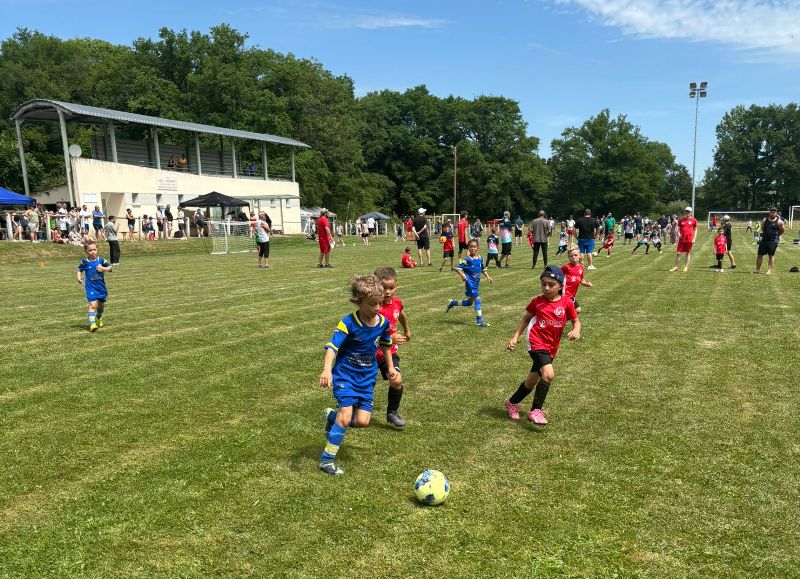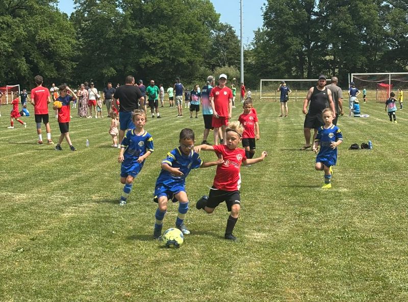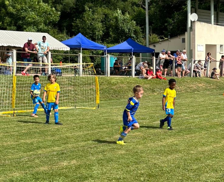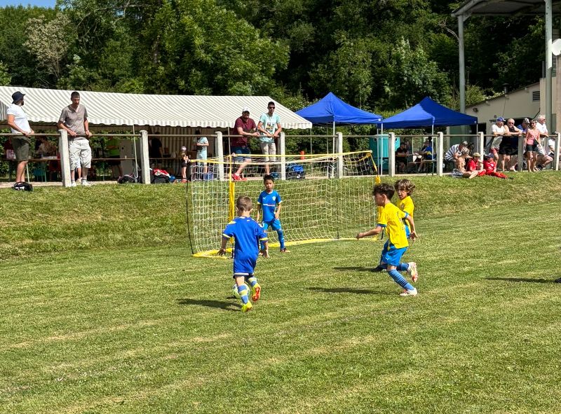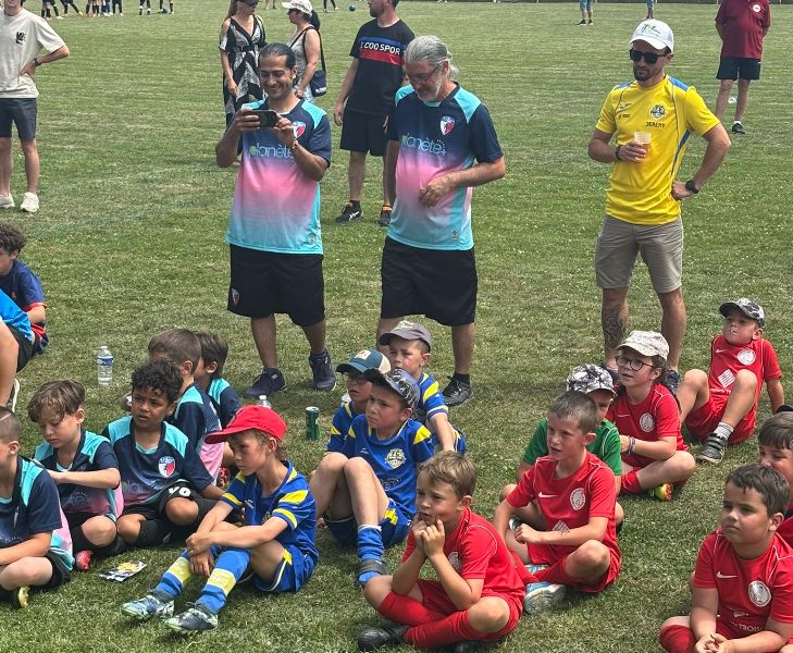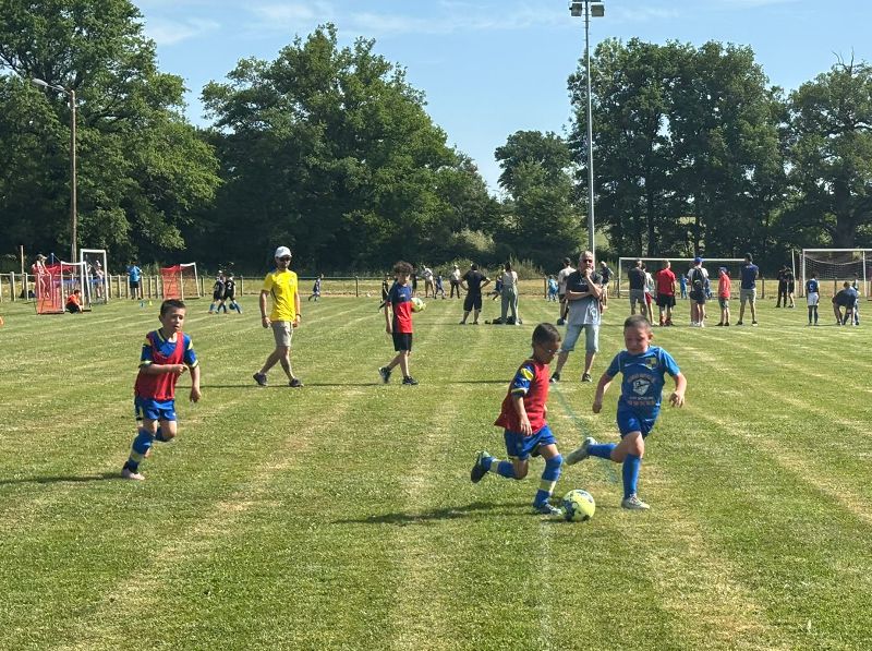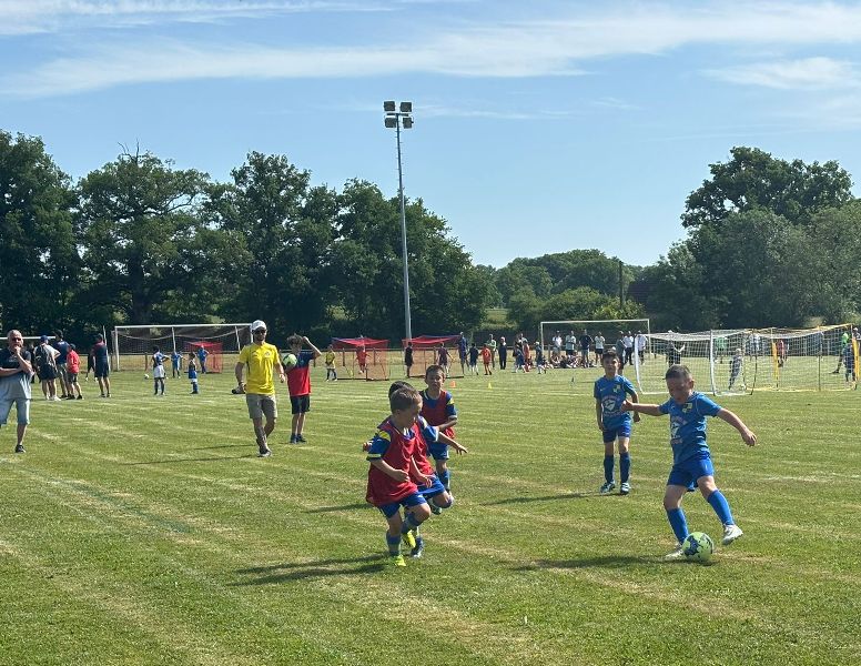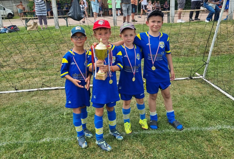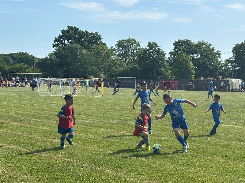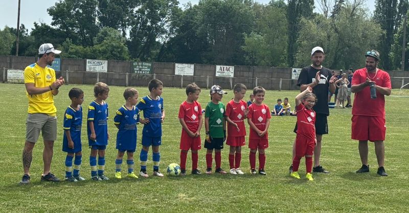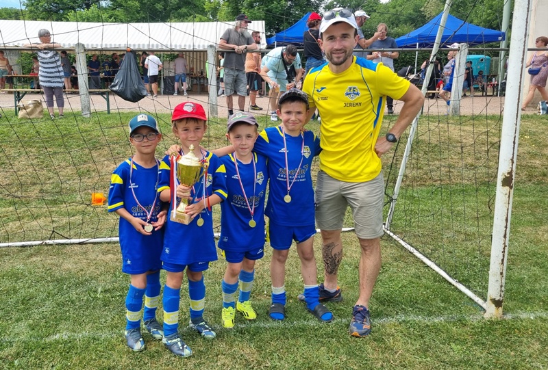 Belle prestation de nos petits bleus dans ce tournoi, malgré une chaleur qui a empêché nos joueurs d’être à 100%. Ils ont quand même trouvé les ressources pour réaliser un très beau parcours. Tout commence dès le premier match contre Morvendelle une équipe que l’on connaît bien. L’essentiel est assuré. Victoire 6-0. Ensuite deuxième match contre Lacanche favori de leur propre tournoi, défaite 1-3. Logique mais rien d’alarmant, l’objectif est simplement d’aller chercher une demi-finale. Pour le troisième match contre CCOF, nos bleus aiment à se faire peur, victoire sur le fil 2-1. Le quatrième match est très important pour la deuxième place contre Chagny, une équipe inconnue et à égalité au classement. Finalement se sera une promenade de santé avec pas moins de 9 buts inscrits 9-0. Direction les demi-finales contre USSE que l’on sait être une bonne équipe. On commence à sentir la chaleur peser sur les joueurs, mais l’envie d’aller chercher une première finale est trop forte, victoire 1-0 sans vraiment être trop inquiété non plus. Direction la finale contre Lacanche. Une entrée de ligue des champions et un stade en ébullition pour accueillir un match des grands soirs. Malheureusement contre une très belle équipe de Lacanche portée par son public, l’émotion était trop forte pour nos bleus, malgré un léger sursaut en début de deuxième mi-temps, il n’y a pas vraiment eu match, défaite très logique 6-1. C’est des fois dans la défaite que l’on apprend le plus. Une équipe qui ne peut qu’être fière d’elle d’avoir réalisé un super parcours avec cette très belle 2ème place. Il y aura d’autres occasions encore de montrer leurs qualités.