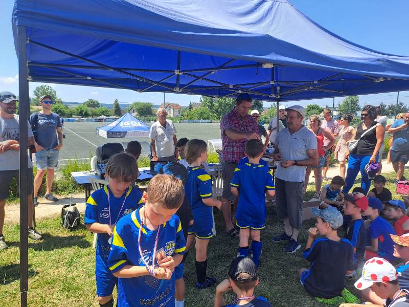 Tournoi caniculaire en ce samedi avec deux équipes présentes. À noter la présence d’un supporter de marque avec Nolhan qui est venu encourager les copains.