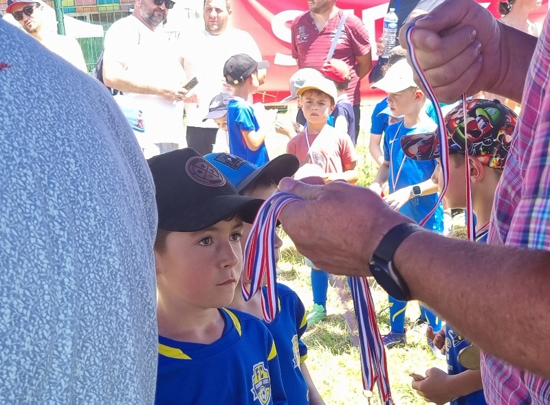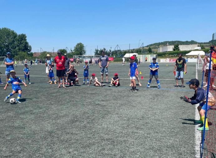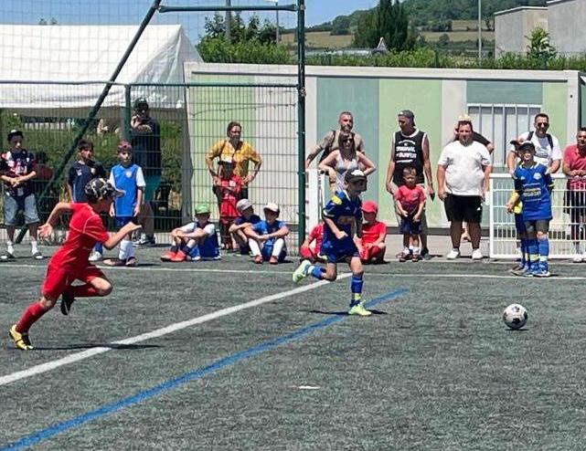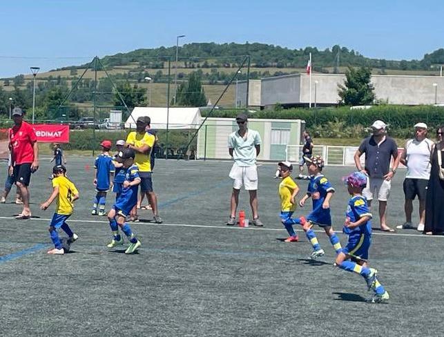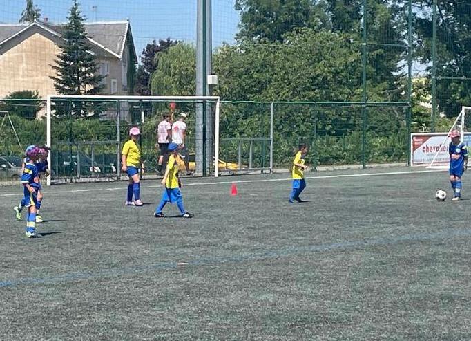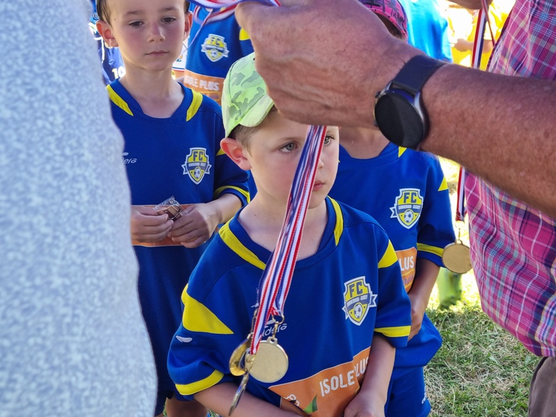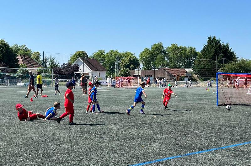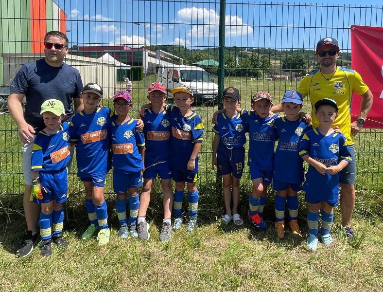 Avec application et envie les petits bleus remportent match après match malgré la chaleur qui monte rapidement et chauffe les crampons sur le synthétique. Seule une équipe nous fait barrage lors des phases de poule mais la deuxième place est acquise ce qui satisfait coach Adrien. Un petit espoir d’une final 100 % FCSG est elle possible ? Les garçons restent motivés et assurent leur passage en 1/2 finale contre UFCO pour un gros derby. Ca joue pas mal du tout mais aucune équipe trouve le chemin des buts …..Ca va se jouer aux tirs au but ! Noah prend la responsabilité des gants , Axel se lance et ça passe. Kalvin trouve son tir arrêté par le gardien très bien placé. Aloïs tout en force à droite. Et deux arrêts de Noah nous envoient en finale !! Bravo 🎉L’histoire se répète. On rejoue le match de poule perdu.. avec l’espoir de revanche. En finale nos vaillants soldats se procurent quelques actions sans conclure. Lacanche pousse et le public pousse et la chaleur monte… Lacanche est réaliste à 3 fois par des frappes fortes. Noah réduit le score mais la victoire est acquise pour Lacanche. Sans regrets car tous ont été chercher leurs dernières forces avec mention spéciale à notre benjamin Bastien qui avec courage a pris place au cage et a pu aider ses coéquipiers sur le terrain pour cette finale !