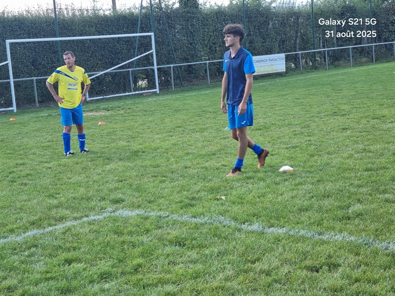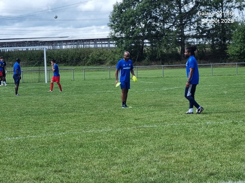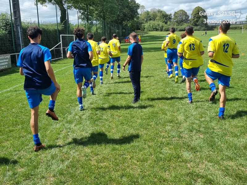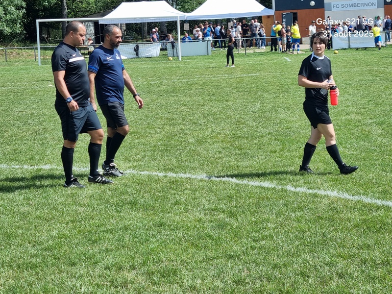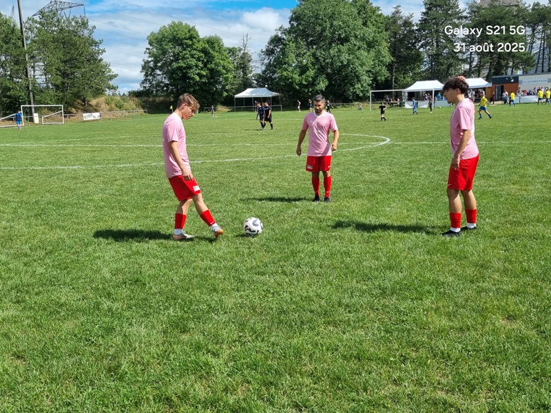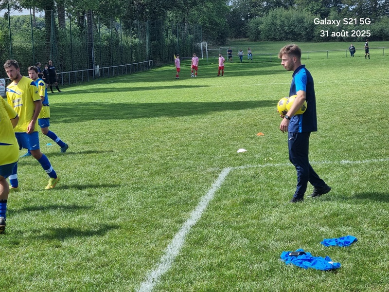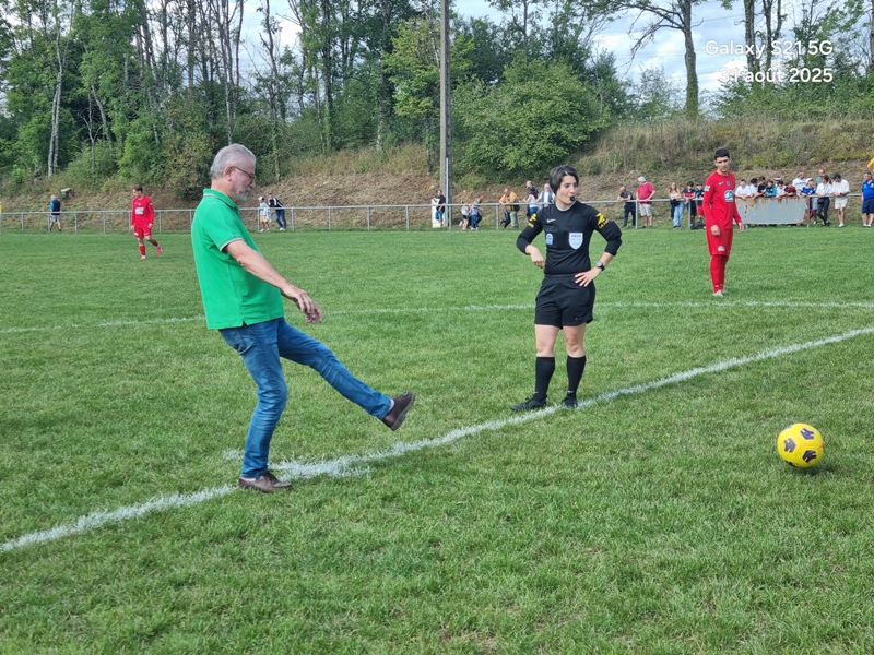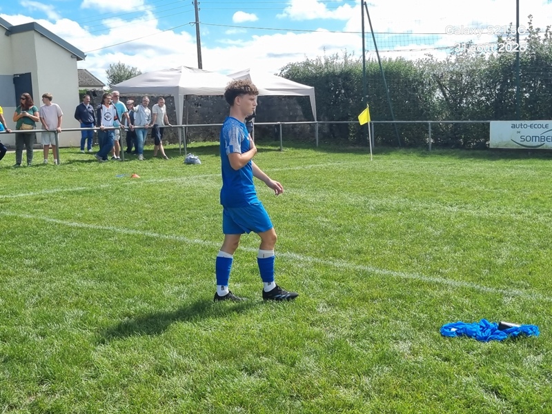Presque 400 personnes étaient accoudées aux mains courantes du stade, parmi lesquels se trouvaient Michel Roignot, maire de Sombernon qui a donné le coup d’envoi d’un joli plat du pied gauche et Alain Lamy, conseiller départemental. Le club a voulu bien faire les choses et réserver aux forgerons un accueil digne de leur standing. Les jeunes du club (U9, U11 et U13) ont accompagné les deux équipes au coup d’envoi et leurs ont fait une haie d’honneur à l’issue de la rencontre. Rencontre qui a été sans surprise. Dès la 10ème, les visiteurs ouvrent la marque sur corner, 0-1. Suite à un renversement de jeu côté gauche et un beau mouvement collectif, les forgerons inscrivent un 2ème but, 0-2. Un raid de Clément côté droit, une percée plein axe de Saïd laissent entrevoir un brin d’espoir. Mais les geugnonnais font le break juste avant la pause, 0-3. On tente de remobiliser les troupes à la pause. Surtout d’avoir une meilleure organisation défensive pour ne pas prendre le bouillon. Et ça tient plutôt bien. Une double parade exceptionnelle de Pierrot permet de sauver les meubles. Gueugnon fort de son expérience mène le match à son rythme et inscrit même un quatrième but en fin de rencontre, 0-4. Un match disputé dans un très bon état d’esprit avec du respect l’un pour l’autre, ce qui a permis au trio arbitral de passer un après midi tranquille. BRAVO à nos petits bleus et au staff Sébastien Garrot assisté de Matéo Faivre pour avoir fait de cette journée une belle fête du football.