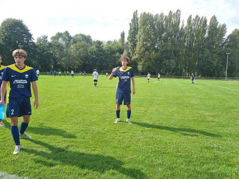 L’Entente ramène un succès important de Venarey à l’issue d’un match engagé. Après une bonne entame de la bande à Andréa, les locaux prennent le match à leur compte. Maxime s’offre une belle occasion mais son lob ne trouve pas le cadre. Les rapides attaquants blancs nous malmènent. On plie, mais on ne rompt pas pour atteindre le 0 à 0 à la pause. Après le repos Louis, en renard des surfaces, récupère un ballon contré dans la surface pour ouvrir le score, 1-0. L’avantage est de courte durée. MVF égalise d’une superbe frappe de vingt mètres pleine lucarne, 1 à 1. Ensuite c’est du box to box. Les rapides attaquants adverses mettent notre défense sous pression mais on fait bonne garde. Si bien que Loris ne récolte que quelques miettes. Le match bascule à l’heure de jeu. Gabin, d’une frappe intelligente sur coup franc à l’entrée de la surface trompe le gardien, 2-1. Ensuite Mattéo résiste à deux défenseurs pour inscrire du gauche le but du break, 3-1. Nos valeureux guerriers entrent ensuite en mode gestion pour tenir le score jusqu’au coup de sifflet final.