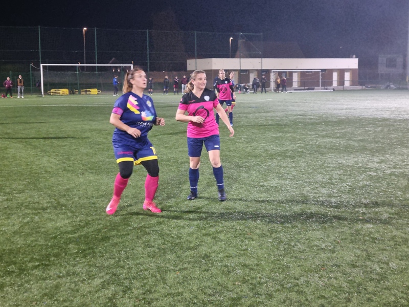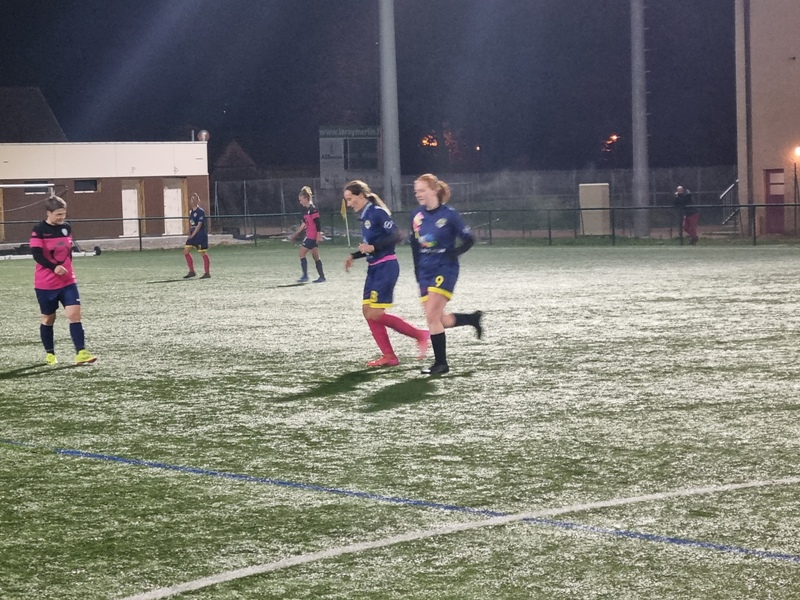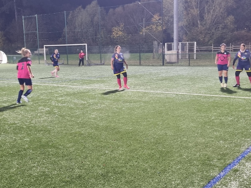 C’est une équipe conquérante qui entame le match et est rapidement récompensée de ses efforts. Après une superbe occasion pour Alice, c’est Juliane qui ouvre le score d’une superbe frappe en lucarne pour son premier match avec la tunique bleue, 1-0. Une tête de Julia est ensuite détournée in extremis par la gardienne adverse. Les beaunoises prennent le jeu à leur compte en fin de mi-temps et égalisent d’une frappe puissante, 1-1 à la pause. On assiste pratiquement à une attaque-défense en seconde période. Le trio Lorane-Alexia-Joana est solide à la récupération et les offensives peuvent y aller plein pot. Les occasions se succèdent pour Alice, Julia, Juliane, Aline et Virginie. Mais sans réussite. Sur un bon service de Alice, Julia trompe de près la gardienne et le FCSG prend enfin l’avantage, 2-1. On croit dur comme fer à un succès mérité, mais les beaunoises égalisent à la dernière seconde sur un coup franc qui vient tromper Julie, 2-2. Vraiment deux points de perdus vu la physionomie du match. Coach Nico et sa bande peuvent être déçus !