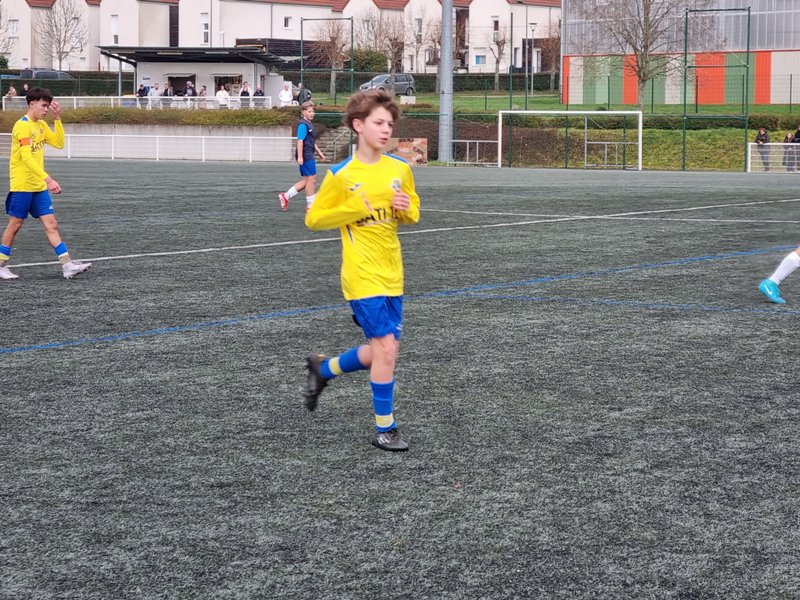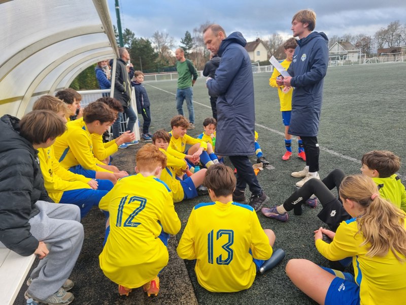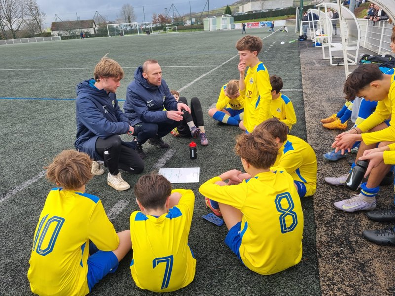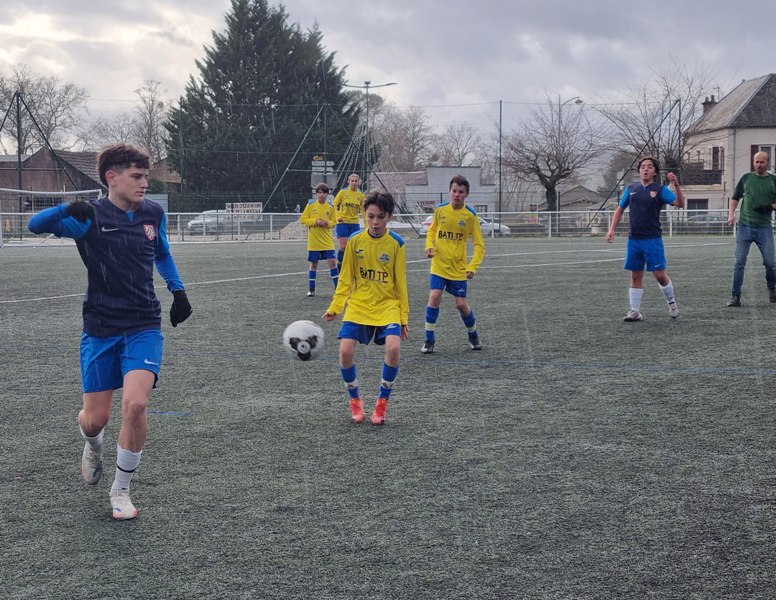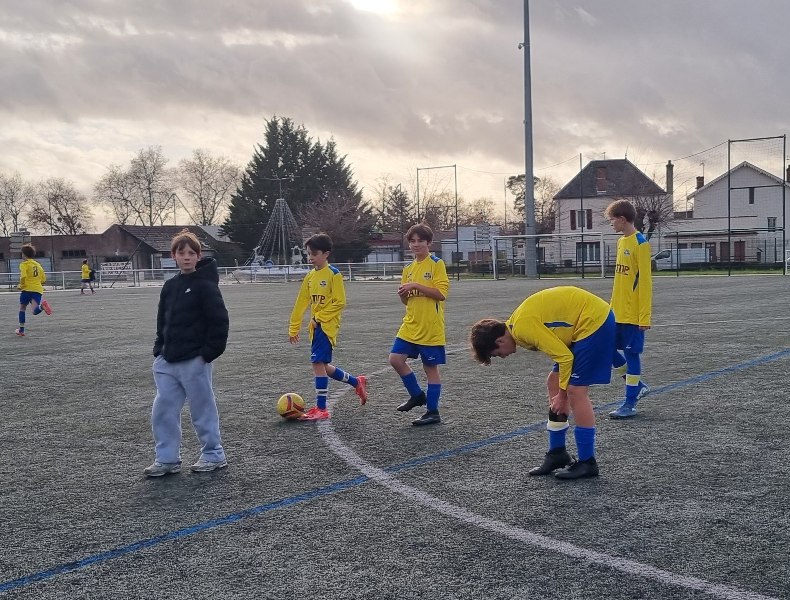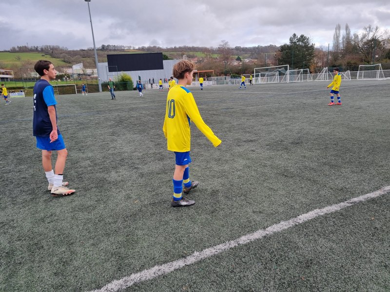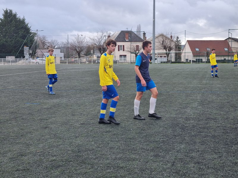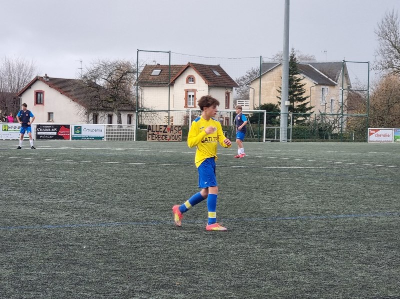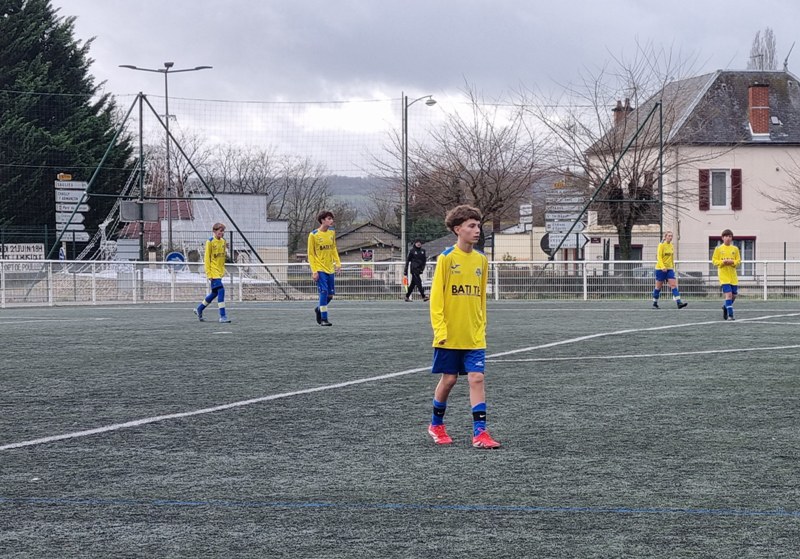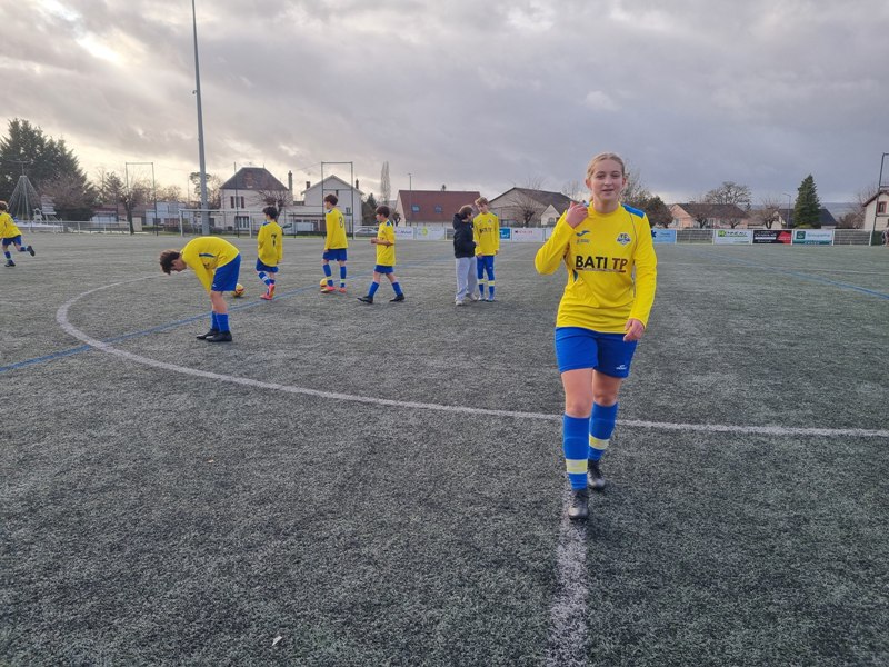 Face à Pouilly, incontestable leader du groupe, nos jeunes pousses ont l’espace d’une mi-temps cru à l’exploit. En ouvrant les score dès la 4ème par Matys sur pénalty, les jaunes se sont donné une bouffée d’espoir. En quadrillant parfaitement le terrain, les jaunes ont très bien défendu leur but. Les polliens ne se sont créé qu’une occasion nette sur laquelle Célestin nous gratifie d’une superbe parade. Héla Pouilly parvient à égaliser dans les ultimes secondes de la première mi-temps. Dès le début de la seconde période, une grosse bourrasque souffle sur nos buts. Pouilly met une pression d’enfer et marque deux buts coup sur coup, 1-3. C’est Fort Alamo pendant une vingtaine de minutes. Il faut un Célestin des grands jours pour maintenir l’équipe à flot. Les locaux assoient leur succès avec un quatrième but. Le sort de la rencontre est scellé. Les jaunes finissent beaucoup mieux, mais sans pour autant être dangereux. Pouilly est en D1 mais l’équipe peut s’enorgueillir de l’avoir fait douter pendant une mi-temps. C’est le métier qui rentre. Bravo à eux néanmoins pour cette première partie de saison très encourageante.