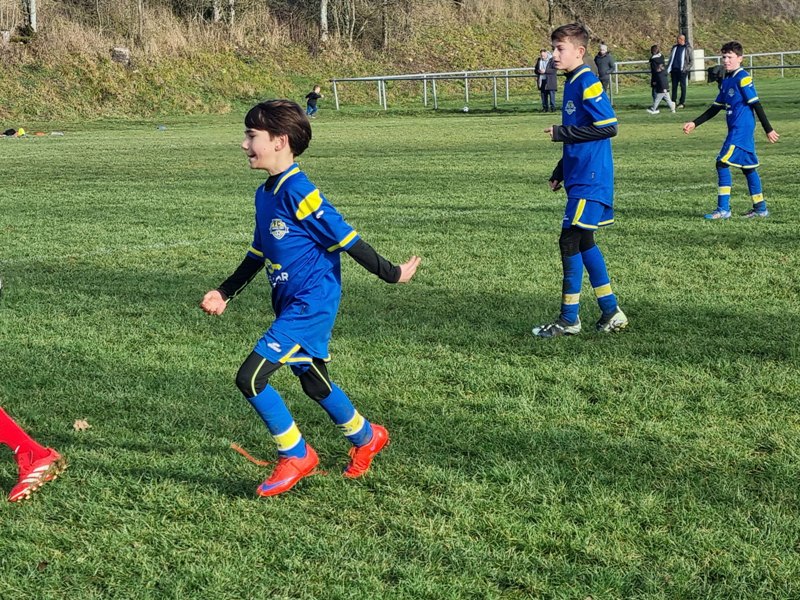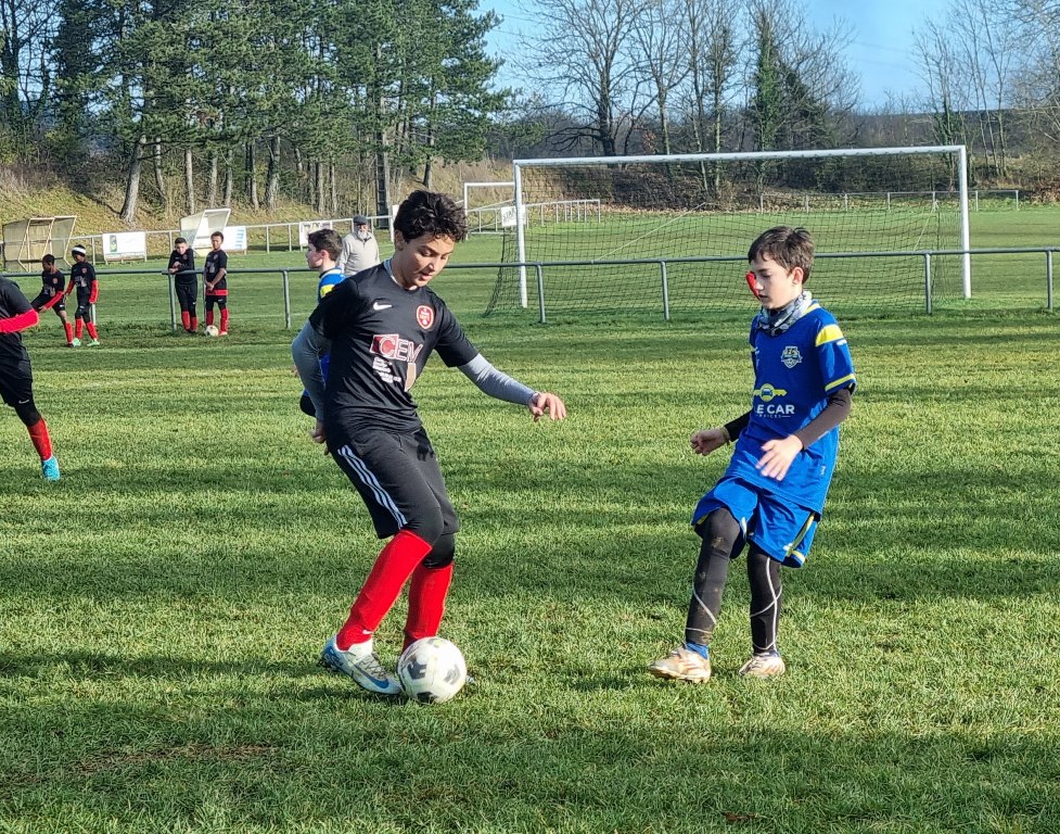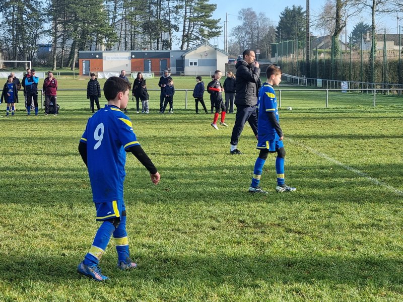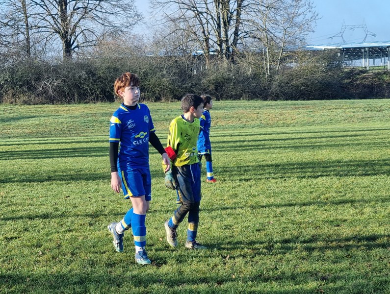 Nos petits bleus ont du puiser au plus profond d’eux même pour arracher ce match nul, bien mérité à l’arrivée. Ils tardent tellement à rentrer dans leur match que Dijon ULFE mène rapidement 2-0. On pense alors que le but de Gabriel va leur redonner du peps, mais non. Les visiteurs en profitent pour marquer deux nouveaux buts et mener 4 à 1 à la pause. Et heureusement Firmin a multiplié les arrêts ! Les coachs reboostent les troupes et on assiste à une toute autre seconde période. De l’impact dans les duels, de la combativité, de la solidarité et un doublé d’Erwan redonne de l’espoir à toute la troupe, 3-4. On pousse, on pousse mais Dijon ULFE profite d’une mauvaise relance pour se redonner de l’air, 3-5. La frustration est trop grande pour baisser les bras. Axel profite d’une mésentente dans la défense adverse pour ramener le score à 4-5. Les « ultras » poussent l’équipe. Forts de ce soutien, nos petits bleus poussent l’adversaire à la faute. Dans les ultimes minutes Gabriel trouve la faille sur coup franc et égalise, 5-5. C’est de la folie dans les tribunes, la joie explose de partout. Un pur bonheur pour cette petite bande qui le mérite amplement ! BRAVO !