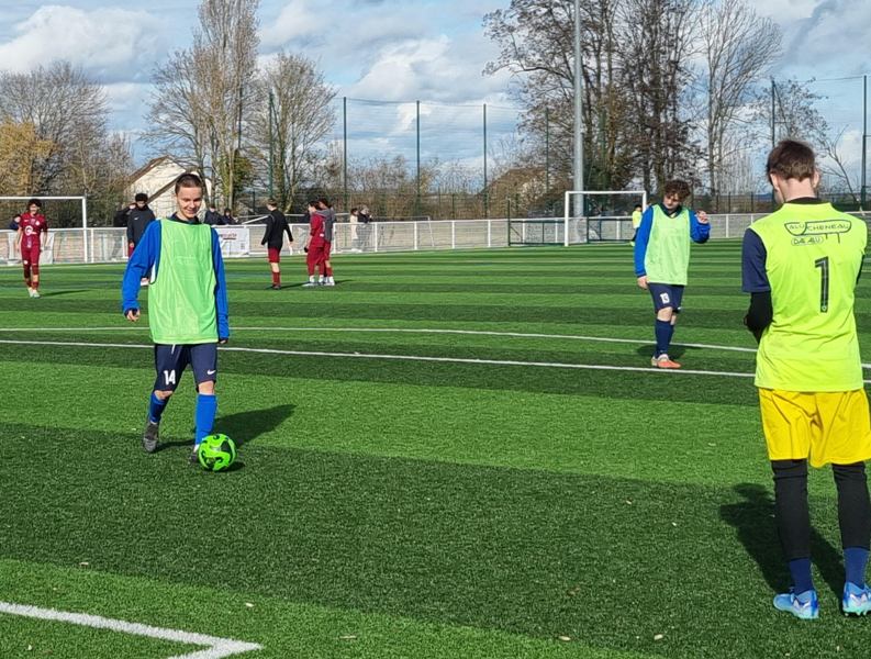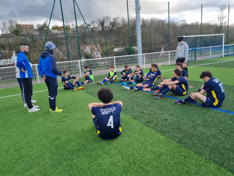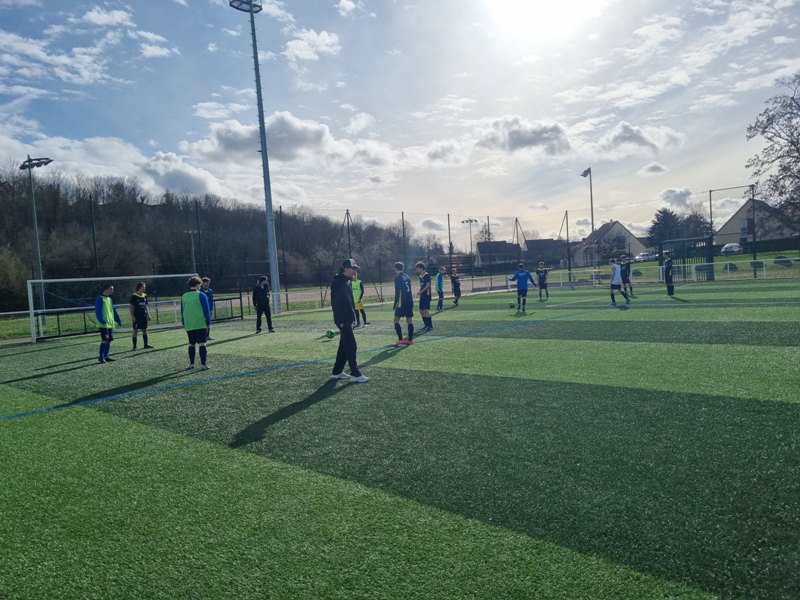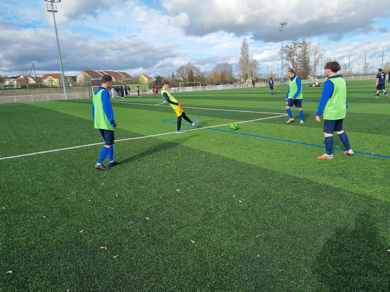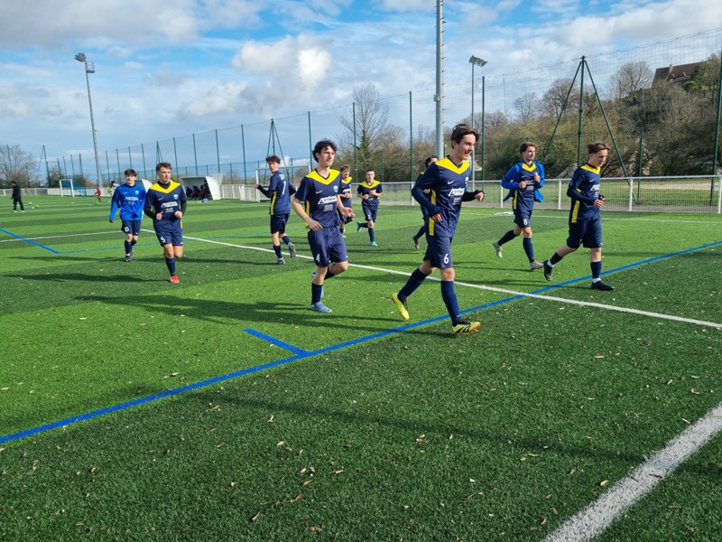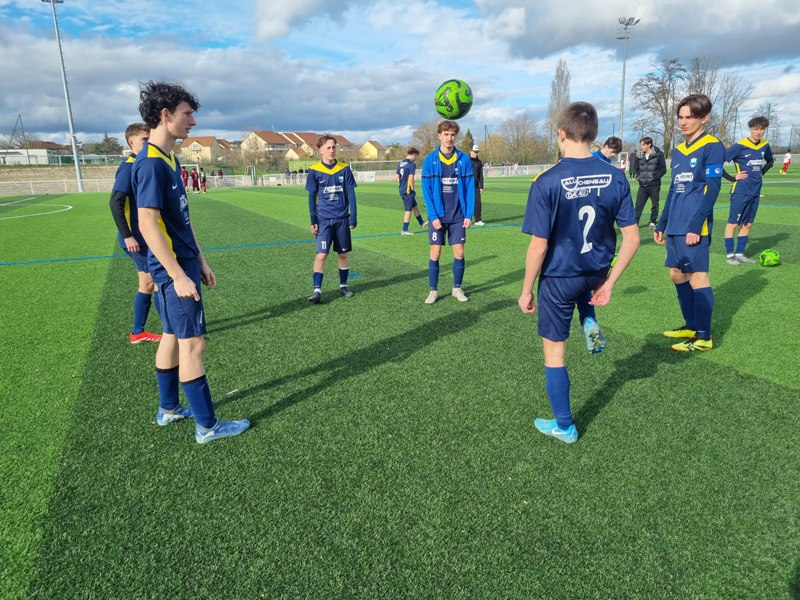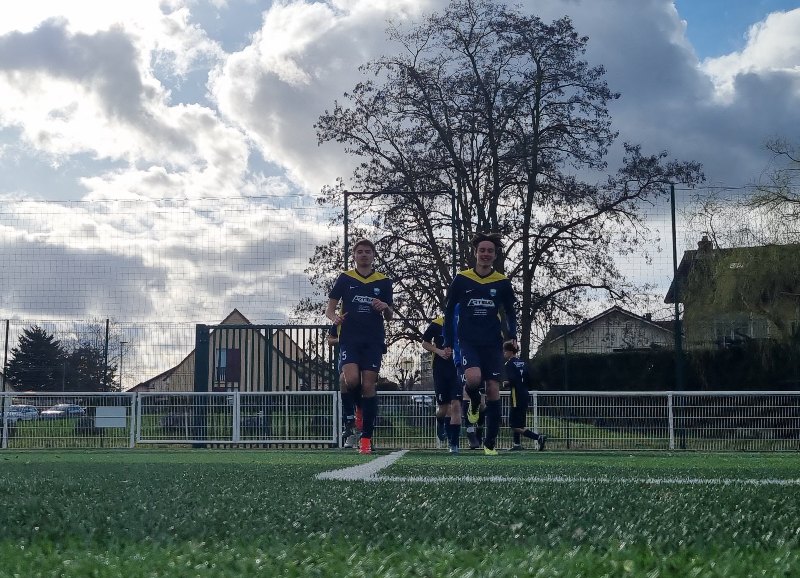 Les locaux mettent une forte pression d’entrée, et l’Entente subit la domination d’une très belle équipe. Talant ouvre rapidement le score sur un centre puissant que Jolan dévie malencontreusement dans son propre but, 0-1. Les bleus tentent quelques incursions. Sur l’une d’elles Kilian s’échappe côté droit et il faut une belle parade du gardien pour détourner sa frappe sur la transversale. Talant reprend sa marche en avant, et on souffre. Un excès de confiance leur coûte de doubler la mise, dont une frappe sur la transversale. Les bleus tiennent tant bien que mal ce score jusqu’à la pause. Talant pense faire tranquillement la différence en seconde période et joue facile. La bande à Andréa en profite pour semer le trouble dans la défense adverse. Un débordement côté droit, Kilian offre un caviar à Mattéo qui marque de la tête, 1-1. Dans la foulée Kilian s’offre une nouvelle balle de but mais sa frappe ne trouve pas le cadre. Sur une balle de récupération le grand Max part de son camp, trouve le relais idéal et claque une puissante frappe du gauche qui transperce les filets, 2-1 à la 55ème. L’avantage sera malheureusement de courte durée, Talant égalise. On défend bien, tout le monde se met en mode combat pour tenir. Loris n’est pas en reste. Le chronomètre ne tourne pas assez vite… Dans les dix dernières minutes le leader, sous l’impulsion de son brillant capitaine, trouvera deux fois l’ouverture. Une défaite qui laisse une nouvelle fois des regrets mais qui doit aussi faire prendre conscience à l’équipe de ses possibilités. 4 des 6 buts encaissés par Talant depuis le début du championnat ont été marqués par l’Entente !