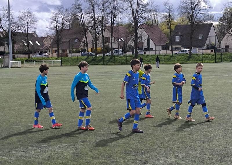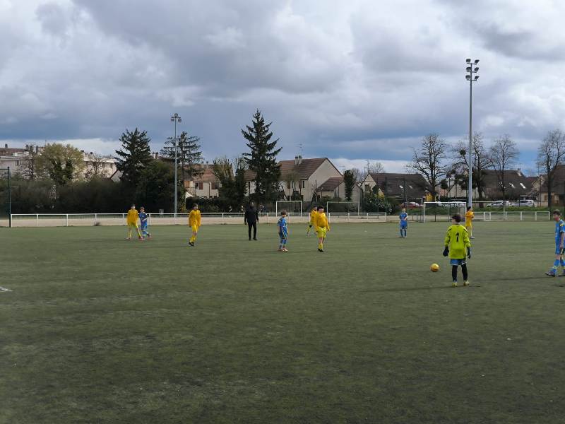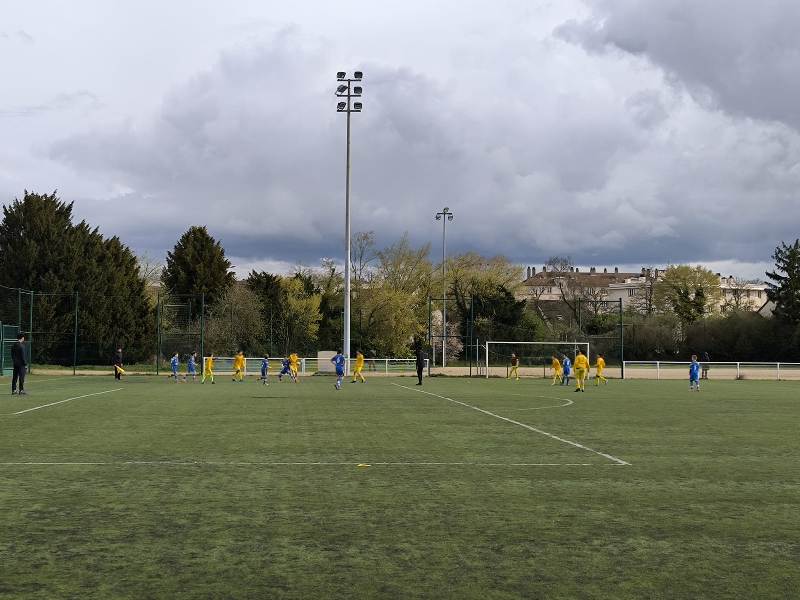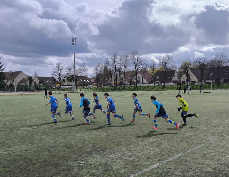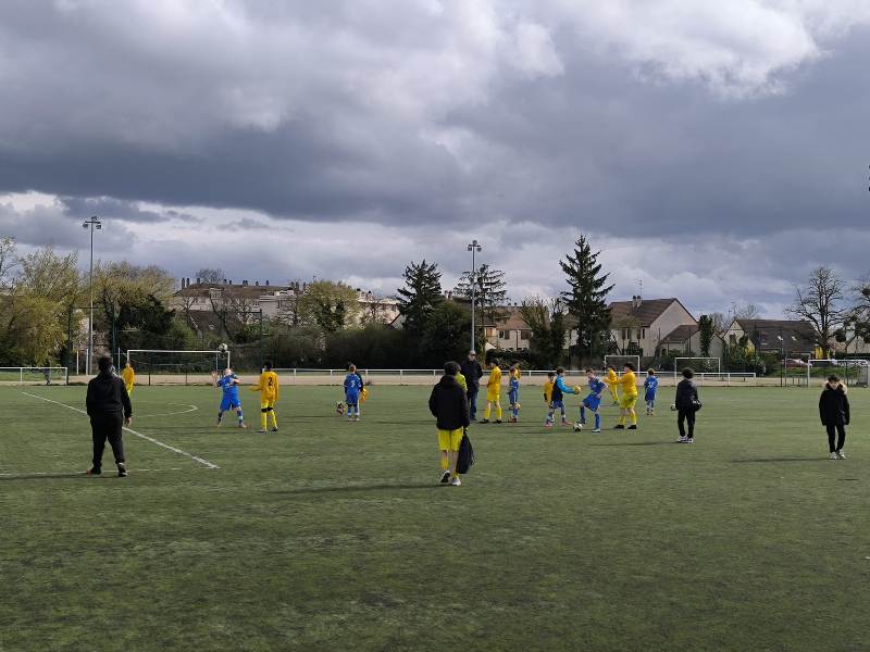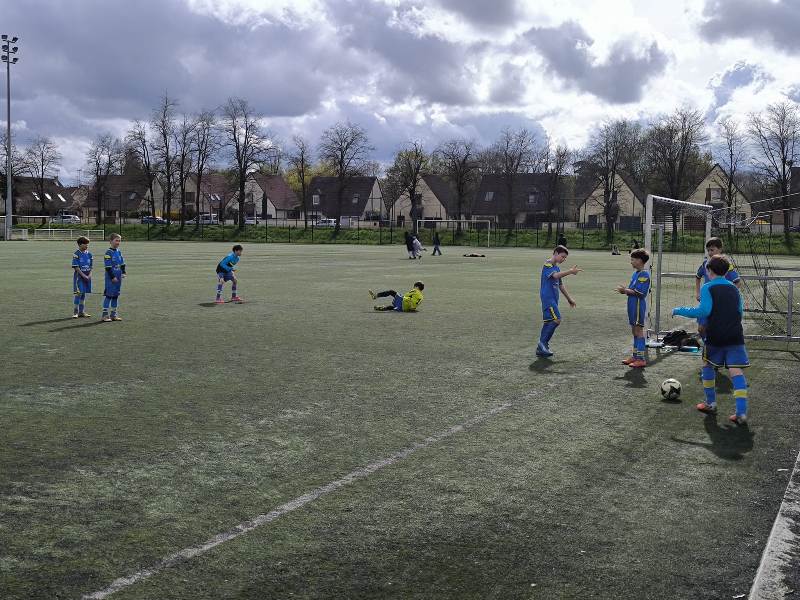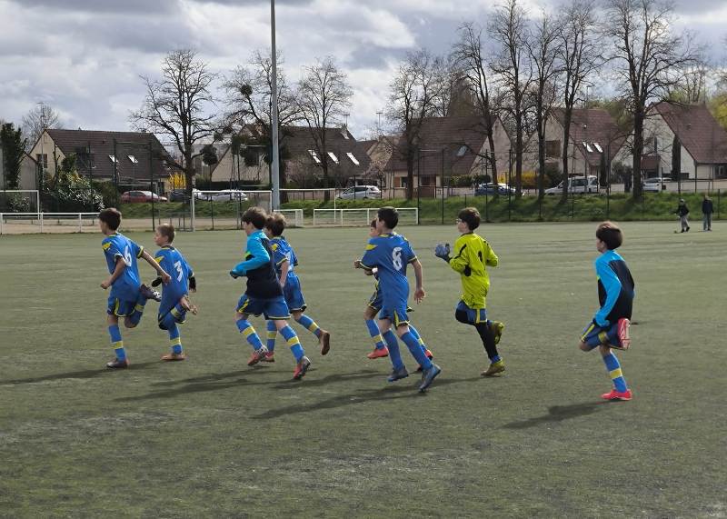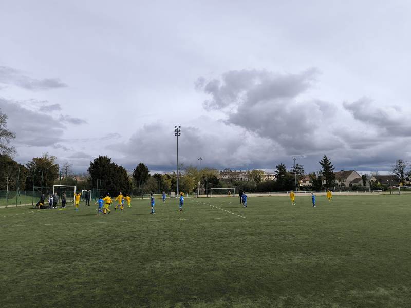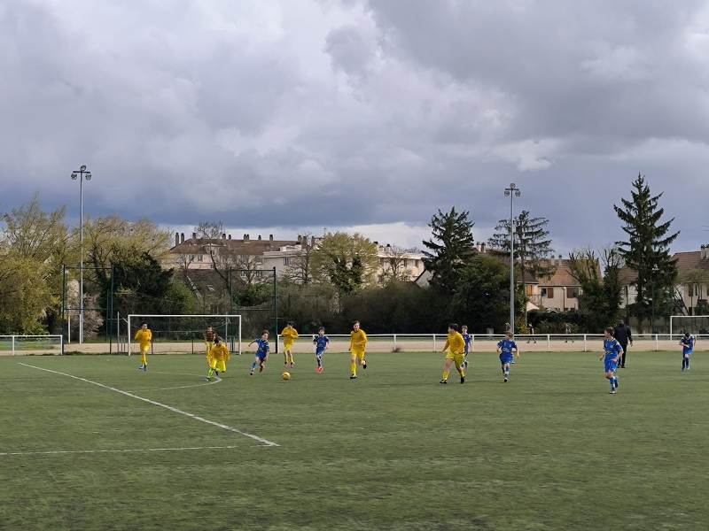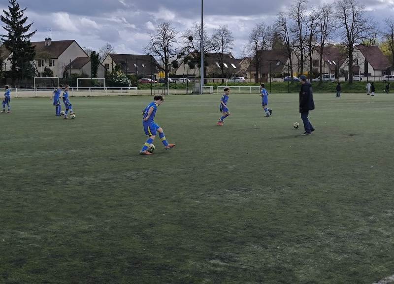 Face aux grands gabarits de JDF, nos jeunes ont eu fort à faire. Un premier but arrive rapidement sur un cafouillage de la défense et du gardien. Mais les bleus gardent la tête haute et arrivent, par moment, à mettre des coups de pression qui font paniquer la défense adverse. Second quart, on prend un second but, rien à dire. Et encore une fois, quand les bleus forcent, ils arrivent a faire douter l’adversaire. Mais sans jamais marquer. On touchera même une fois la transversale. 3ème quart-temps, les bleus ont le pied sur le ballon. On y croit, ils vont retourner le match. Ce quart se passe essentiellement dans la partie adverse, les jaunes souffrent mais nos bleus ne trouvent pas le chemin des buts. Et puis dernier quart-temps, et là, c’est l’incompréhension totale. 4 buts encaissés très rapidement. Le groupe se désolidarise, et le match est plié. Vraiment dommage.