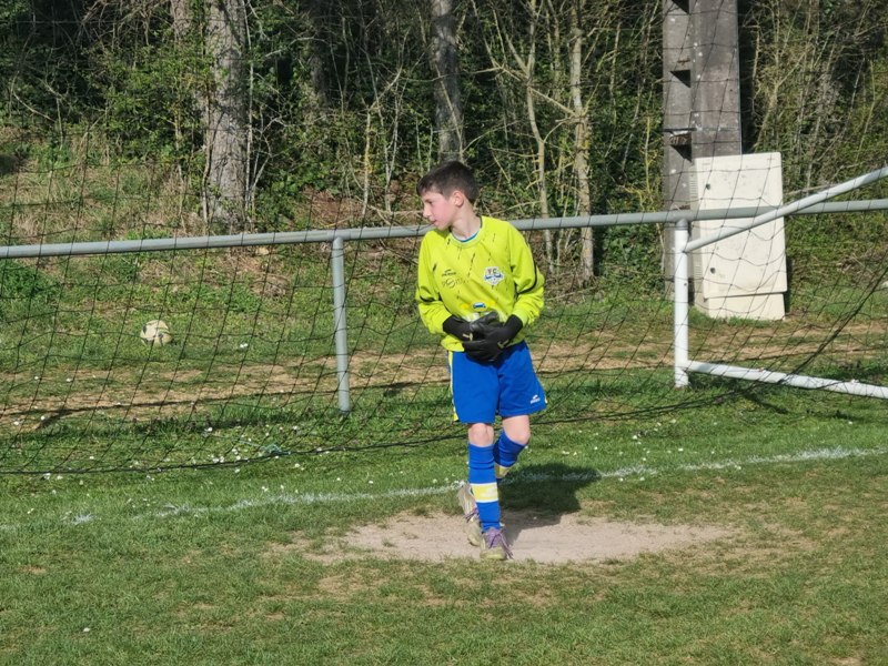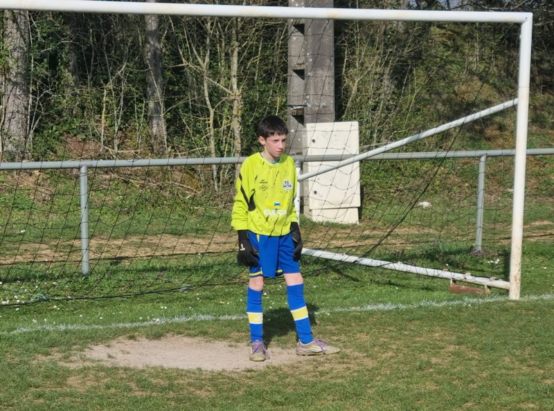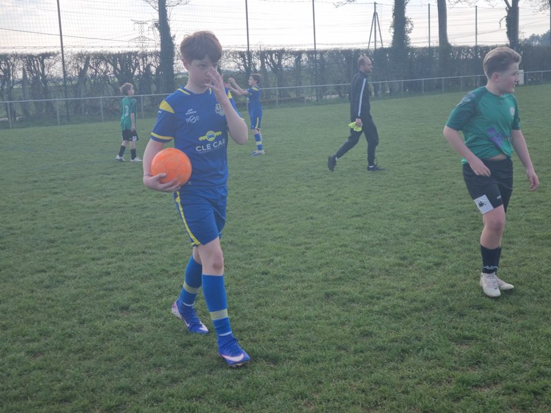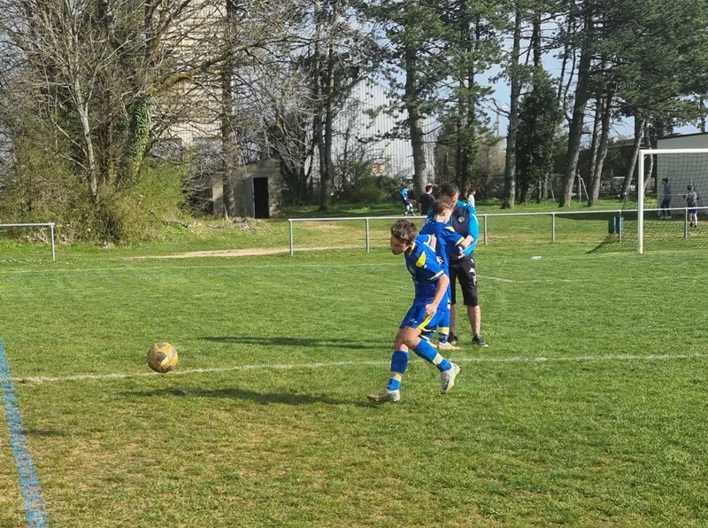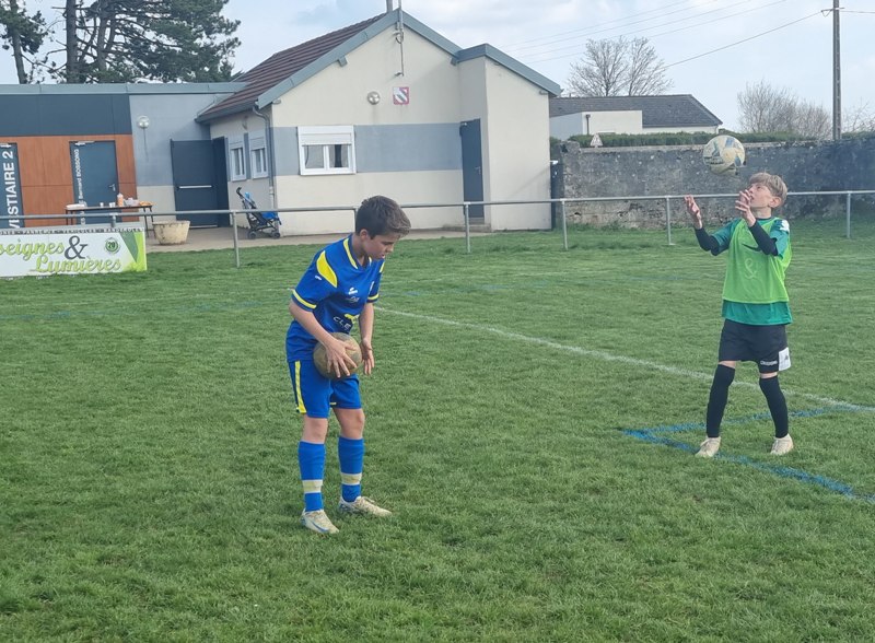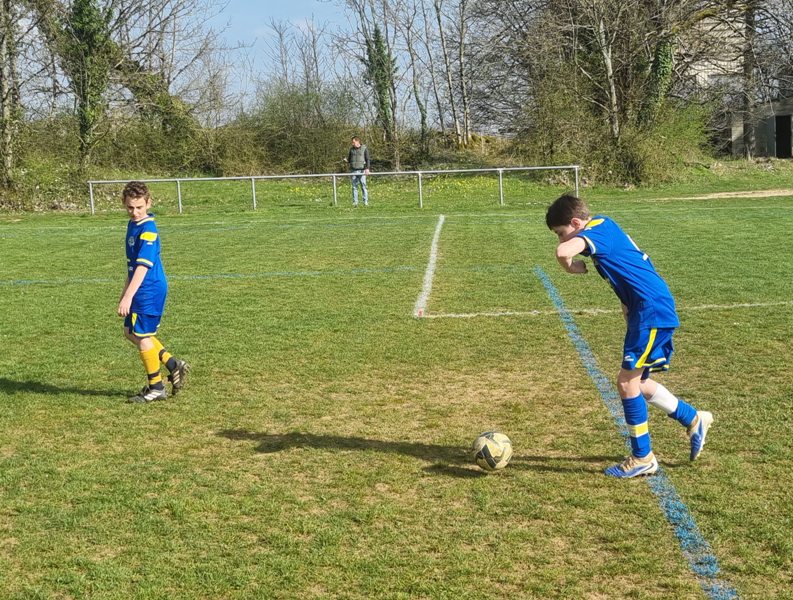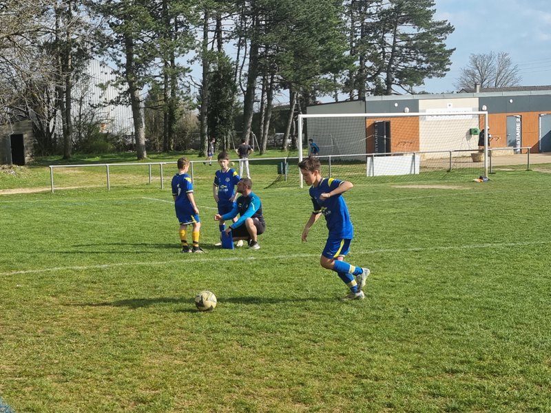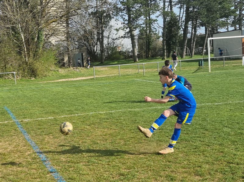 Grosse déception pour nos U13 qui s’inclinent face à Daix. Mis en confiance par leurs deux précédentes victoires, ils n’ont pas réussi la passe de trois. Un manque évident d’agressivité en est la principale cause. Trop souvent battus dans les duels, ils étaient bien trop attentistes pour espérer un bon résultat. Firmin a retardé l’échéance tant qu’il a pu. Le sort du match aurait pu basculer de notre côté, mais il a choisi l’autre camp. Nos bleus se procurent une occasion qu’on qualifie parfois d’ « immanquable » … qu’ils manquent… et sur le contre Daix ouvre le score… On ne peut plus cruel ! Les visiteurs vont même se donner deux buts d’avance, 0-2. En toute fin de rencontre, Erwan en vrai chasseur de but ramène le score à 1-2. On pousse, on pousse….en vain !