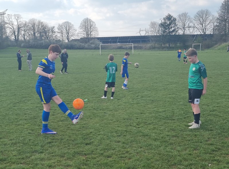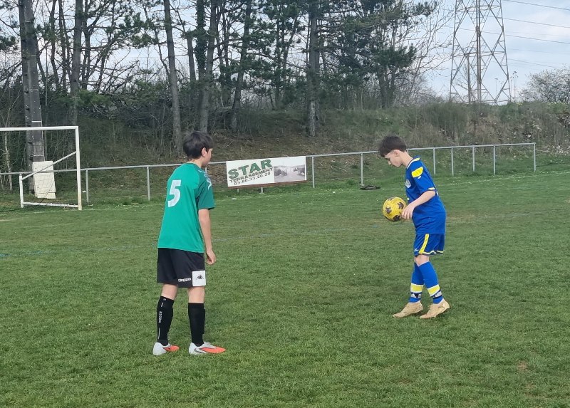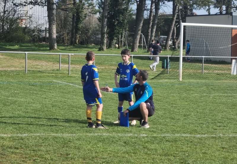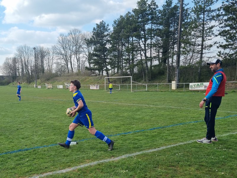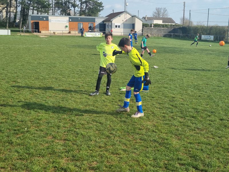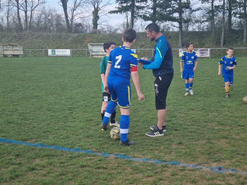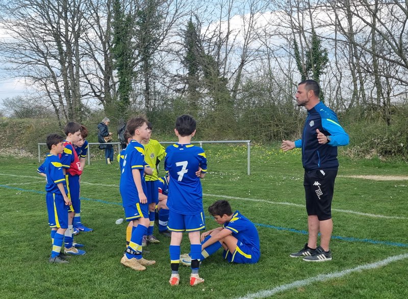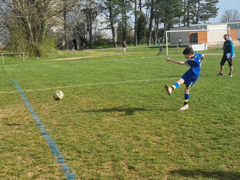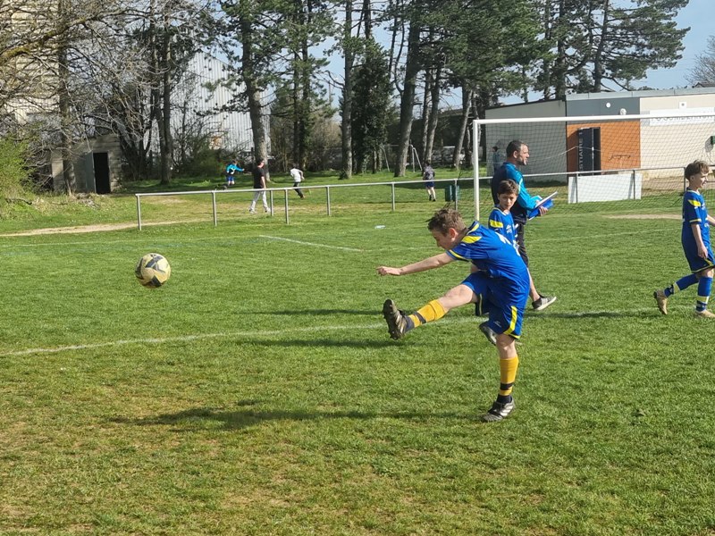 Grosse déception pour nos U13 qui s’inclinent face à Daix. Mis en confiance par leurs deux précédentes victoires, ils n’ont pas réussi la passe de trois. Un manque évident d’agressivité en est la principale cause. Trop souvent battus dans les duels, ils étaient bien trop attentistes pour espérer un bon résultat. Firmin a retardé l’échéance tant qu’il a pu. Le sort du match aurait pu basculer de notre côté, mais il a choisi l’autre camp. Nos bleus se procurent une occasion qu’on qualifie parfois d’ « immanquable » … qu’ils manquent… et sur le contre Daix ouvre le score… On ne peut plus cruel ! Les visiteurs vont même se donner deux buts d’avance, 0-2. En toute fin de rencontre, Erwan en vrai chasseur de but ramène le score à 1-2. On pousse, on pousse….en vain !