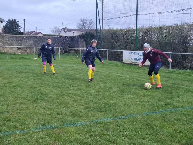 Un match ne se résume pas toujours au score. La preuve aujourd’hui. Une première période solide avec de bonnes intentions de jeu. Deux très belles occasions pour Amélie et Aline mais elles vont buter sur le gardien. Beaune se montre aussi dangereux, mais Julie s’interpose. Ca bataille dur au milieu de terrain, les défenses prennent le pas sur les attaques et on arrive à un 0 à 0 des plus logiques à la pause. Après le repos le jeu est toujours équilibré, puis le match va basculer en cinq minutes. Deux pertes de balle stupides et les visiteuses ne laissent pas passer leur chance, 0-2. Le ressort est cassé. Les jaunes pressent, mettent la pression. Alexia se démène sur on côté, mais les Beaunoises défendent bec et ongle leur avantage avec une grosse présence en défense. Elles vont même se permettre d’enfoncer le clou avec un troisième but. Vraiment dommage car un partage des points aurait pu sceller le sort de cette rencontre.