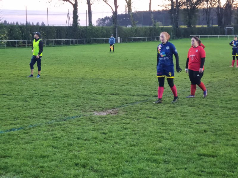 Brazey débute mieux la rencontre en préparant bien ses attaques et ouvre rapidement le score, 0-1. Sur une balle en profondeur, Juliane seule face à la gardienne égalise, 1-1. Mais les visiteuses font apprécier leur technique collective et individuelle et prennent largement les devants avec trois nouveaux buts, 1-4. Les filles ont le mérite de ne pas baisser les bras. Une but splendide d’Amélie sur une frappe puissante de vingt mètres fredonne de l’espoir juste avant la pause , 2-4. Les filles reviennent avec de belles intentions. Le FCSG trouve même la faille sur un coup franc excentré de Juliane, 3-4. Mais Brazey ne s’en laisse pas compter pour autant et marque à nouveau, 3-5. Le match se débride totalement. Un pénalty de Juliane et tout le peuple bleu reprend espoir, 4-5. Malheureusement Brazey assure son succès sur un contre à cinq minutes de la fin. Dommage ! Julie a bien gérer le jeu long adverse, Lorane a tenu la baraque en défense bien secondée par Alexia, Joana et Gwenaëlle, Alice et Xavière n’ont pas ménagé leurs efforts pour essayer de mettre Amélie, Juliane et Anne-Lise dans les meilleures conditions. Tout le monde a bien fait le job.