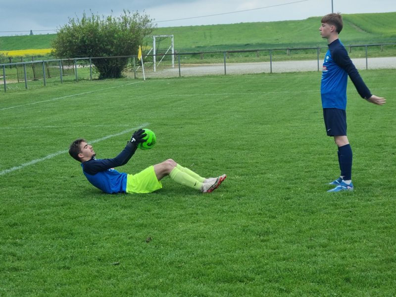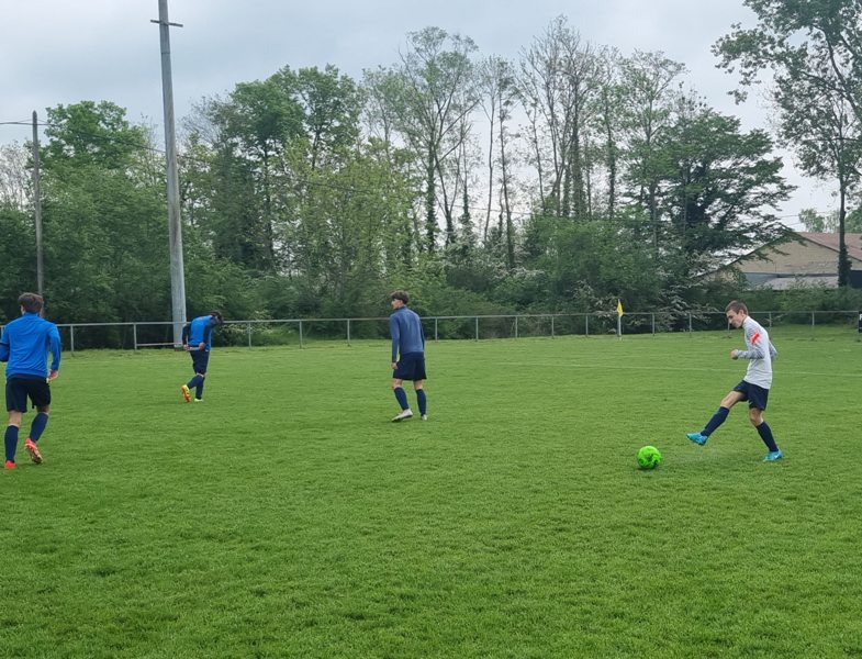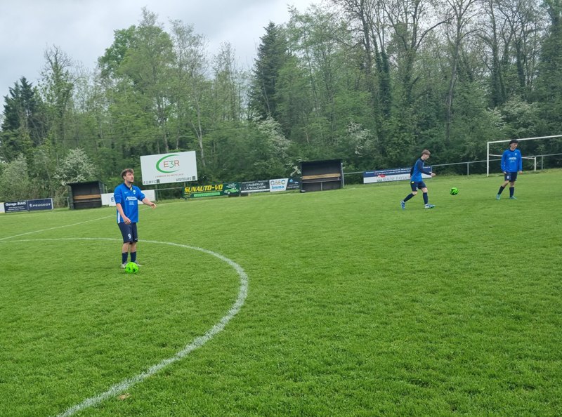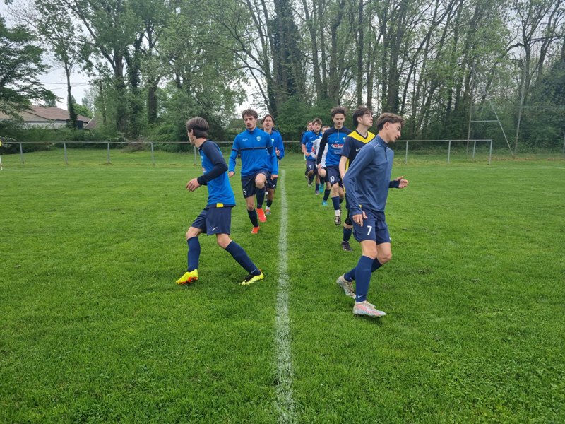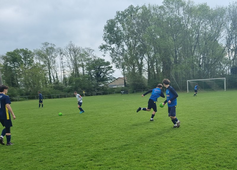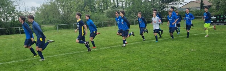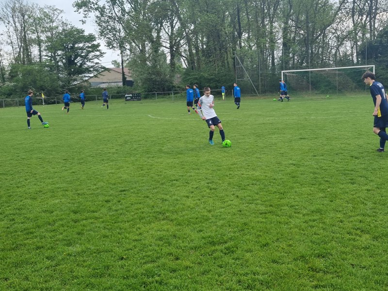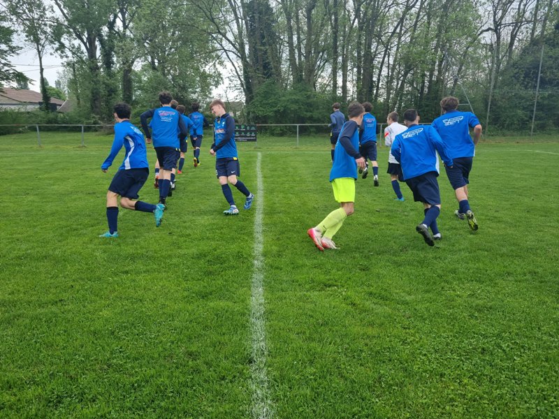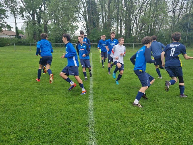 Après le match nul décevant concédé contre ces mêmes adversaires il y a quinze jours, on attendait une réaction des troupes ce dimanche. Les bleus sont dominants mais sans vraiment inquiéter le gardien. Ce sont même les locaux qui vont ouvrir le score. Un coup franc anodin est dévié involontairement de la tête par Tom dans son propre but, 0-1. Arthur se démène sur son côté, on cherche à combiner mais il y a beaucoup trop de déchêts techniques pour être dangereux, exception faite d’une bonne frappe de Matéo. Score à la pause. Rien d’inquiétant si on se resaisit. Mais non… On est toujours aussi approximatif. Et Ruffey en profite pour doubler la mise face à une défense bien passive, 0-2. On arrive enfin à mettre le gardien à contribution. L’espoir renâit grâce à une tête victorieuse de Loris sur corner, 1-2. Quand Kilian égalise d’une belle frappe à l’entrée de la surface, on se dit « enfin, la machine est en route ». Et bien non ! Sur l’engagement, Ruffey profite du laxisme défensif pour inscrire le but victorieux, 2-3. Frustrant quand on sait de quoi ils sont capables !